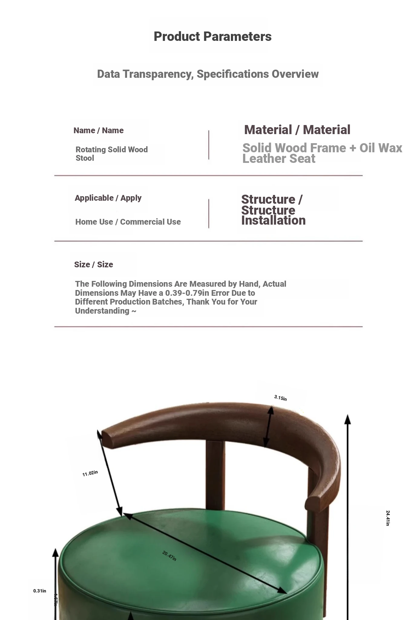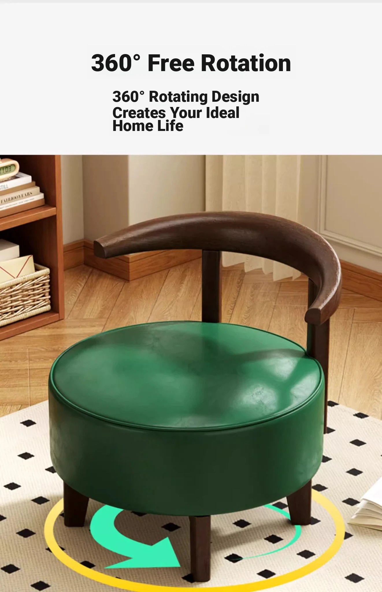 360 ° Rotate-Solid Wood Concentric Chair-Emerald Green