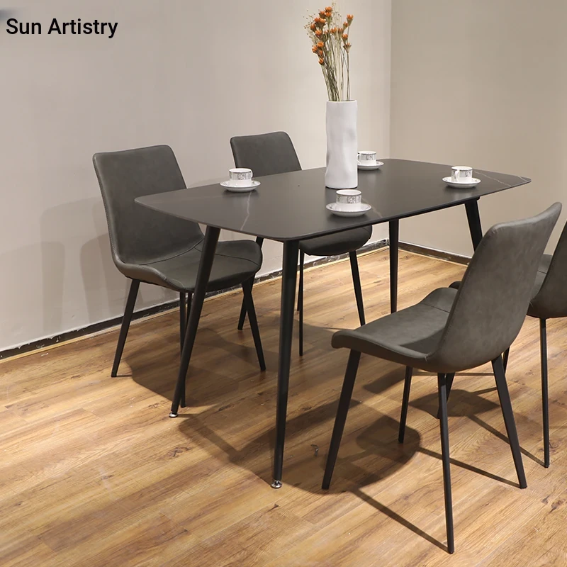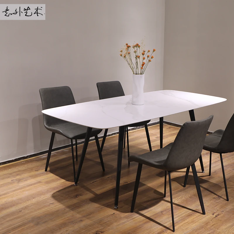 Sleek Italian Minimalist Rectangular Dining Table Set with Elegant Marble Finish - Perfect for Stylish Dining Experiences