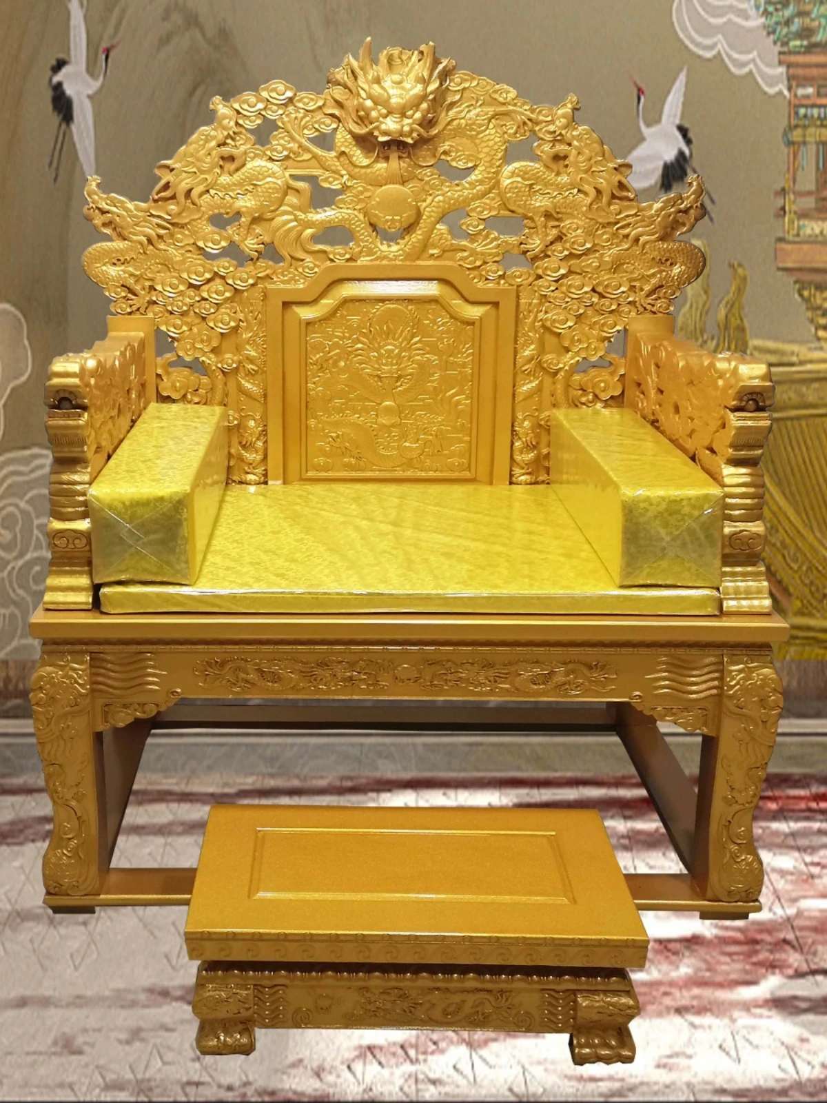 Solid Wood Dragon Chair - Majestic Nine-Dragon Emperor Throne, Classic Scholar Chair, Regal Palace Seat, Zen Meditation Chair for Filming & Photography in Historical Architecture.