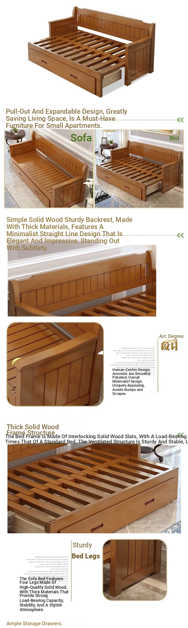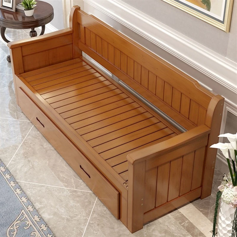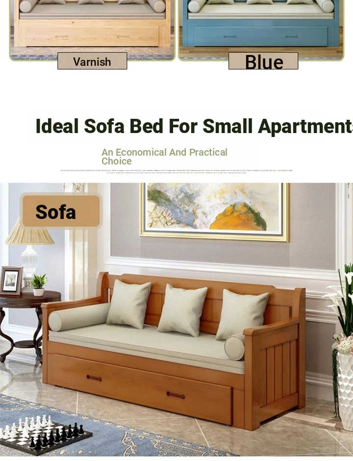 Versatile Folding Wooden Sofa Bed - Perfect for Living Rooms! Accommodates Couples with a 1.5m to 1.8m Expandable Design, Ideal for Small Y-shaped Spaces. Stylish and Functional!