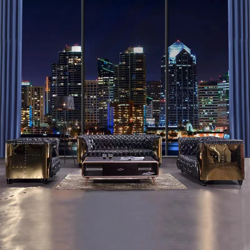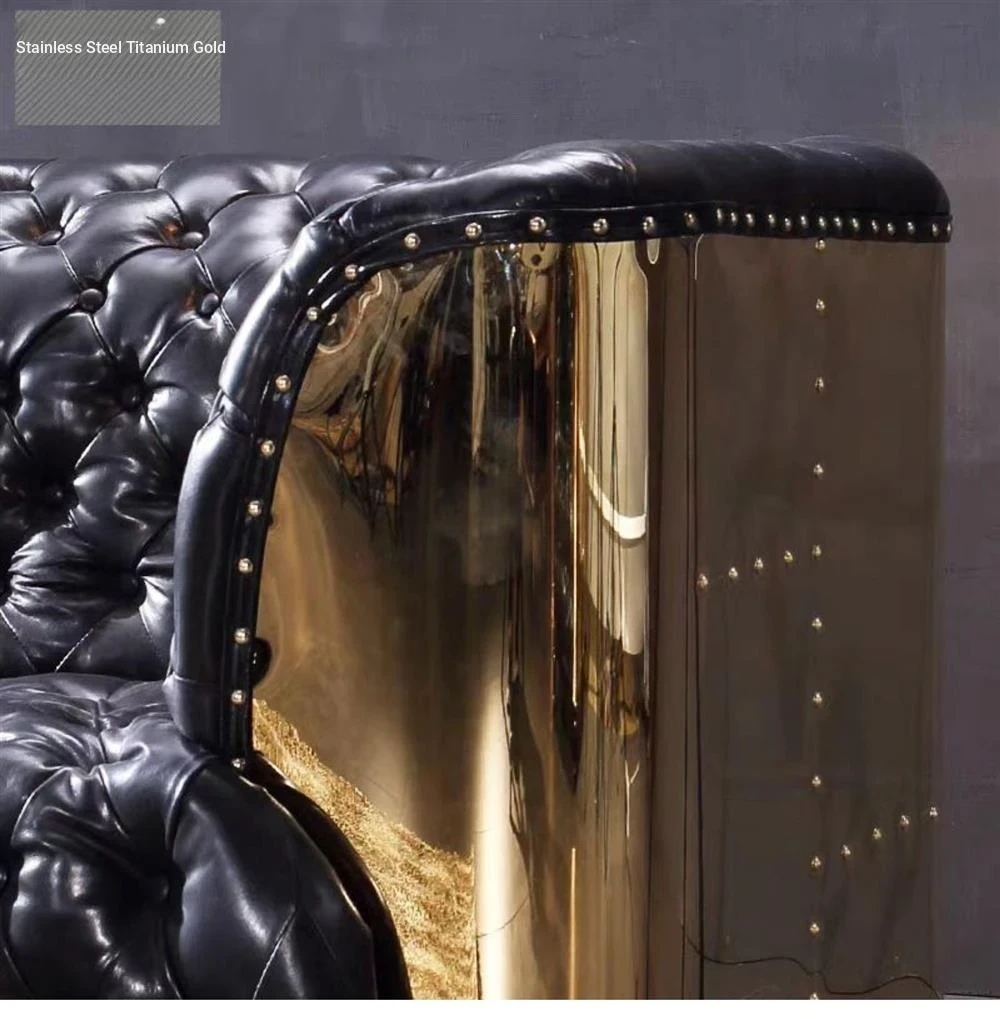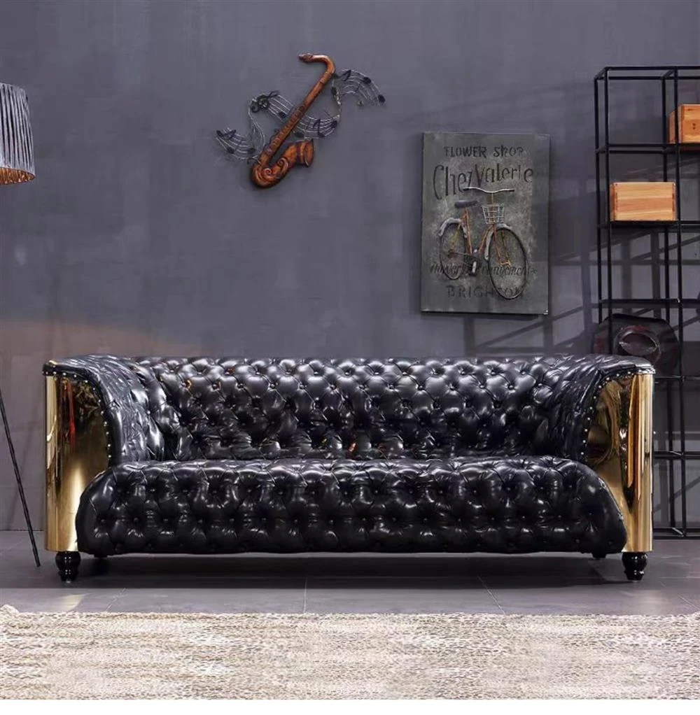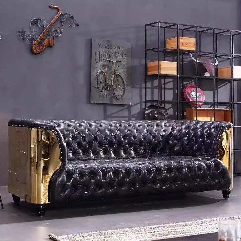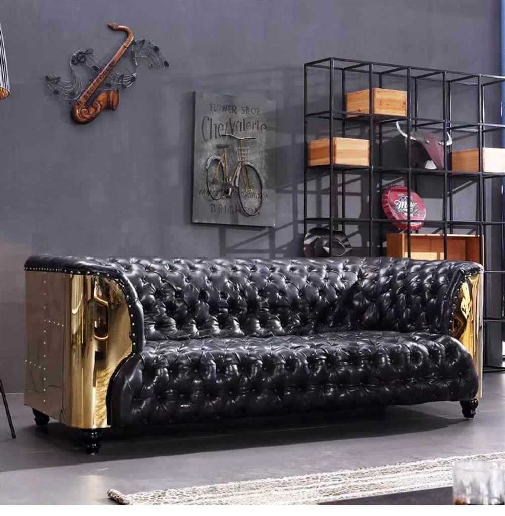 Vintage American Industrial Style Sofa with Copper Aluminum Upholstery - Premium Black Metal Cigar Lounge Sofa for Upscale Villas and Penthouses
