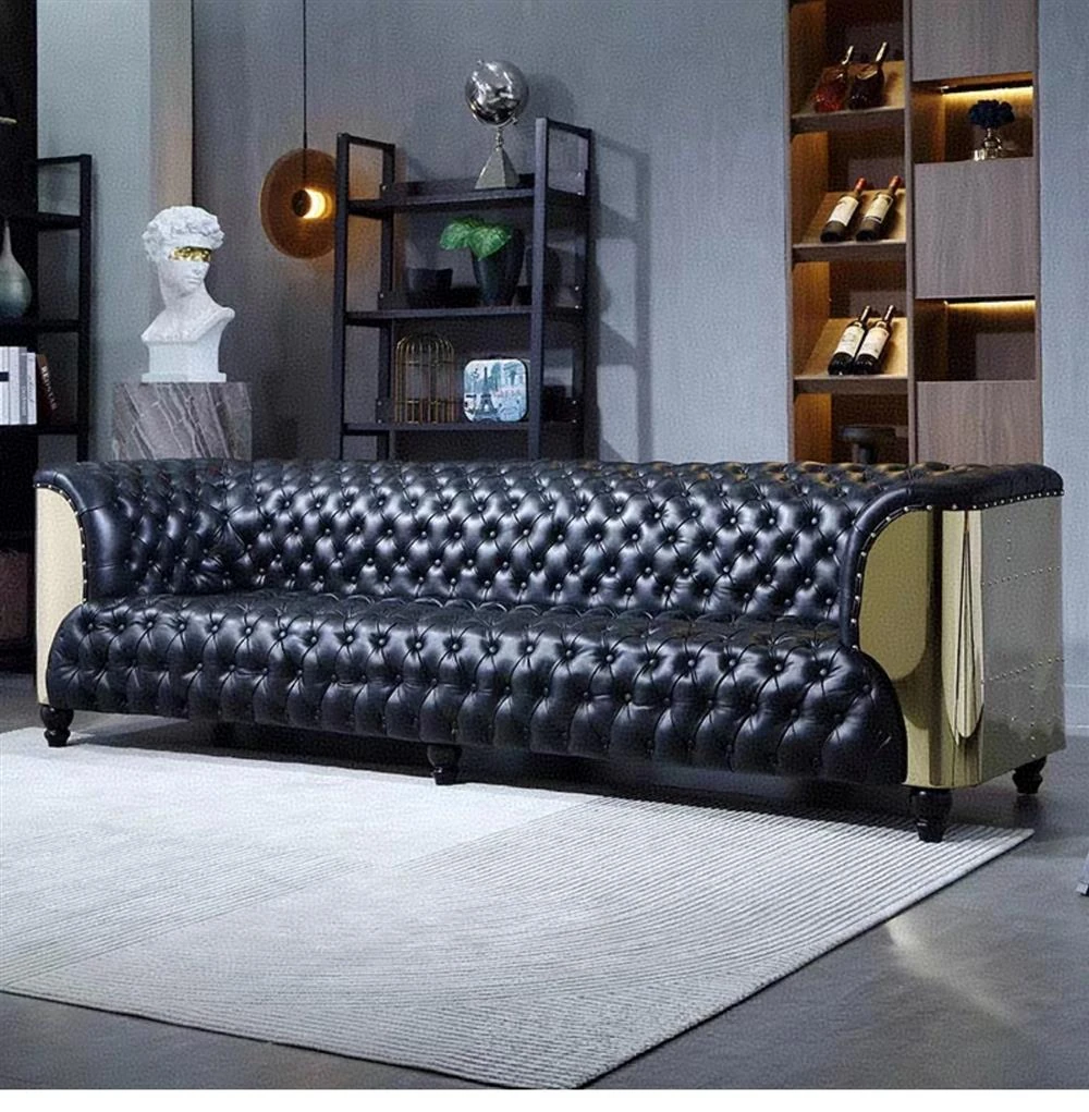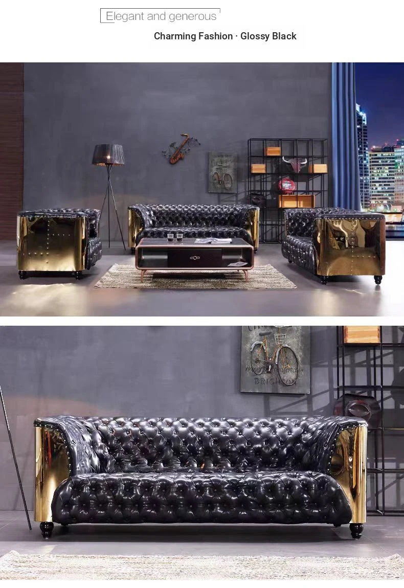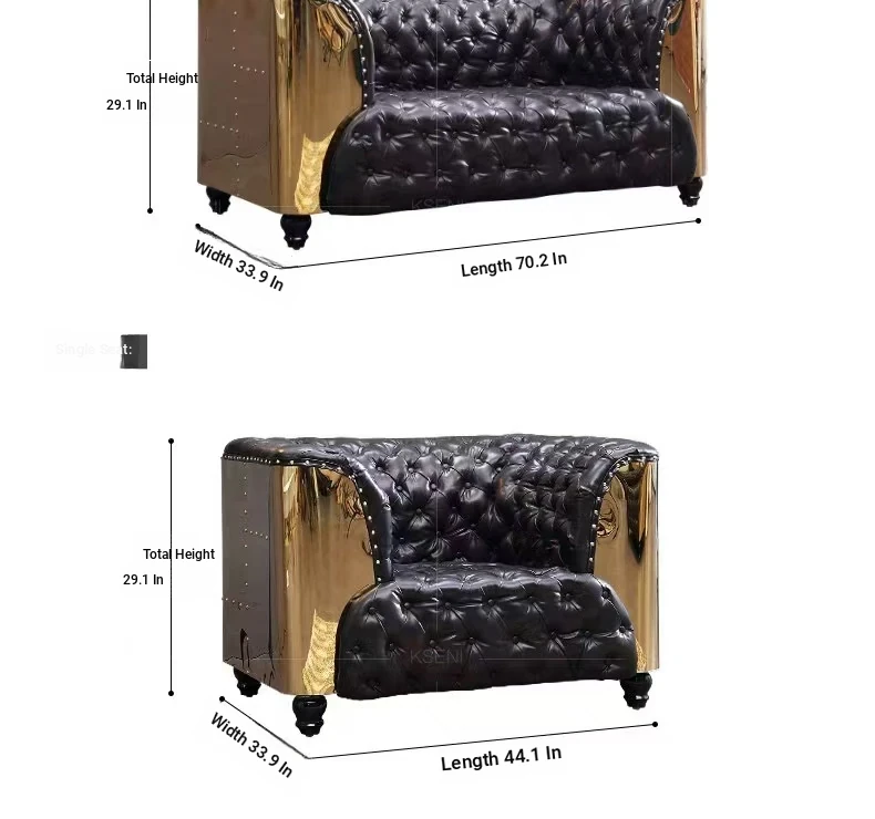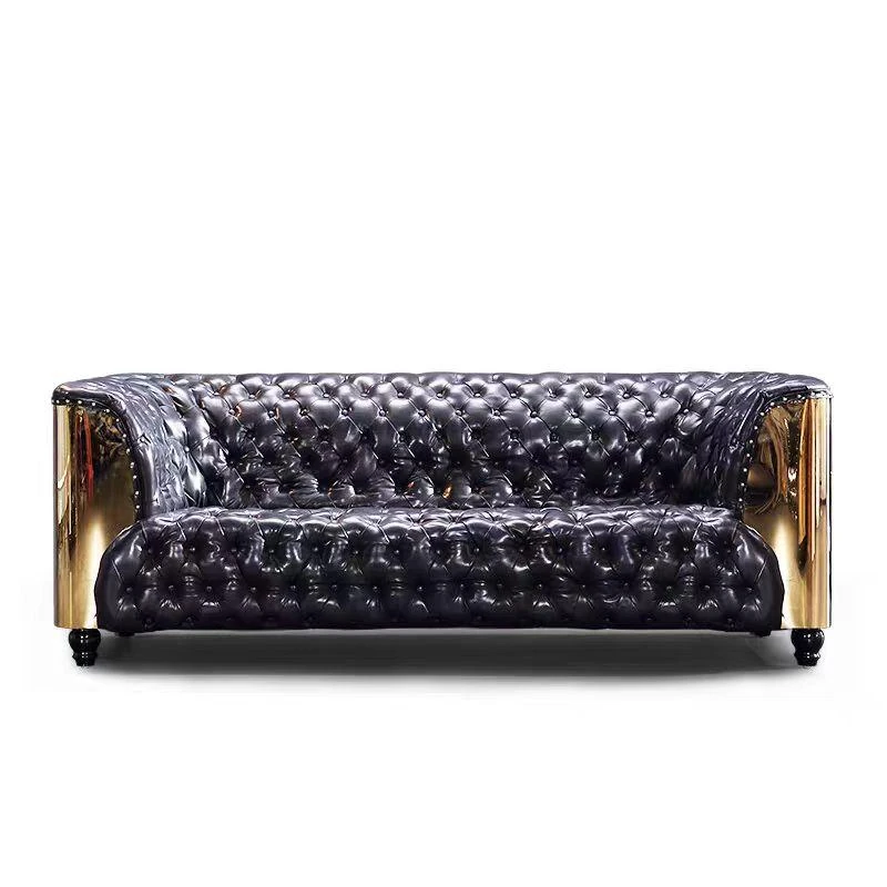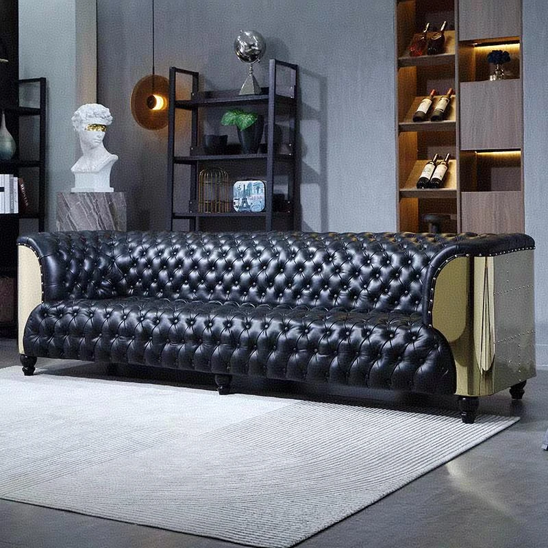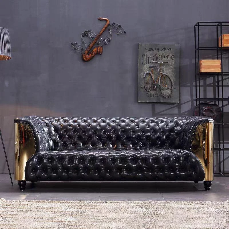 Vintage American Industrial Style Sofa with Copper Aluminum Upholstery - Premium Black Metal Cigar Lounge Sofa for Upscale Villas and Penthouses