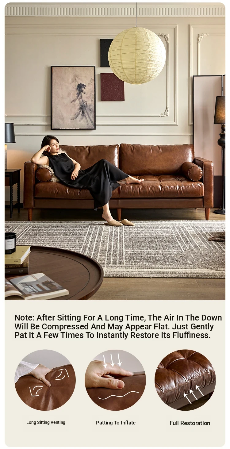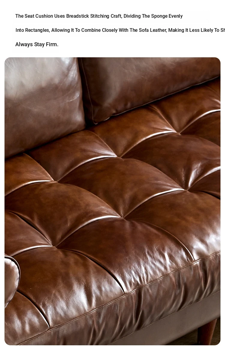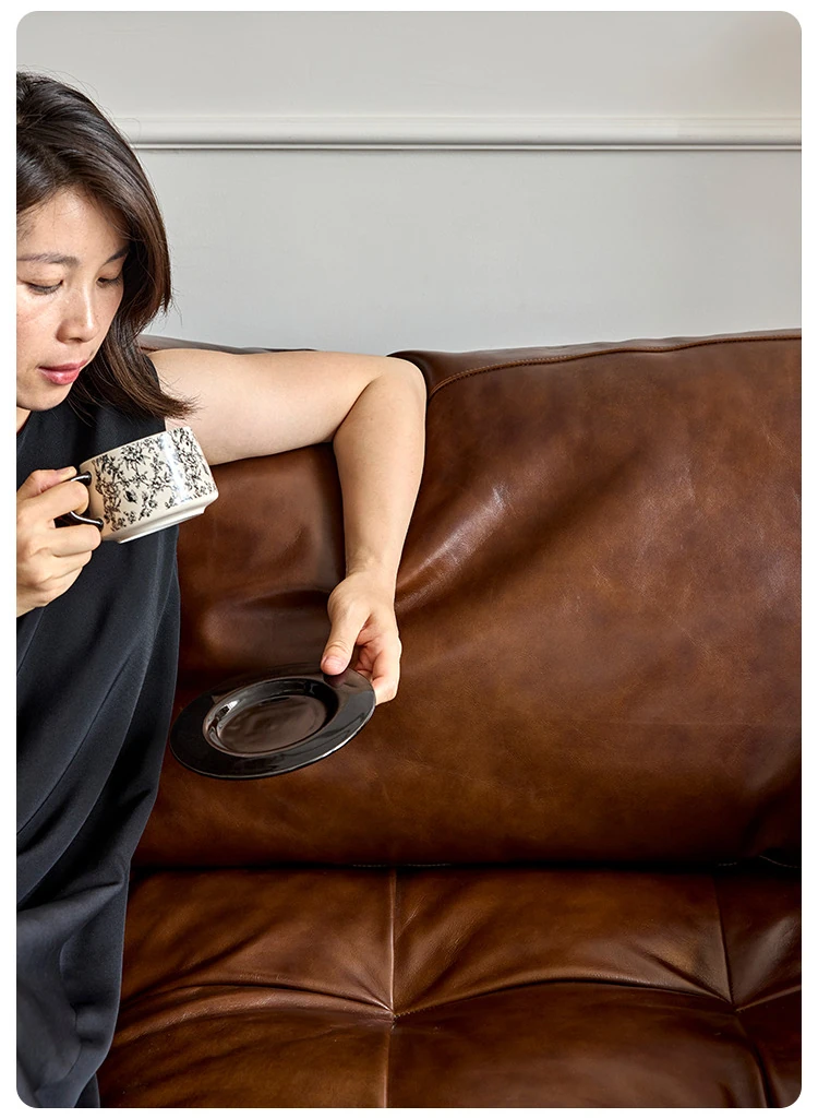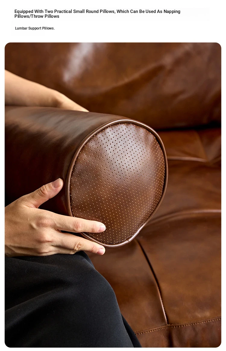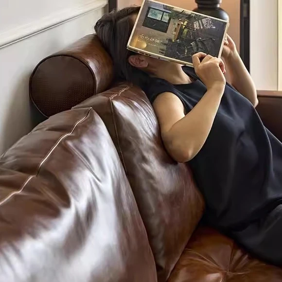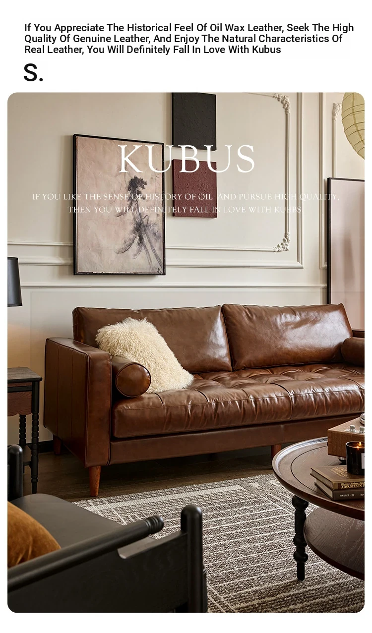 Vintage French Genuine Leather Sofa - American Top Grain Cowhide for Small Living Rooms - Stylish and Durable Oil Wax Leather Design