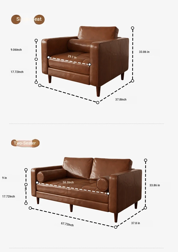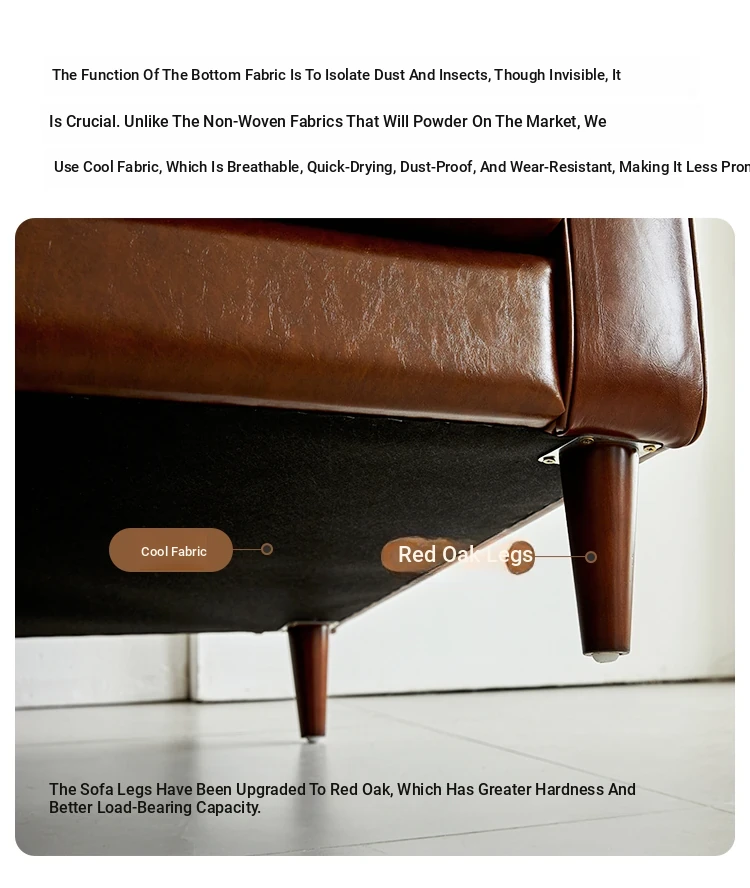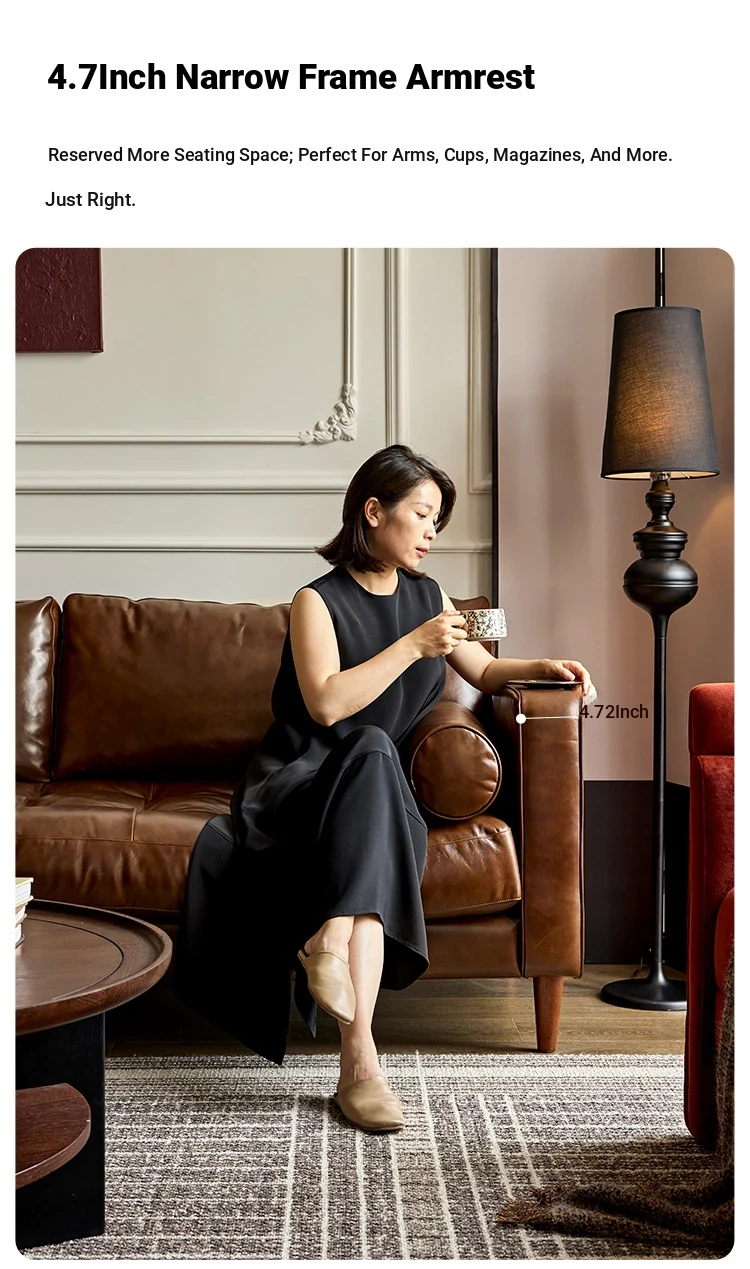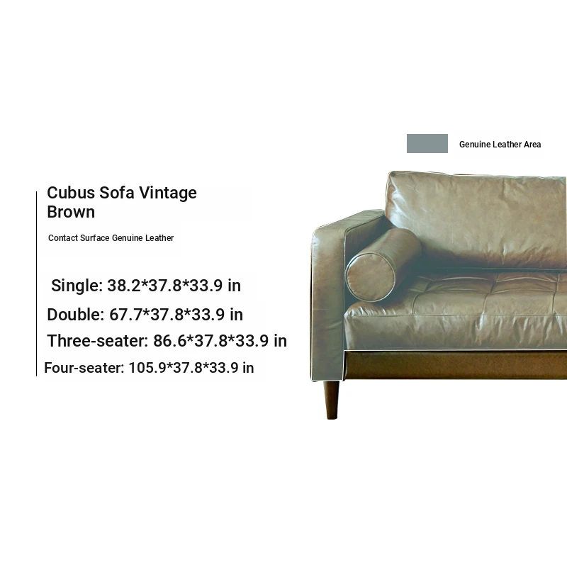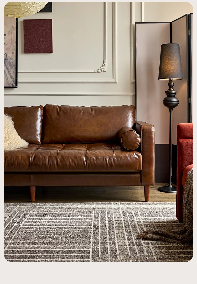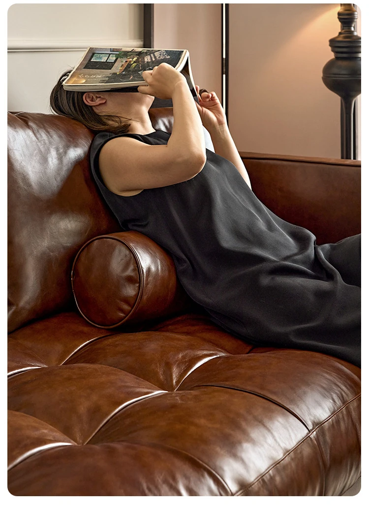 Vintage French Genuine Leather Sofa - American Top Grain Cowhide for Small Living Rooms - Stylish and Durable Oil Wax Leather Design