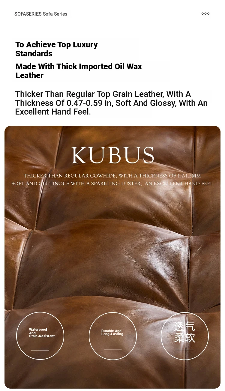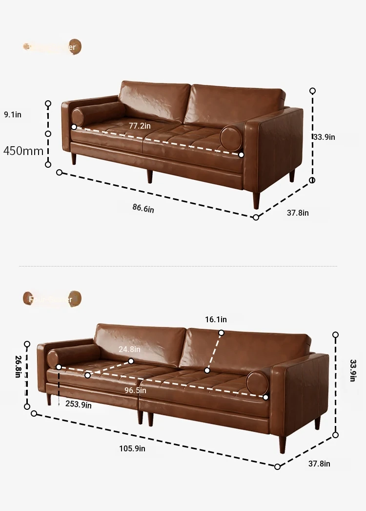 Three-person 86.61in/R grade oil wax leather/contact surface