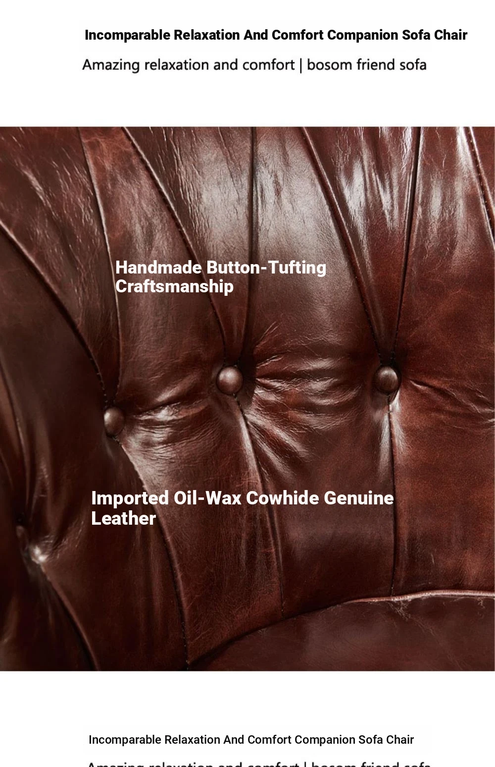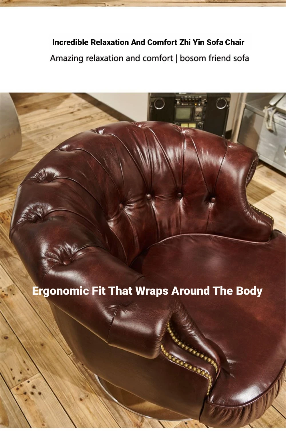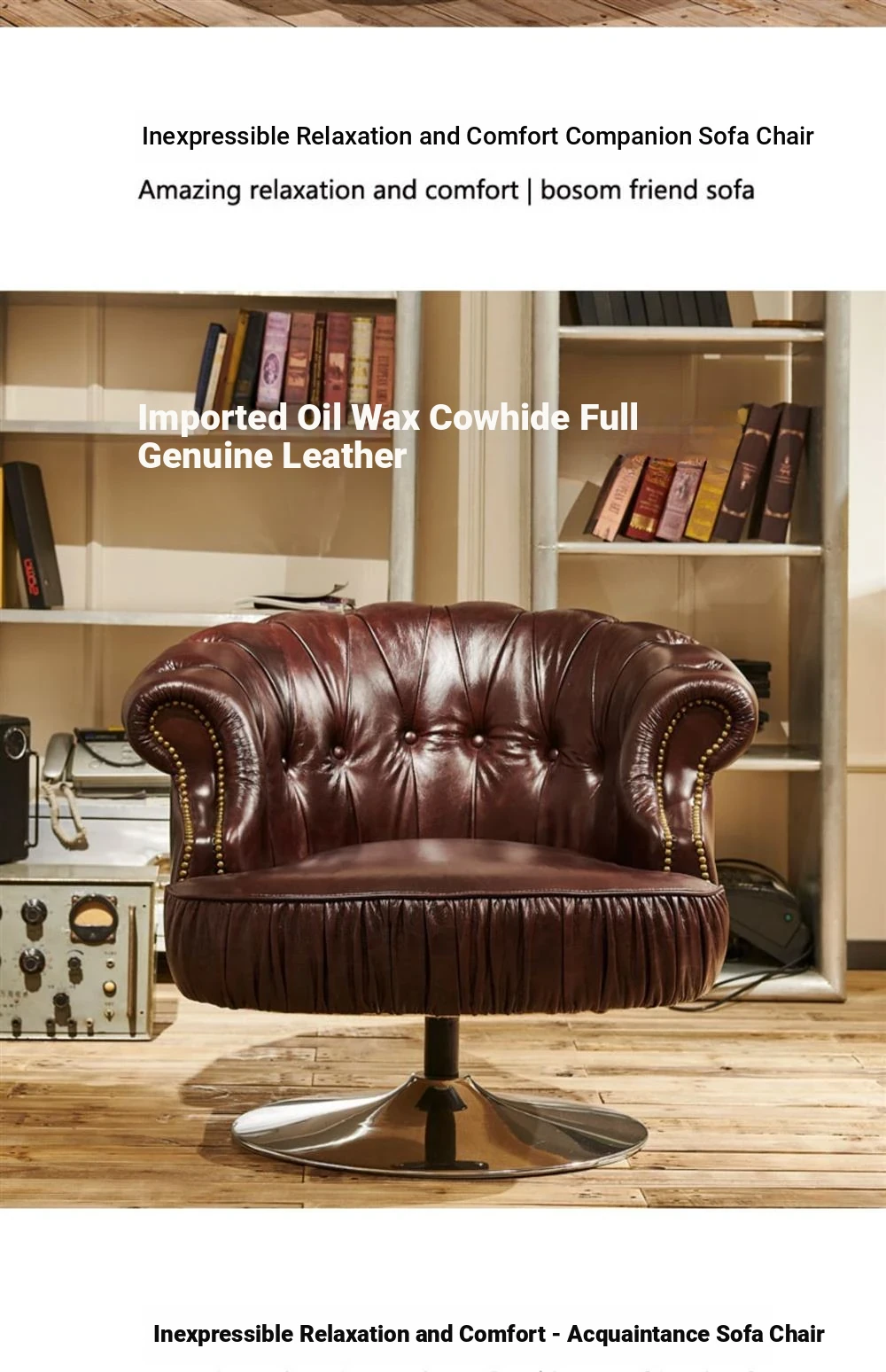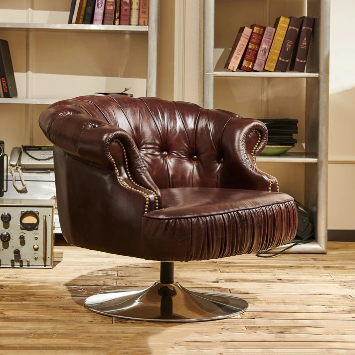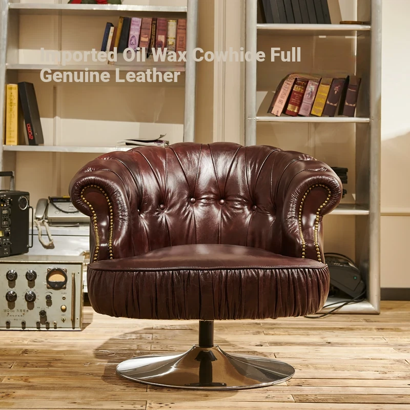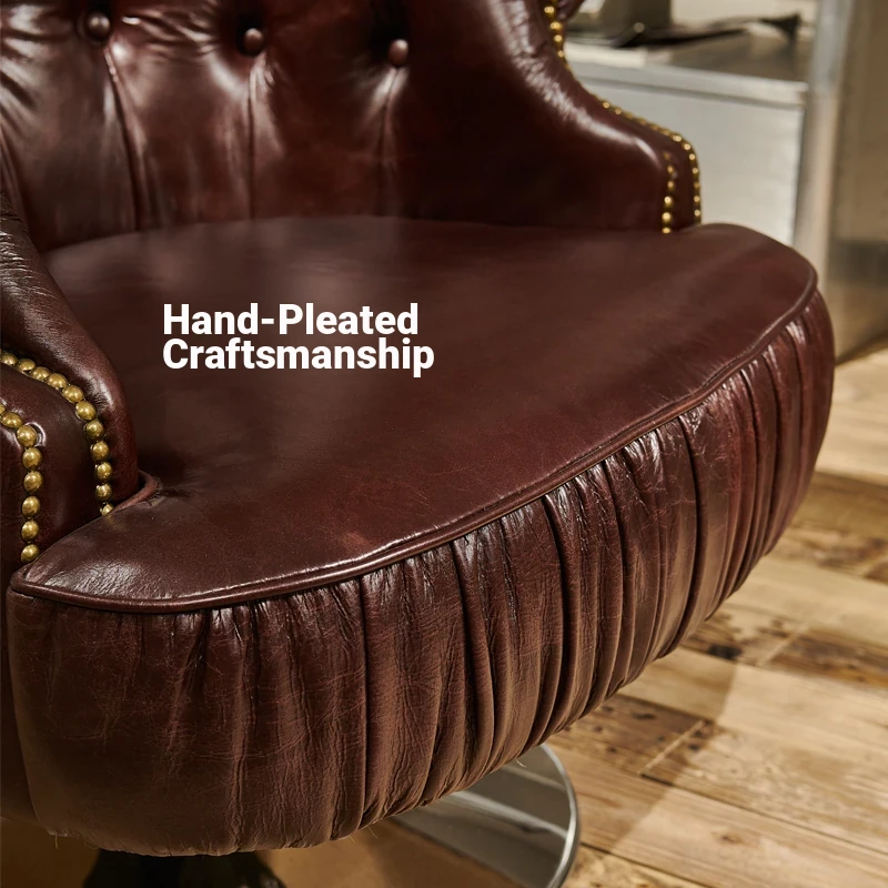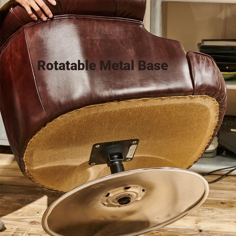 Vintage Genuine Leather Recliner Chair - Retro Burgundy Waxed Leather Single Sofa for Whiskey and Cigar Lounge - Tiger Chair Design