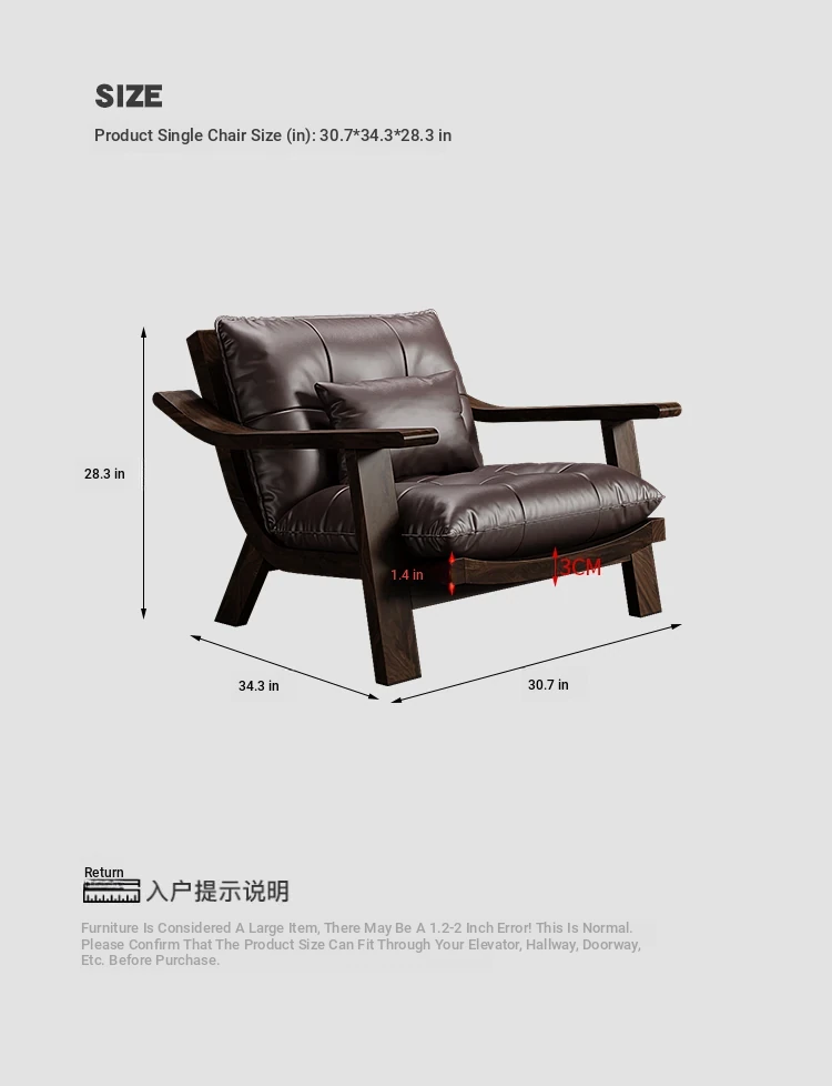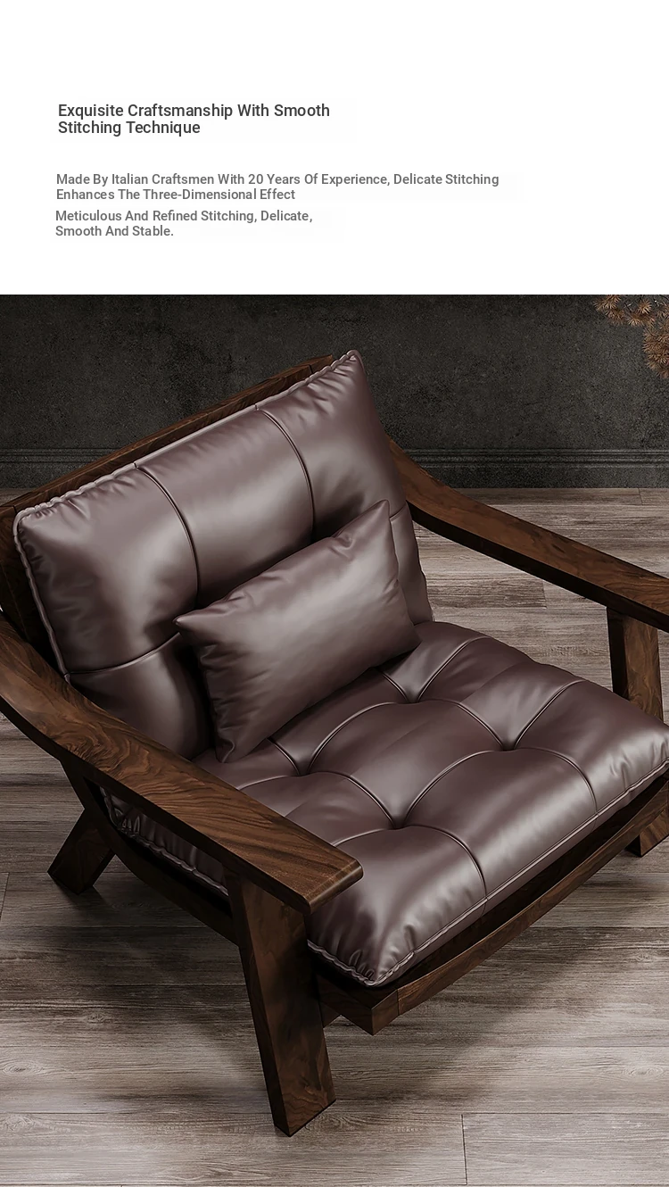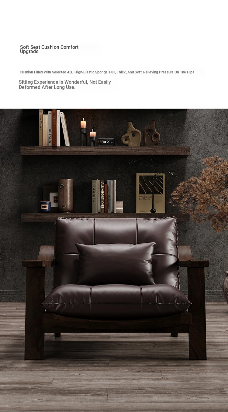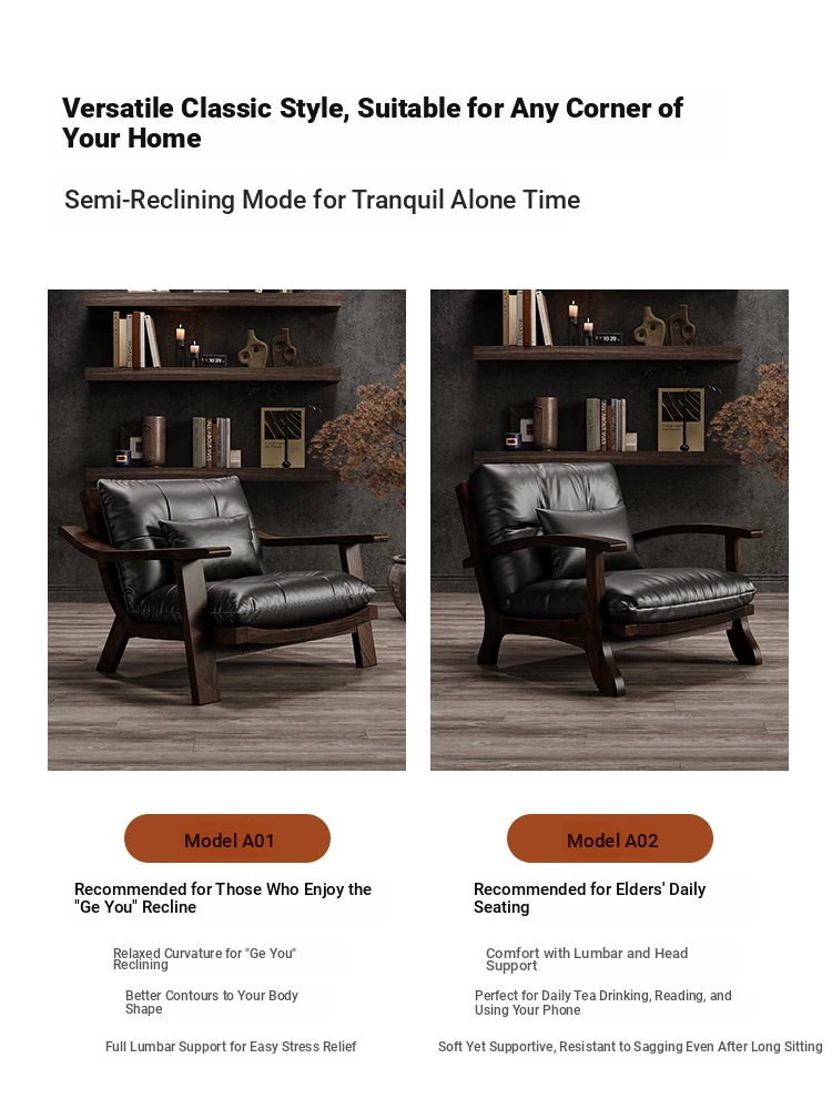 Vintage Solid Wood Lounge Chair - Retro Genuine Leather Single Sofa - Designer Tea Chair with Armrests and Backrest - Perfect for Relaxation and Style