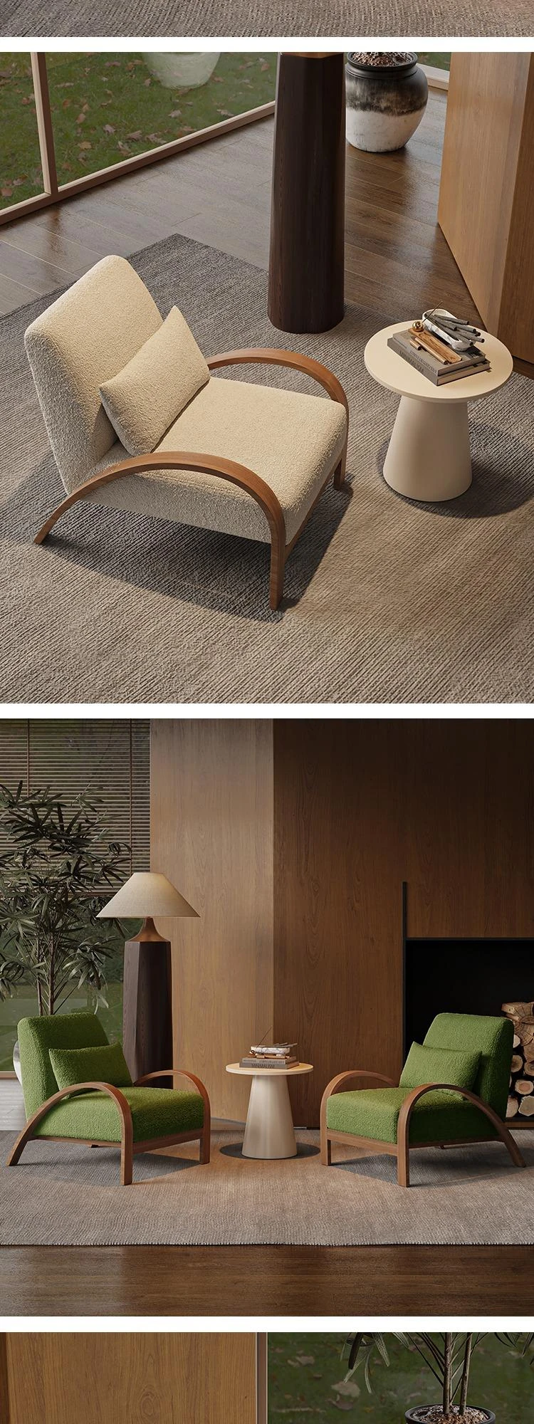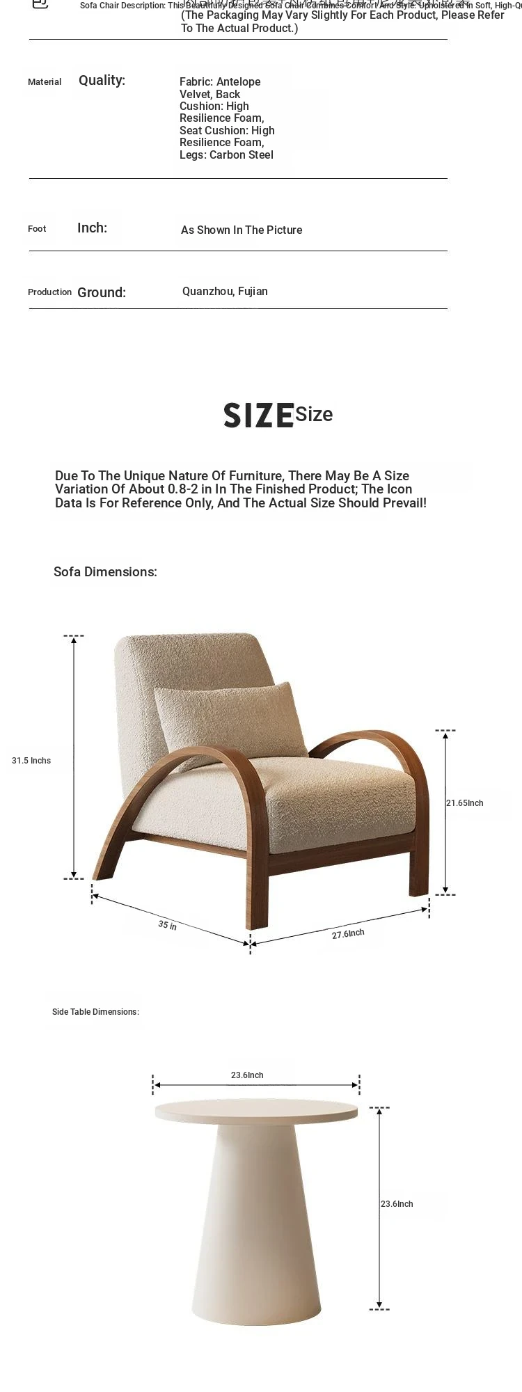[Package: Rice White Cashmere] 2 sofa chairs + side diameter 19.69in
