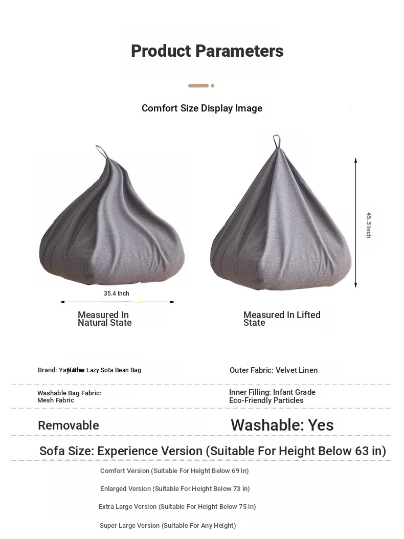 Yaisa Lazy Bean Bag Sofa - EPP Material, Removable and Washable, Perfect for Bedrooms and Balconies, Ideal Lounge Chair for Tatami Style Relaxation, Single Seat Comfort