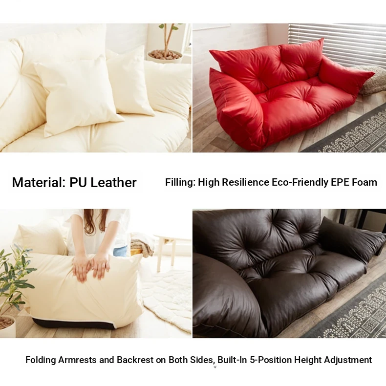 Yaisa Lazy Sofa - Compact Design for Small Living Rooms and Bedrooms, Double-Sized Tatami Folding Multi-Functional Sofa Bed with Premium Leather Upholstery