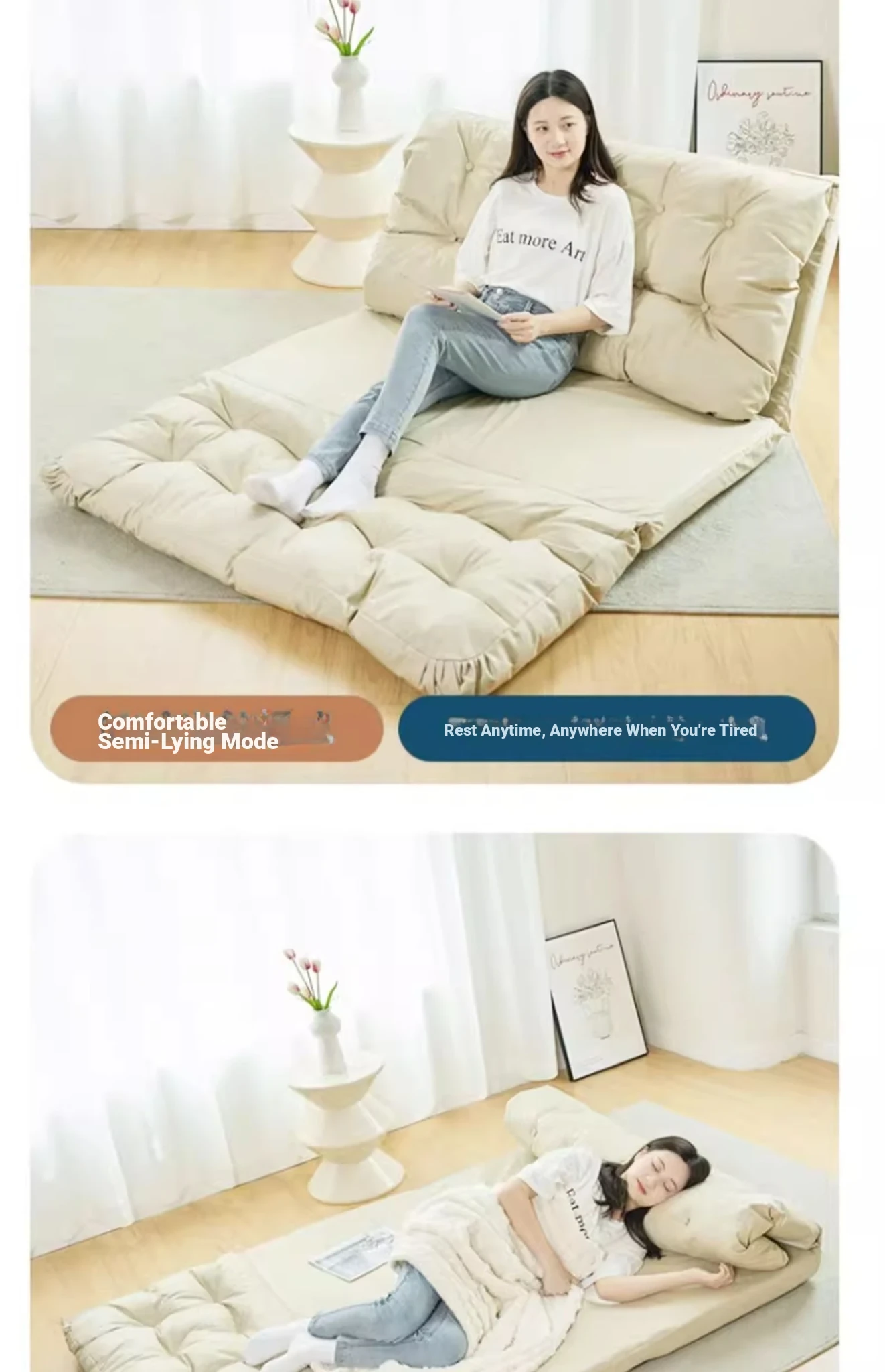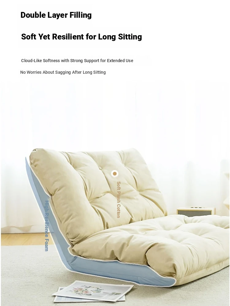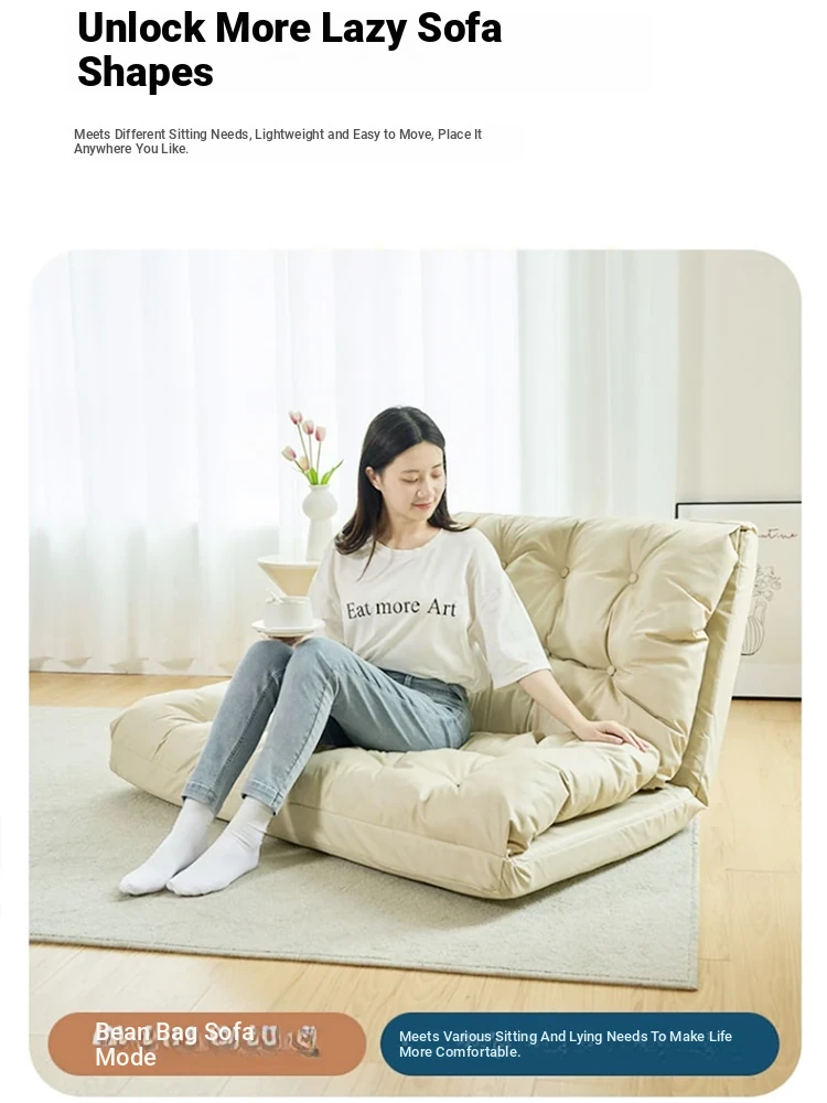 Yaisa Lazy Sofa - Cream Cloud Foldable Sofa Bed for Small Spaces, Perfect for Bedrooms and Tatami Areas, Ideal for Couples and Singles