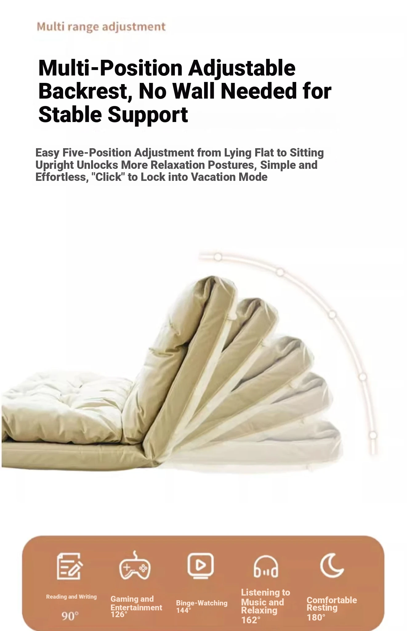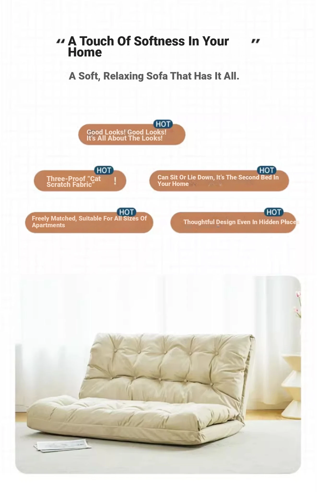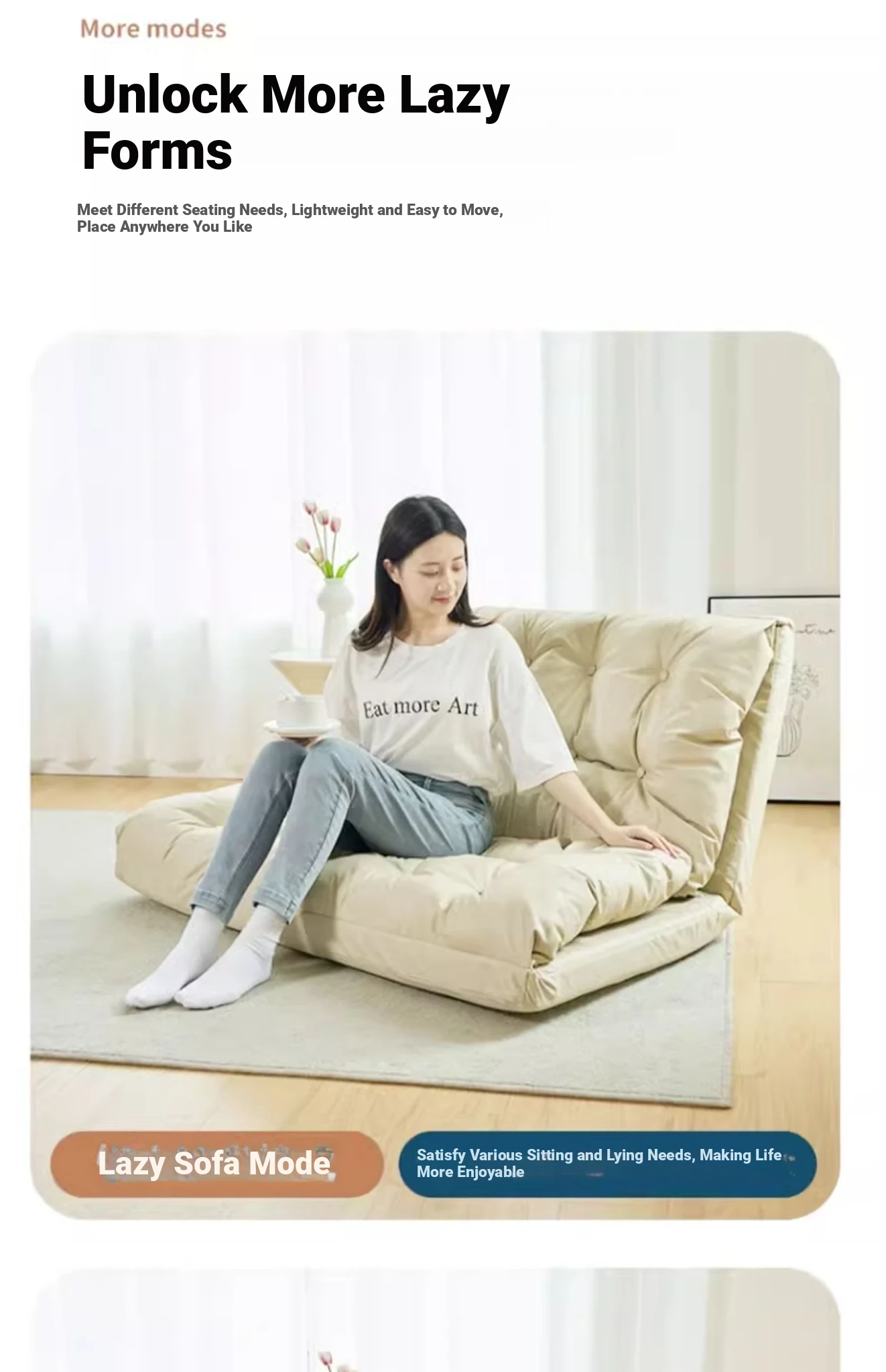 Yaisa Lazy Sofa - Cream Cloud Foldable Sofa Bed for Small Spaces, Perfect for Bedrooms and Tatami Areas, Ideal for Couples and Singles