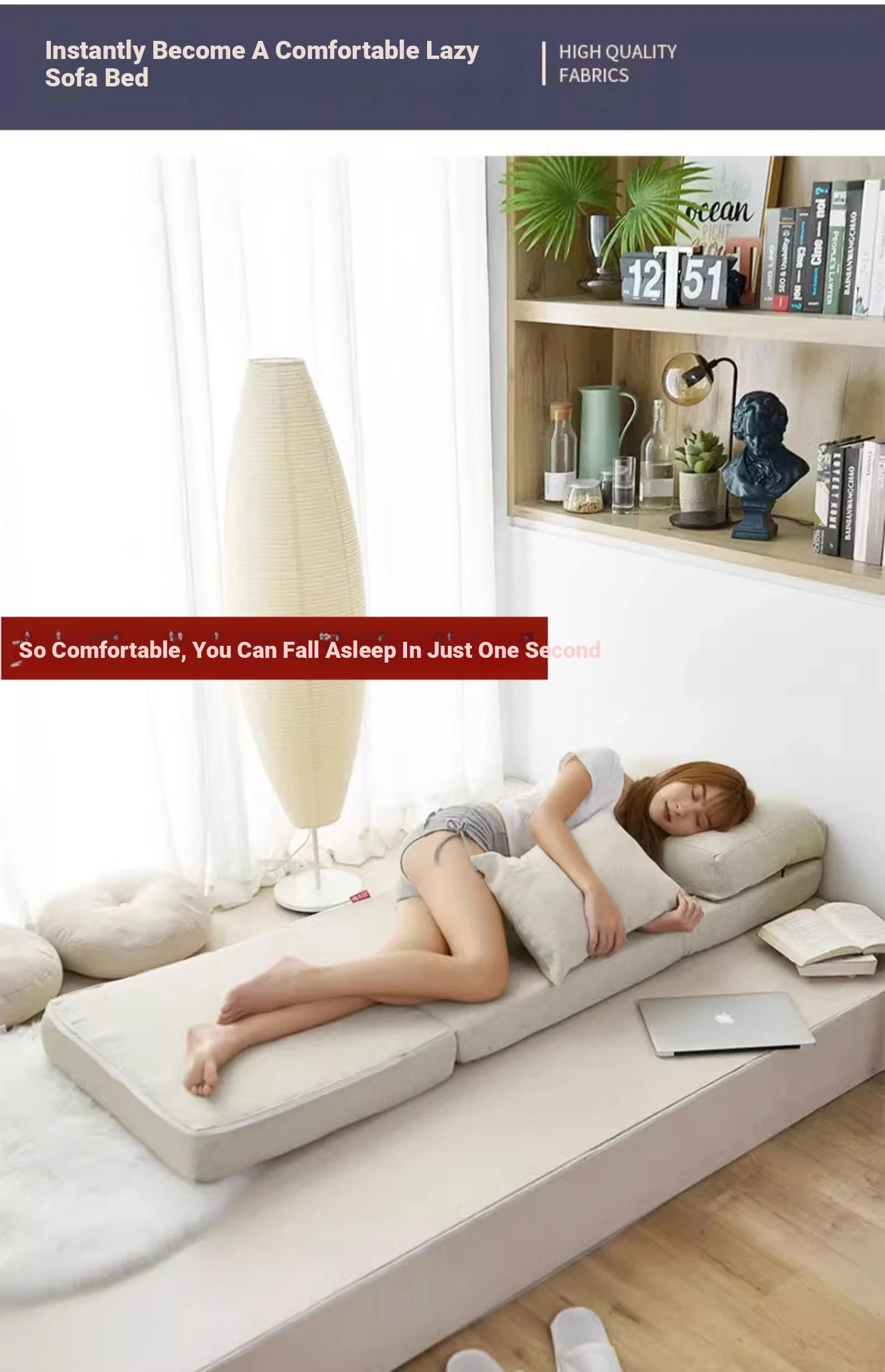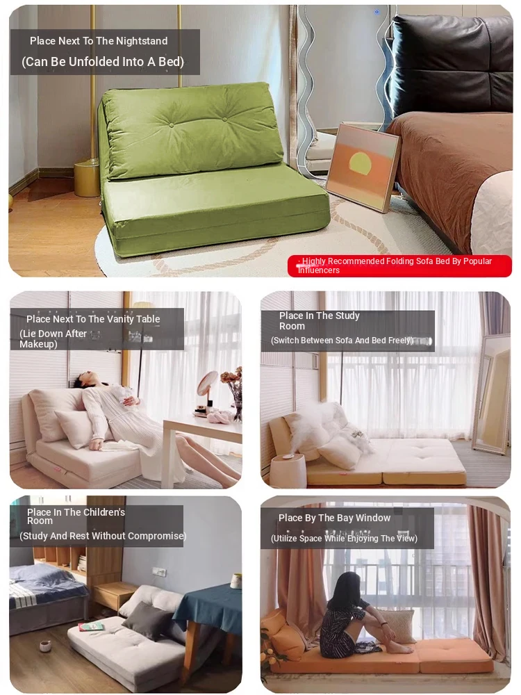 Yayisha Japanese Foldable Lazy Sofa Bed - Tatami Lounge Chair for Bedroom, Single & Double Options, Perfect for Bay Windows, Removable & Washable Cushion