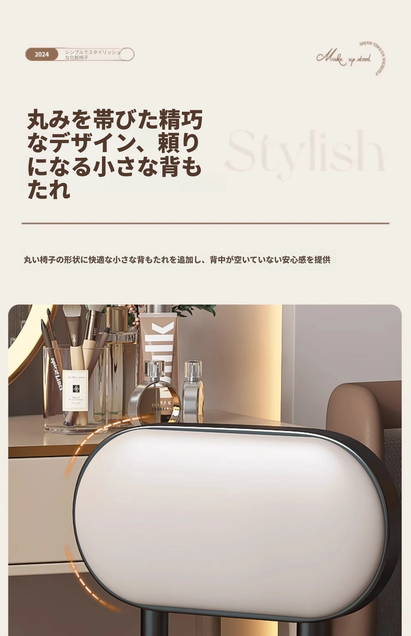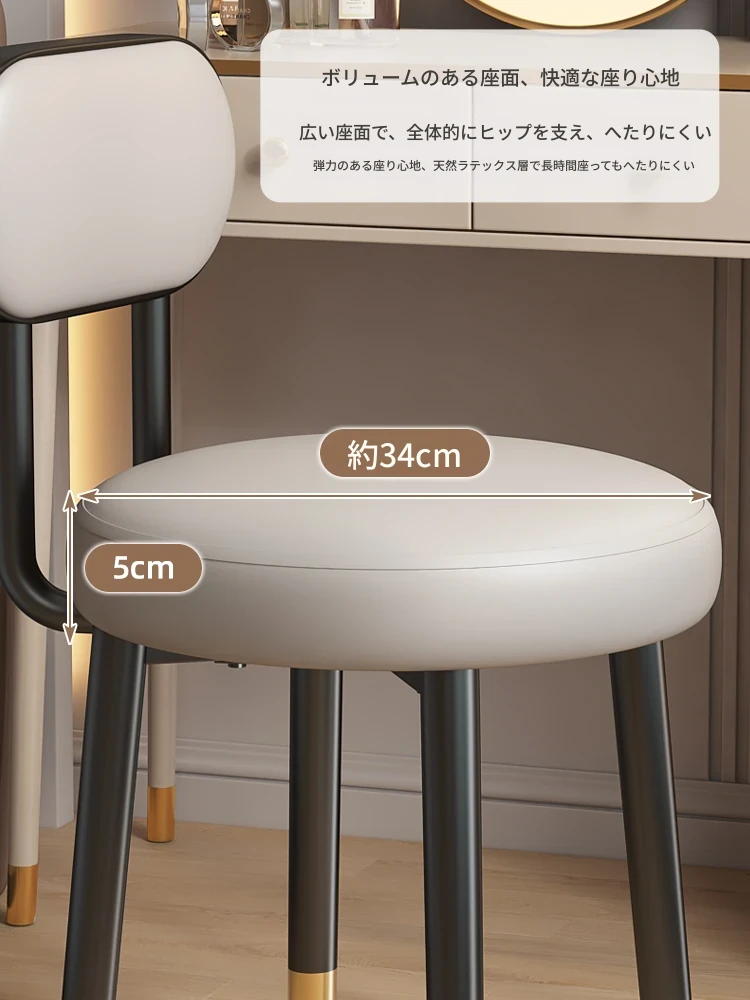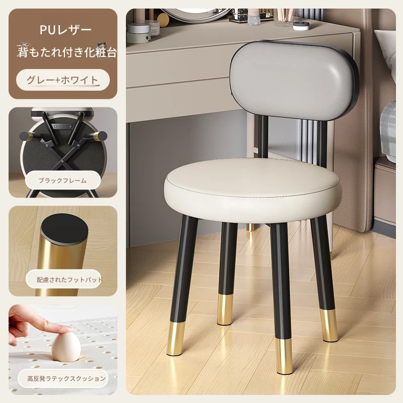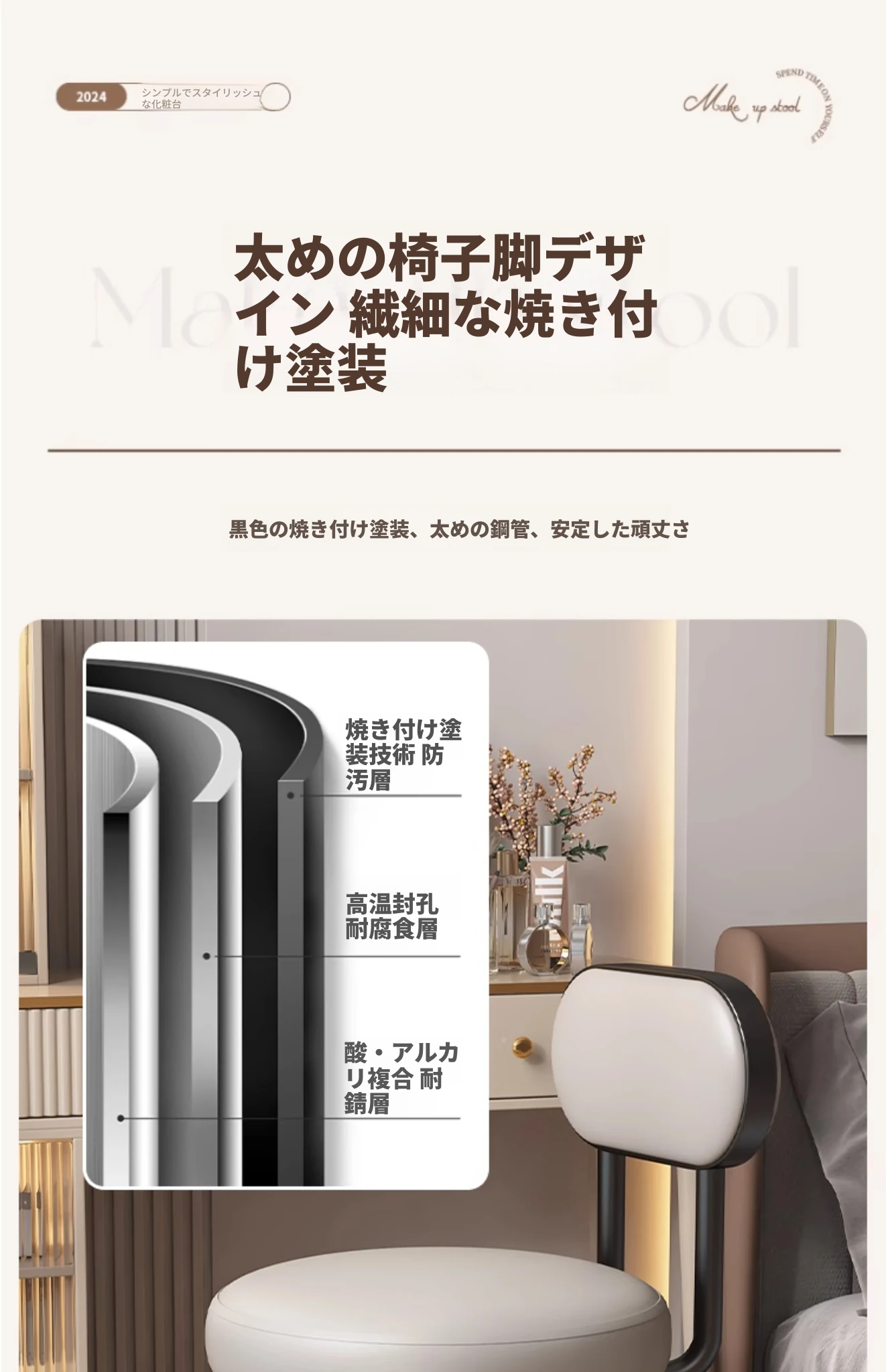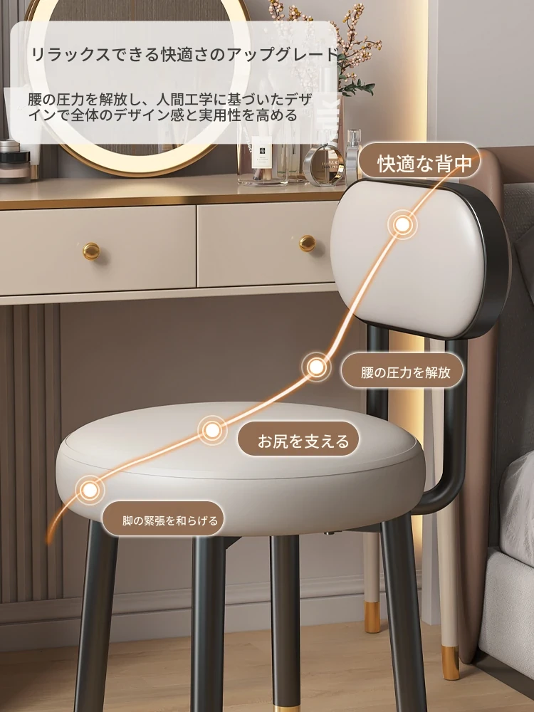 2025年新作!高級感溢れるメイク椅子 - 自宅用のスタイリッシュな背もたれ付き椅子。女性のための理想的なドレッサー専用スツール、寝室にぴったり!