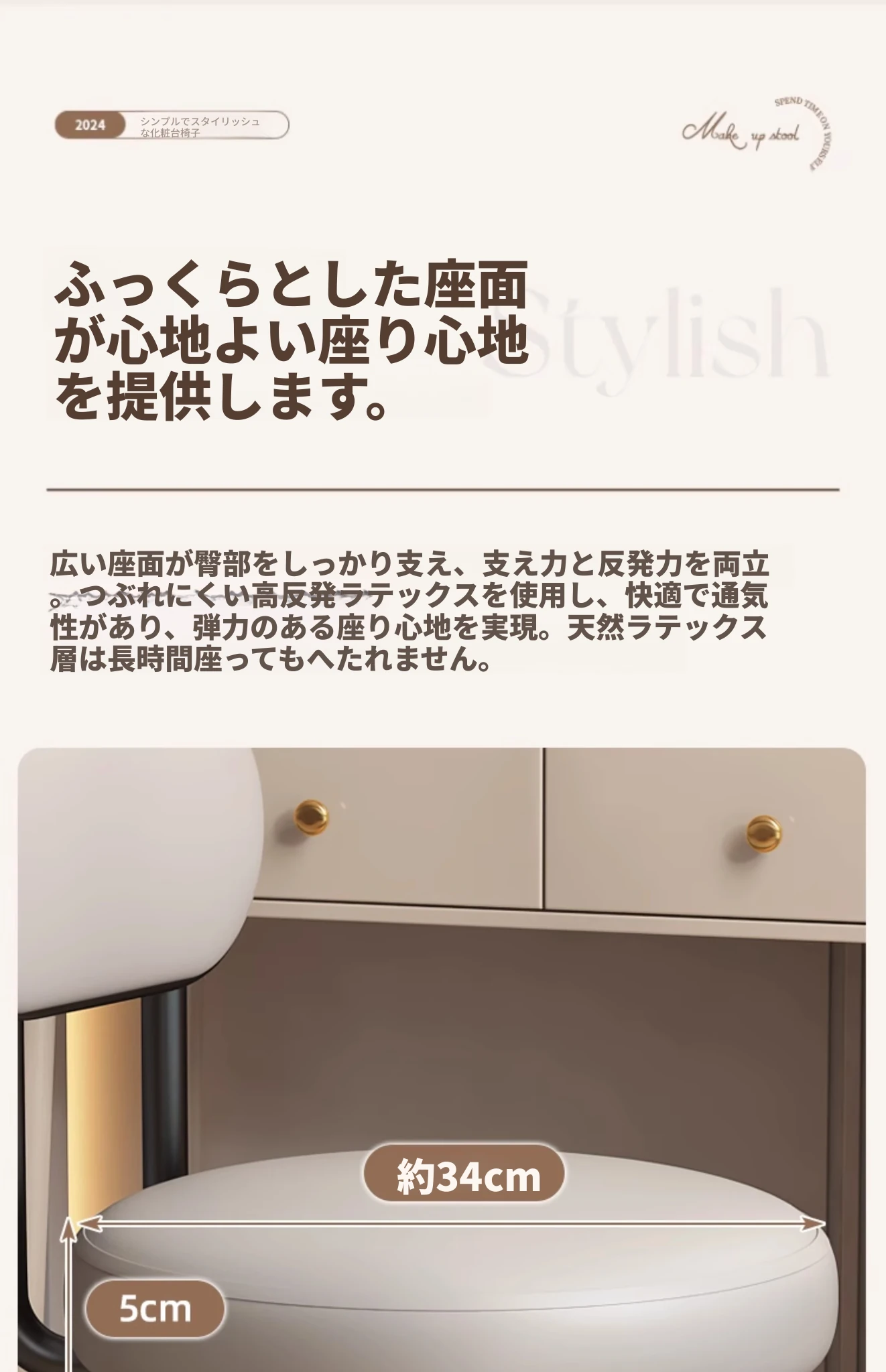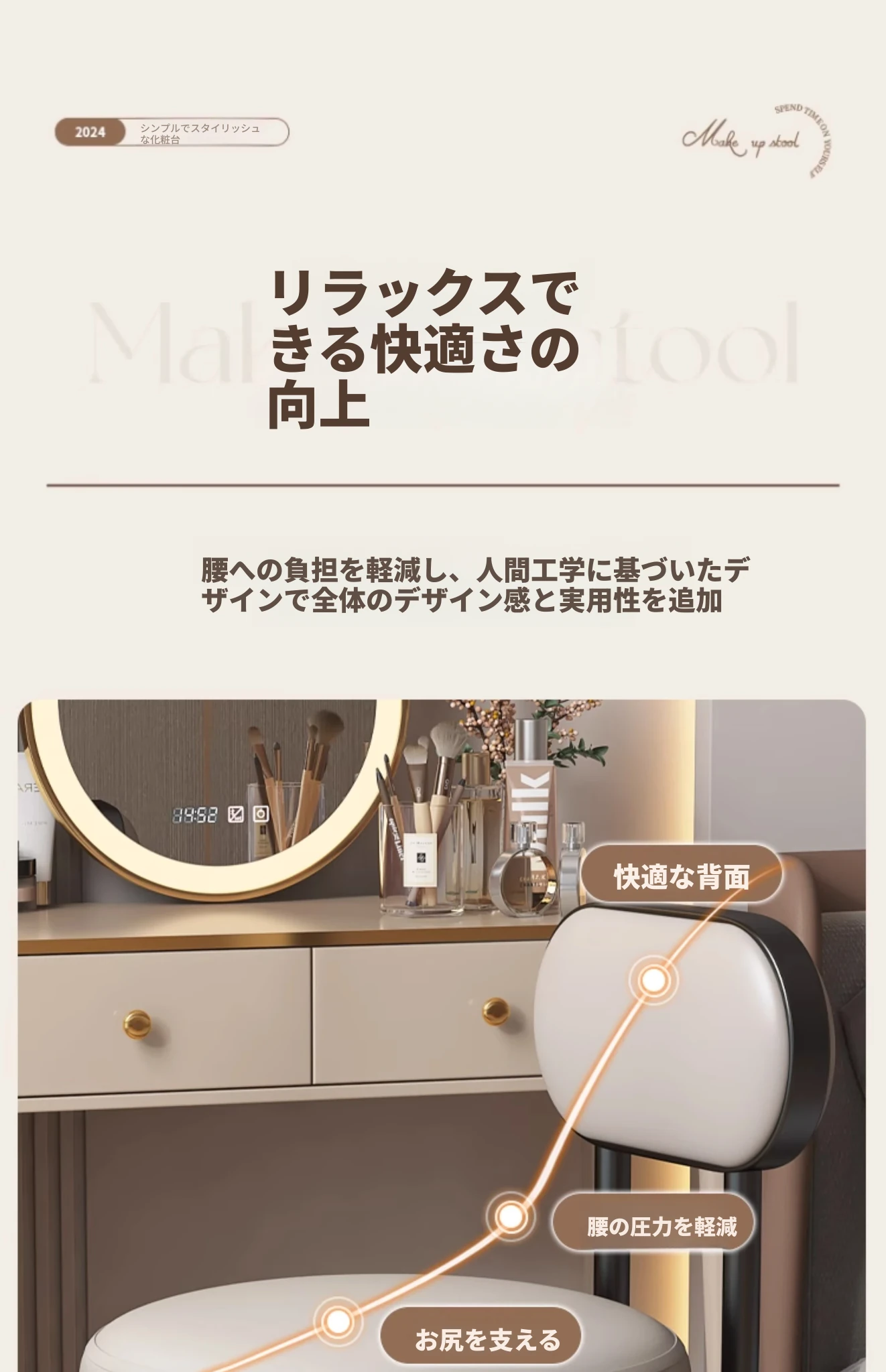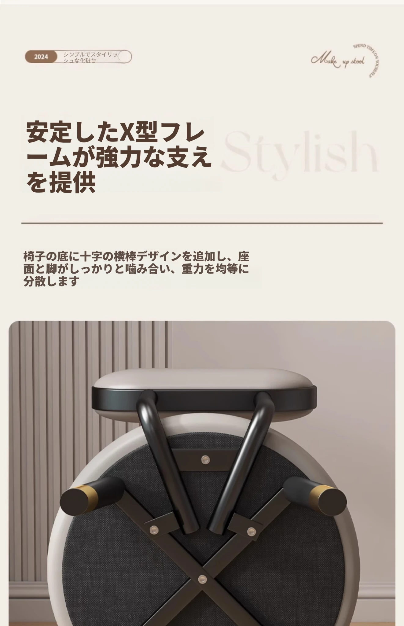2025年新作!高級感溢れるメイク椅子 - 自宅用のスタイリッシュな背もたれ付き椅子。女性のための理想的なドレッサー専用スツール、寝室にぴったり!