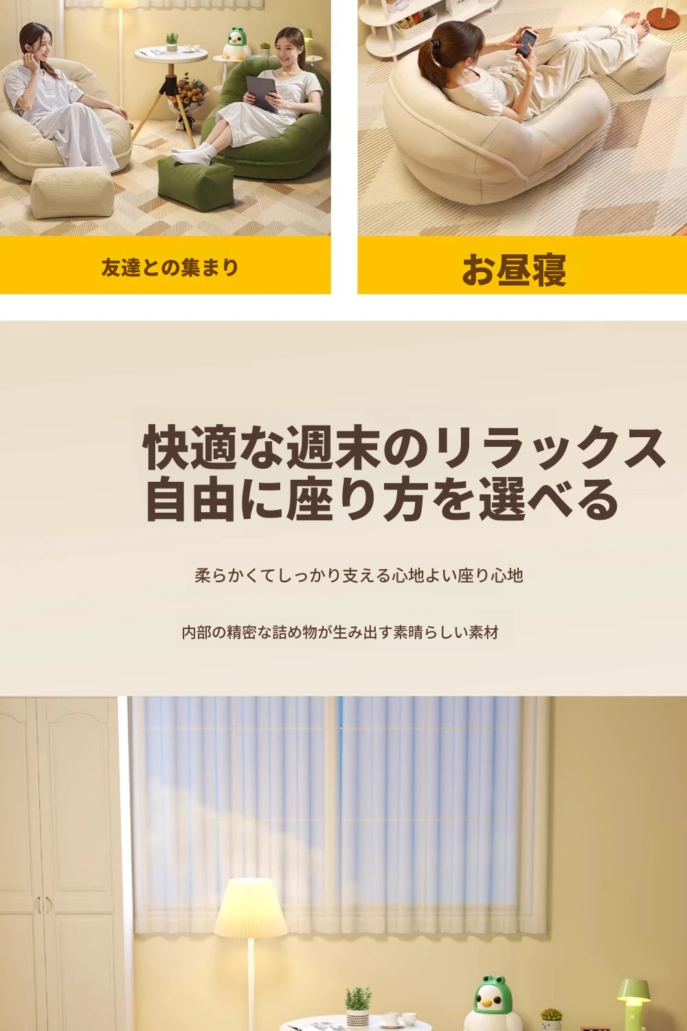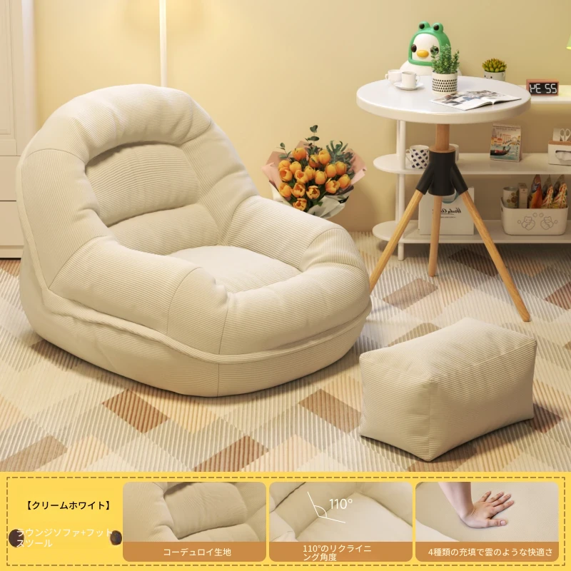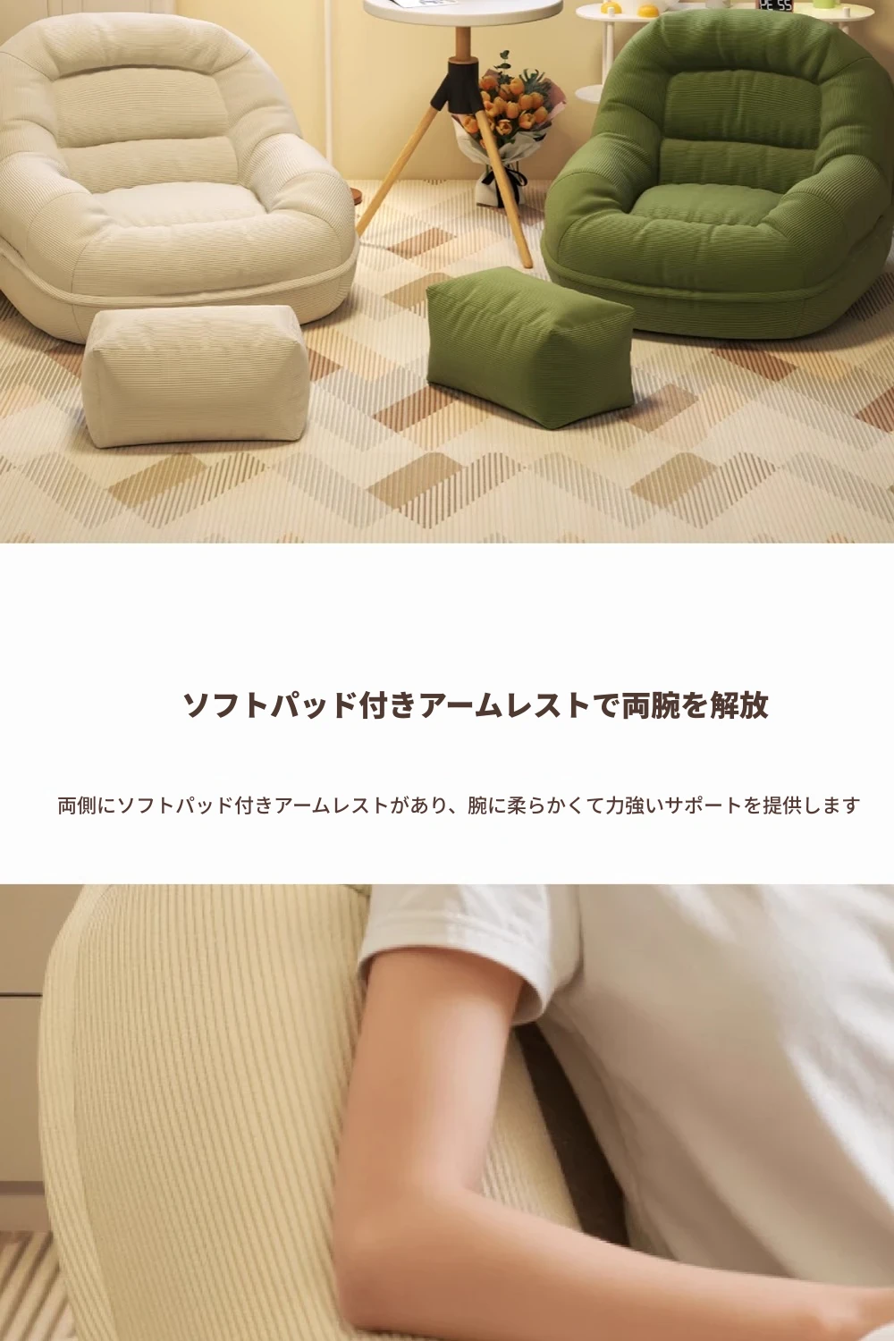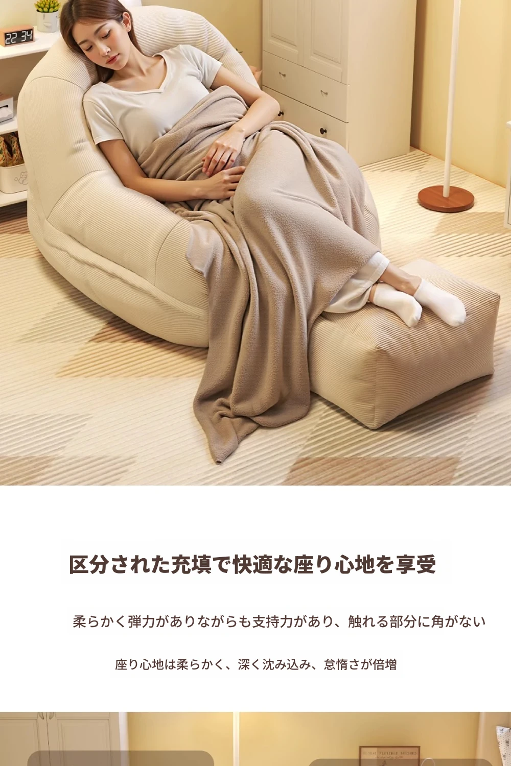 【厚手⭐コーデュロイ】フットレストタイプ⭐アップグレード環境粒子⭐【アイボリー】しっかりとした充填-長時間座ってもへたらない (無臭で、より安心)