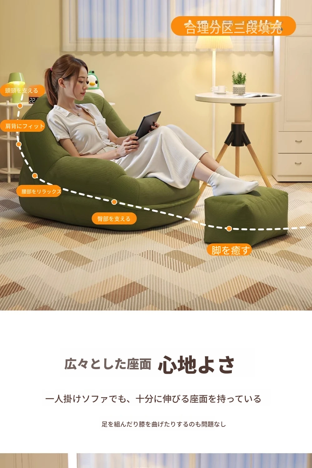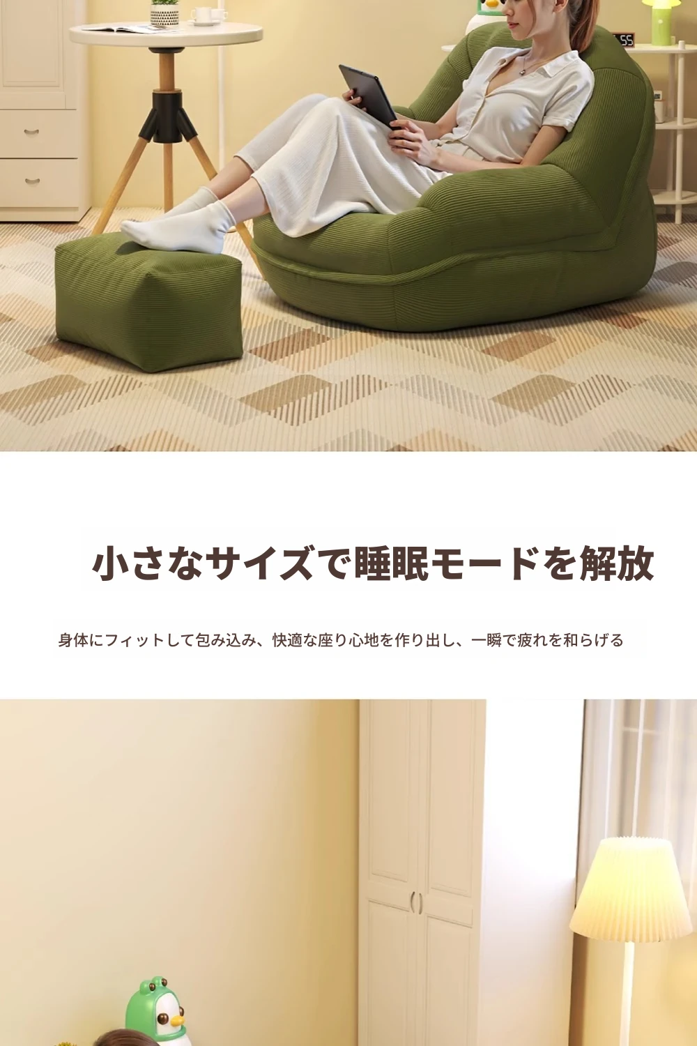 【厚手⭐コーデュロイ】フットレストタイプ⭐アップグレード環境粒子⭐【オリーブグリーン】しっかりとした充填-長時間座ってもへたらない (無臭で、より安心)