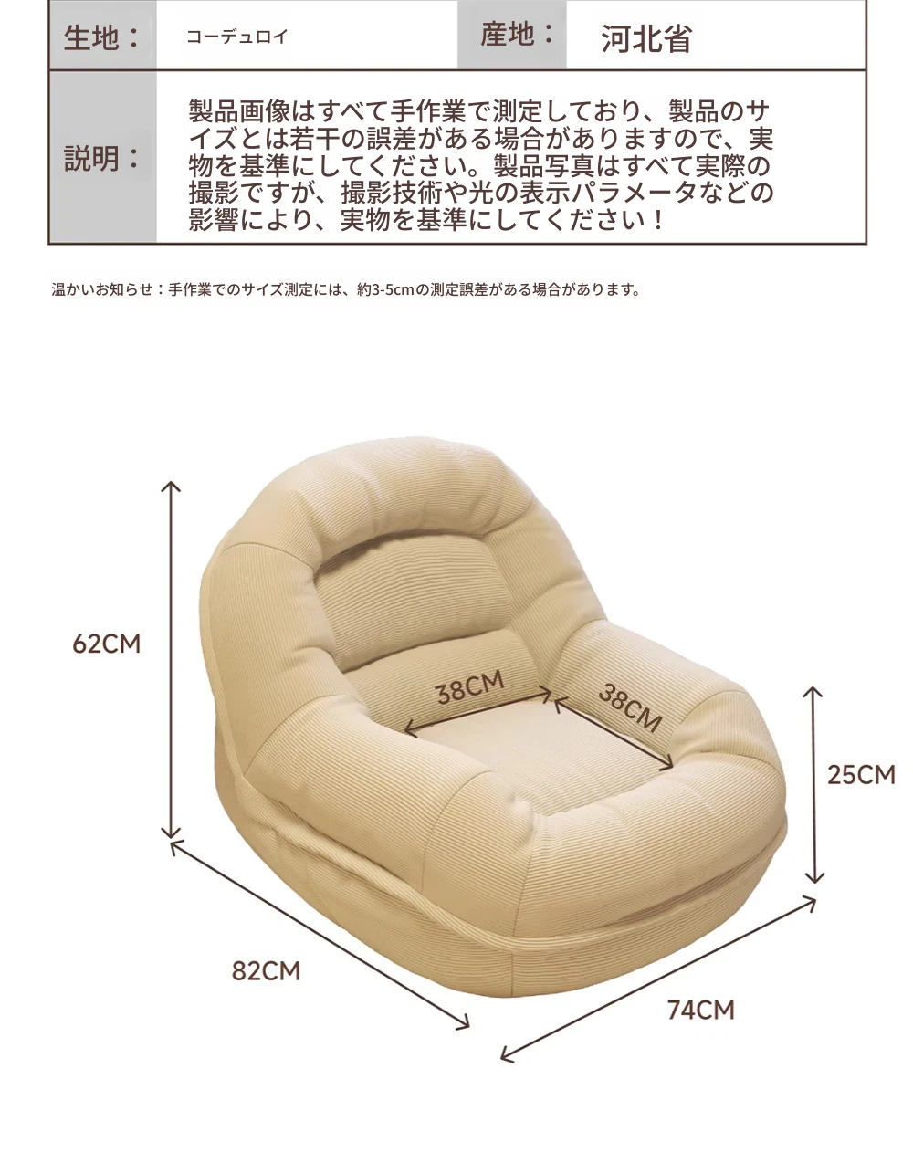 【厚手⭐コーデュロイ】アップグレード環境粒子⭐【アイボリー】しっかりとした充填-長時間座ってもへたらない (無臭で、より安心)