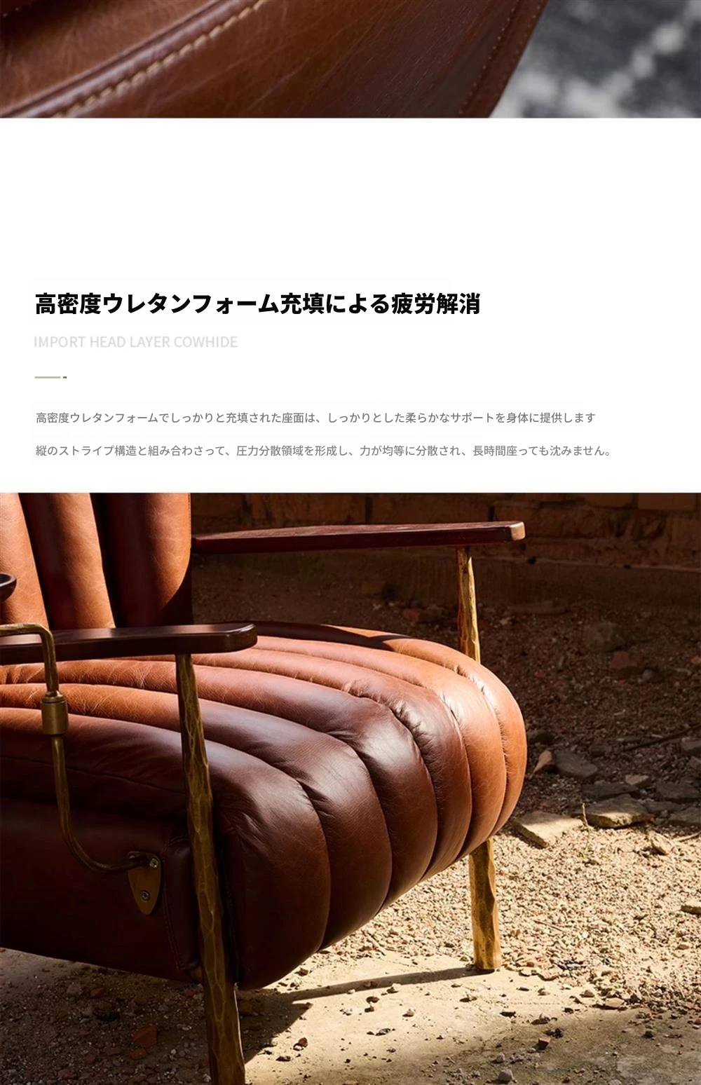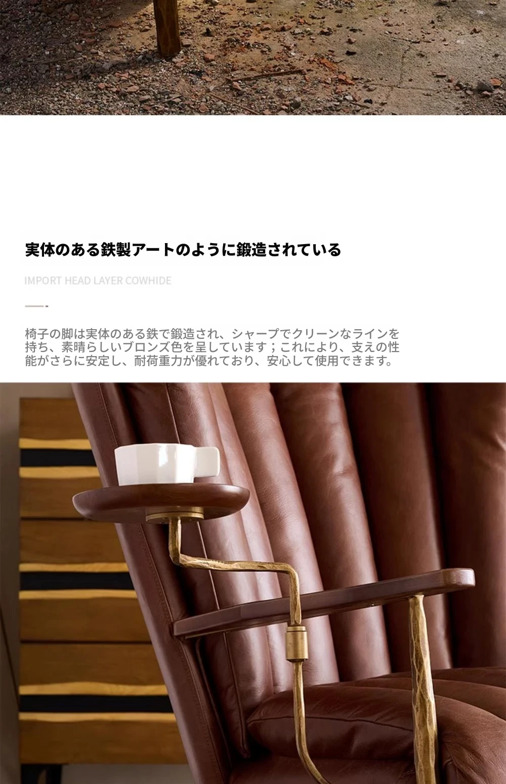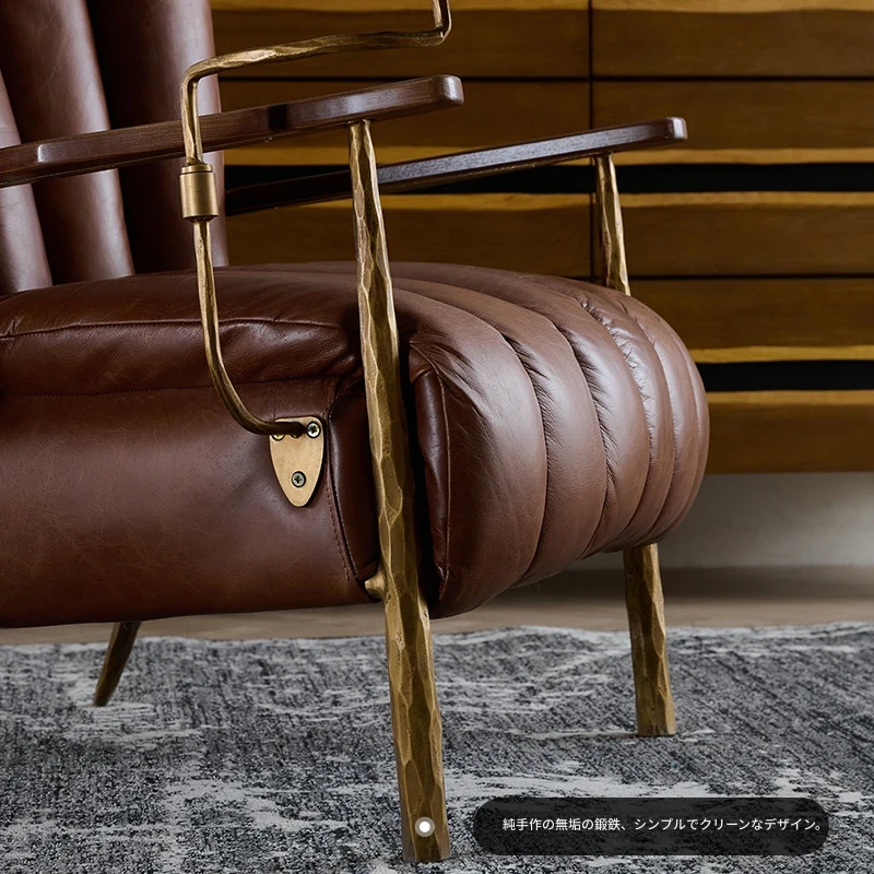 アメリカンヴィンテージデザインのハンドメイド鍛鉄カジュアルチェア|本革一人掛けソファ|シガーバーに最適なシガーチェアで、リラックスしたひとときをお楽しみください!