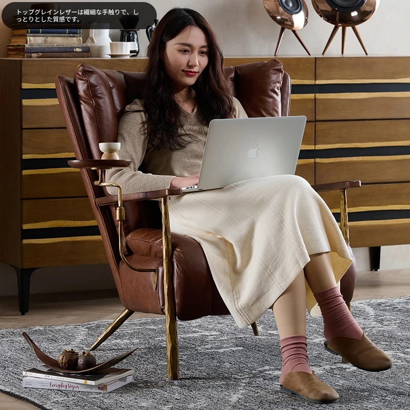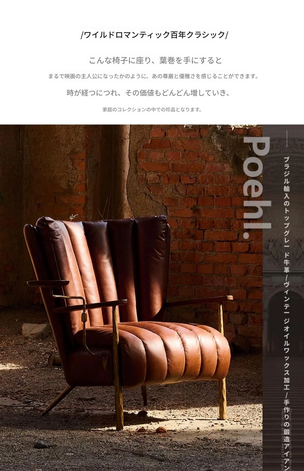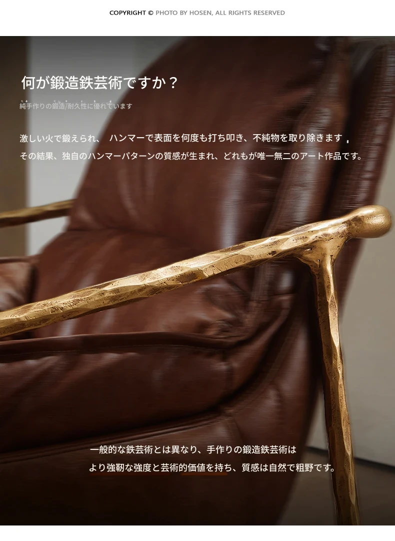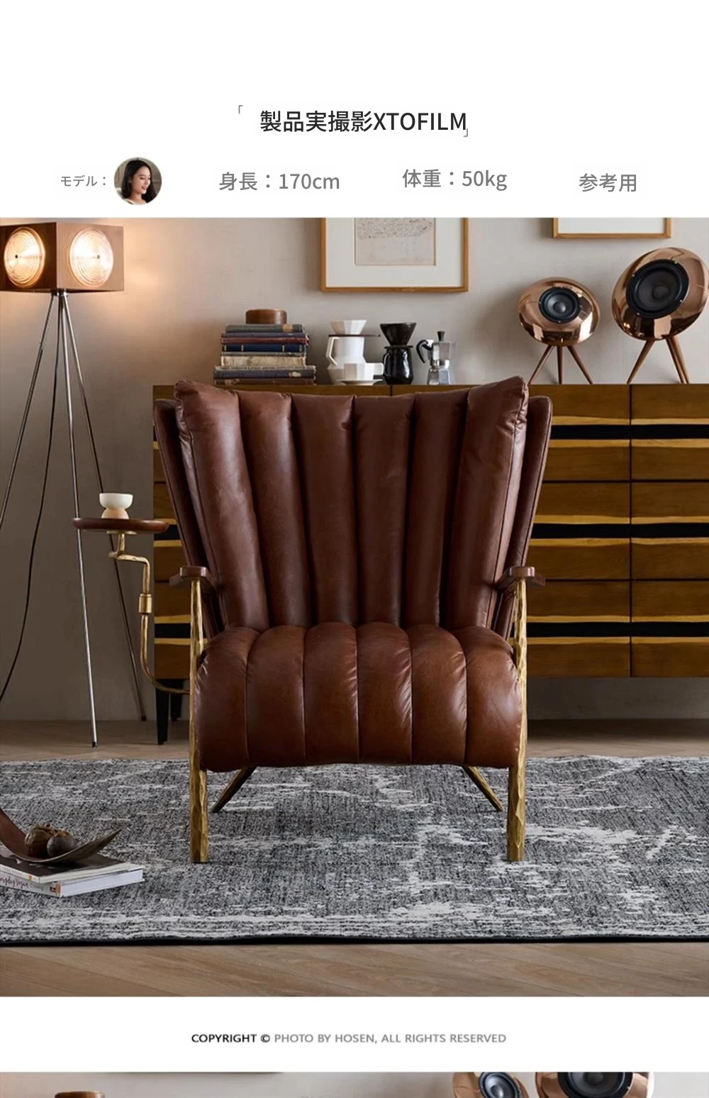 アメリカンヴィンテージデザインのハンドメイド鍛鉄カジュアルチェア|本革一人掛けソファ|シガーバーに最適なシガーチェアで、リラックスしたひとときをお楽しみください!