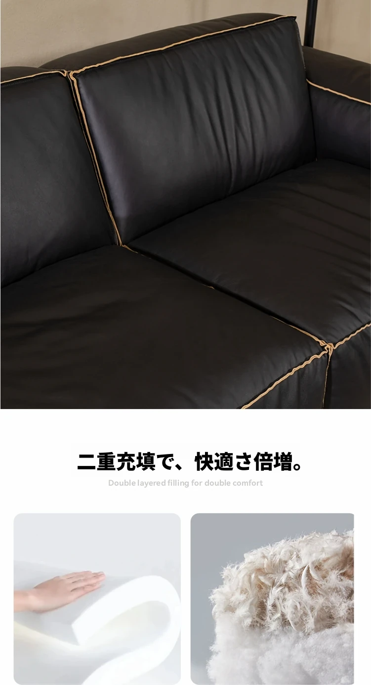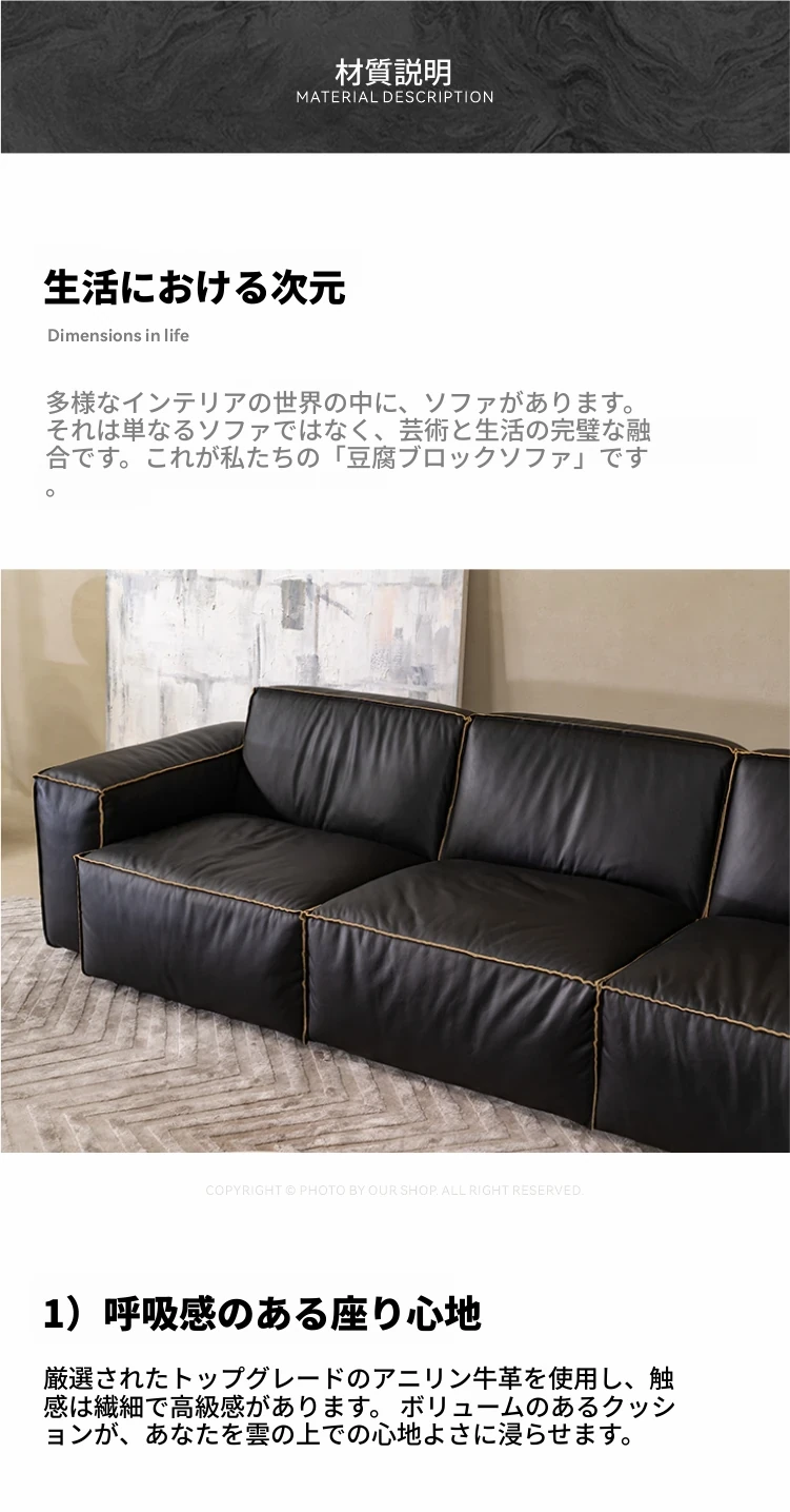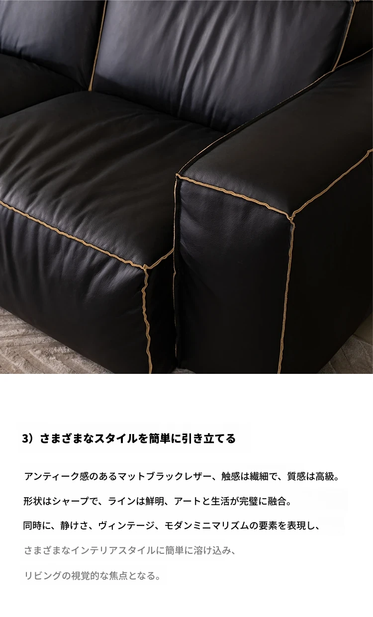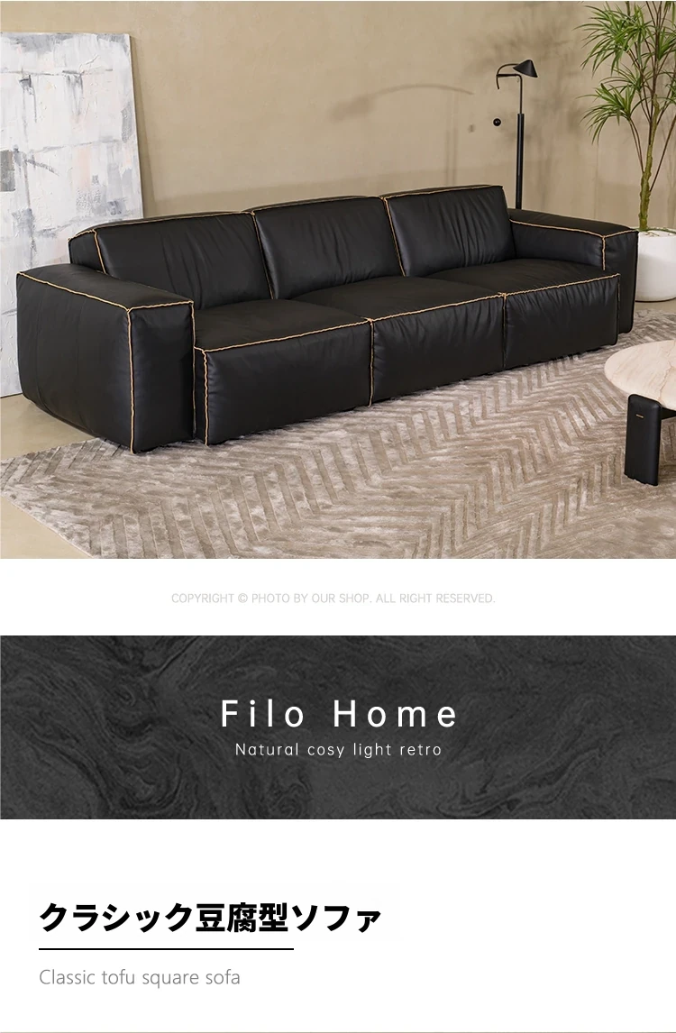 アメリカンレトロ本革ソファ 大黒牛直排クラシックブラック豆腐ブロックソファ 中古風リビング 小型住宅に最適!おしゃれで快適な空間を演出します!