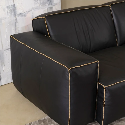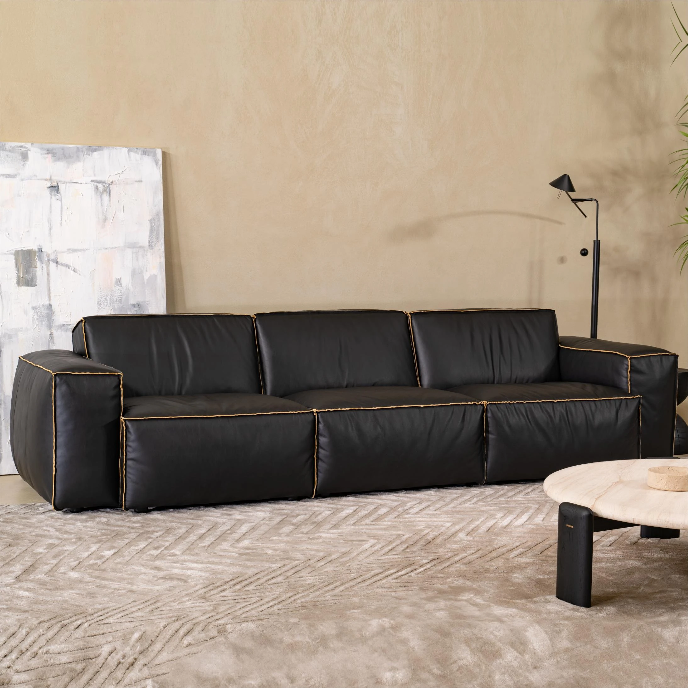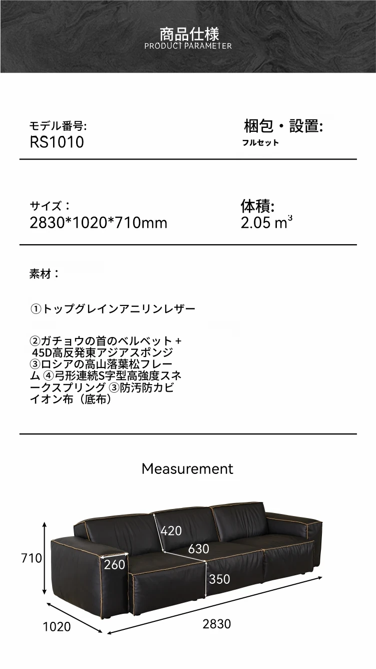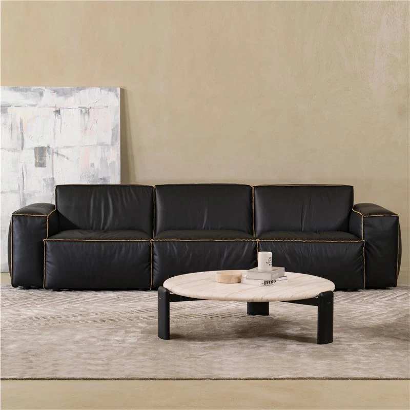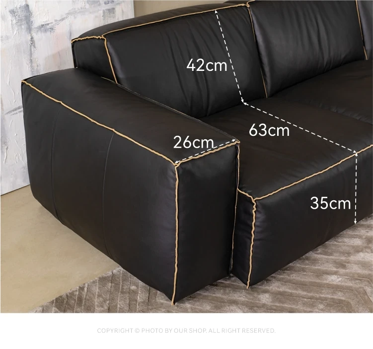アメリカンレトロ本革ソファ 大黒牛直排クラシックブラック豆腐ブロックソファ 中古風リビング 小型住宅に最適!おしゃれで快適な空間を演出します!