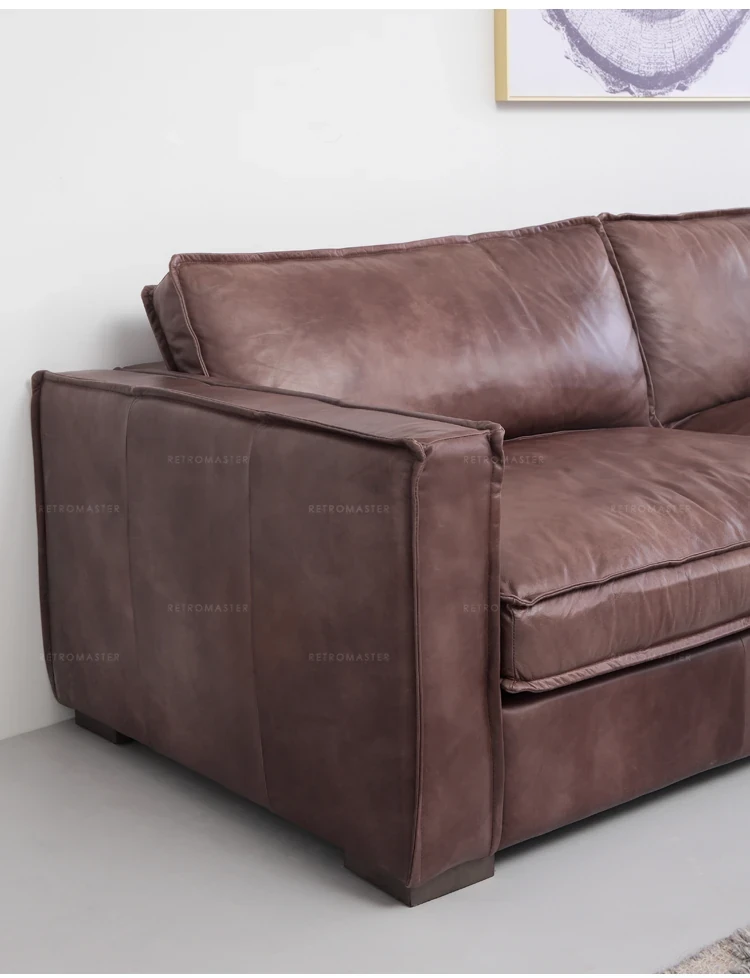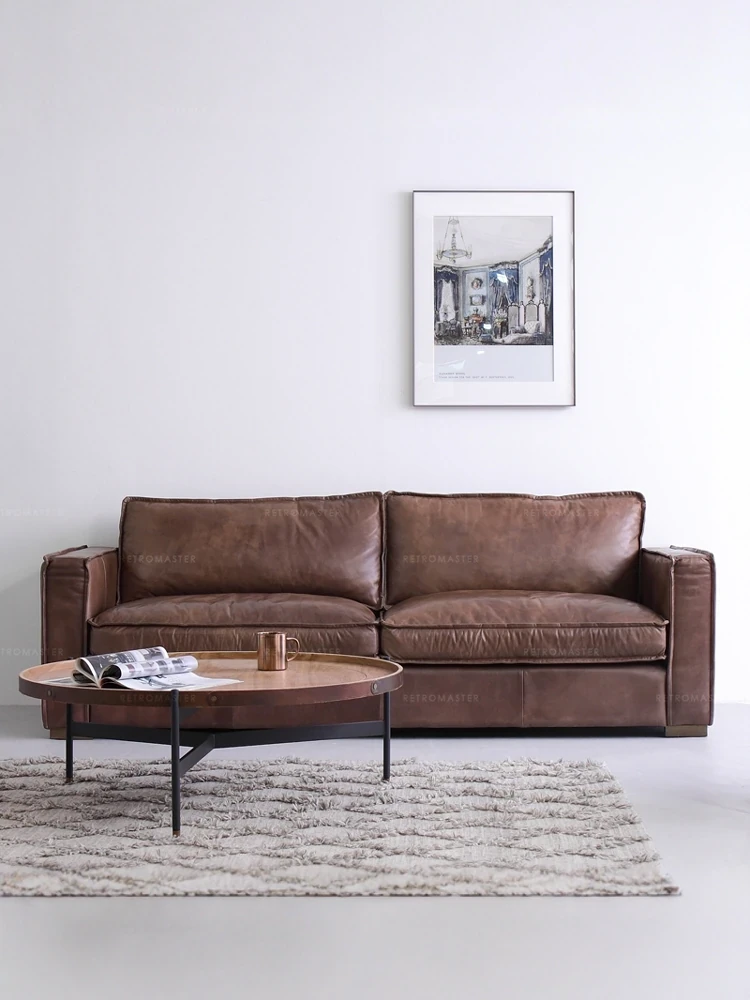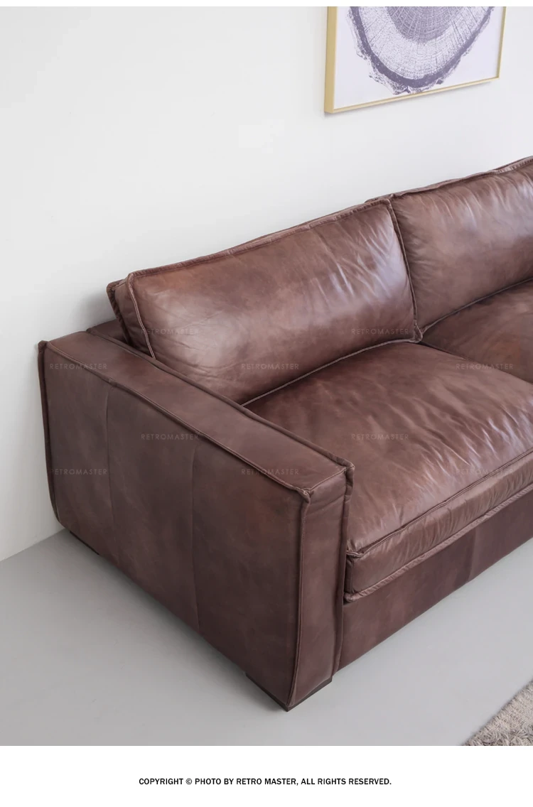 アメリカン&ヨーロピアンレトロデザインの高級本革オイルワックス仕上げ!スタイリッシュなブラックレザーソファ3人掛けコンビネーションで、あなたのリビングに洗練された雰囲気を演出します。