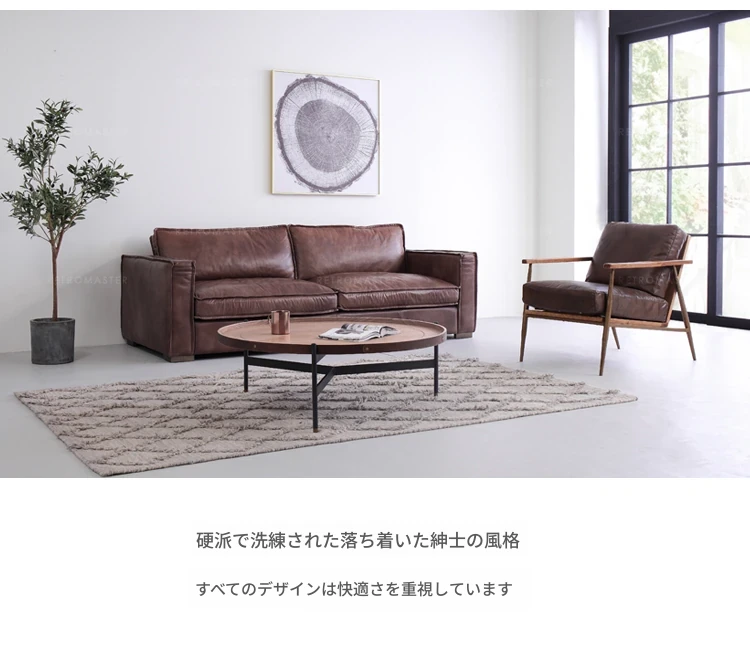 3人掛け 2.22m/R級 オイルワックス本革/全本革