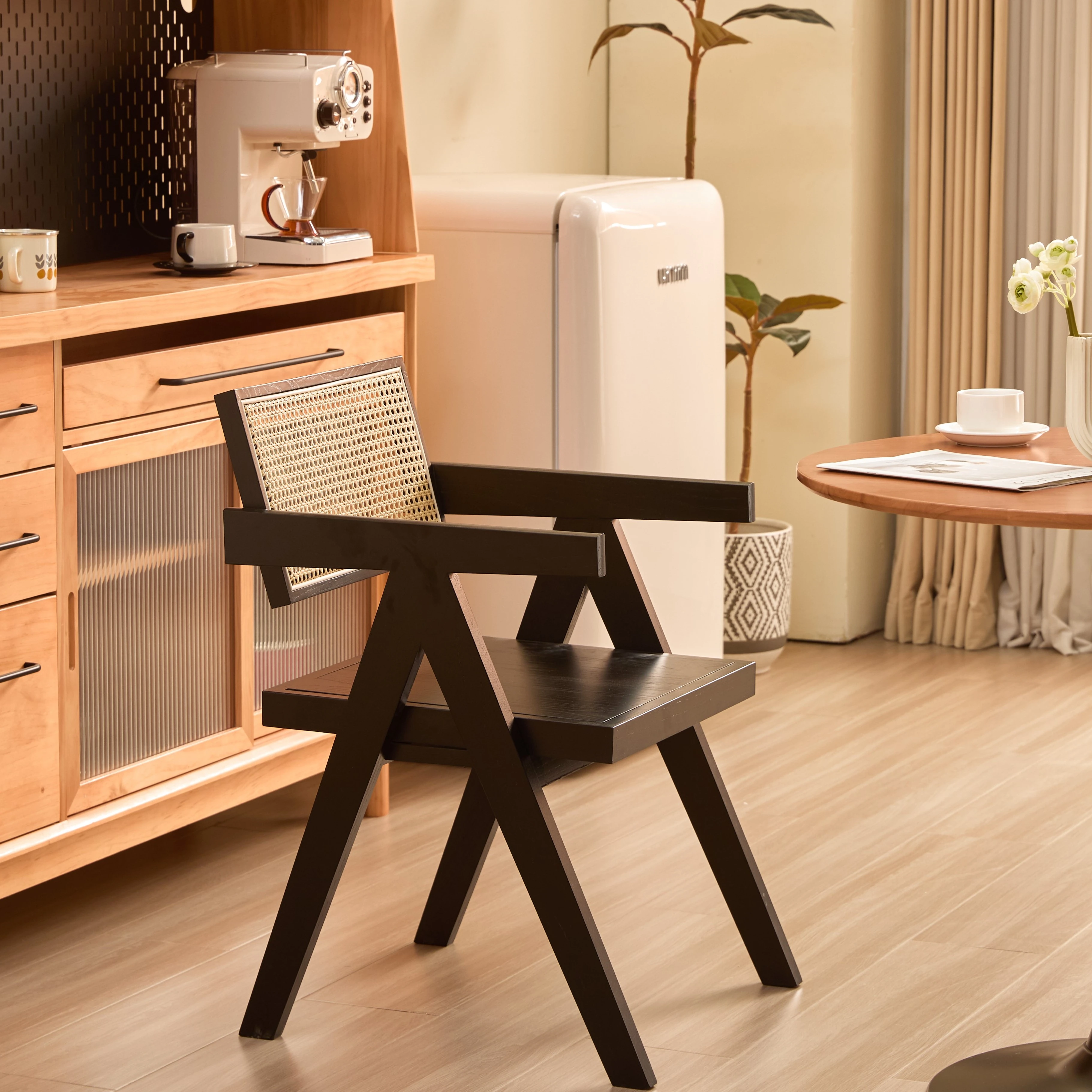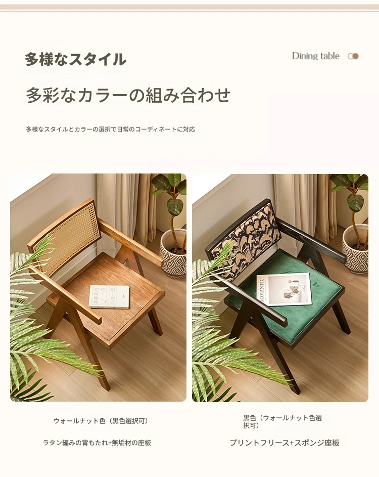 ホワイトアッシュ【黒色+ラタン+無垢材】
