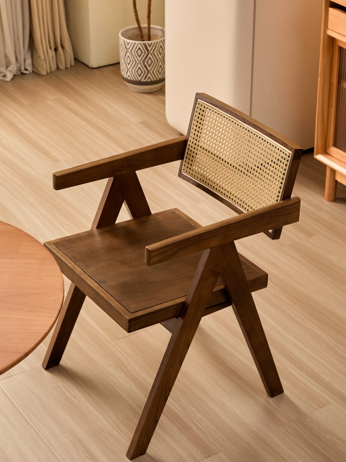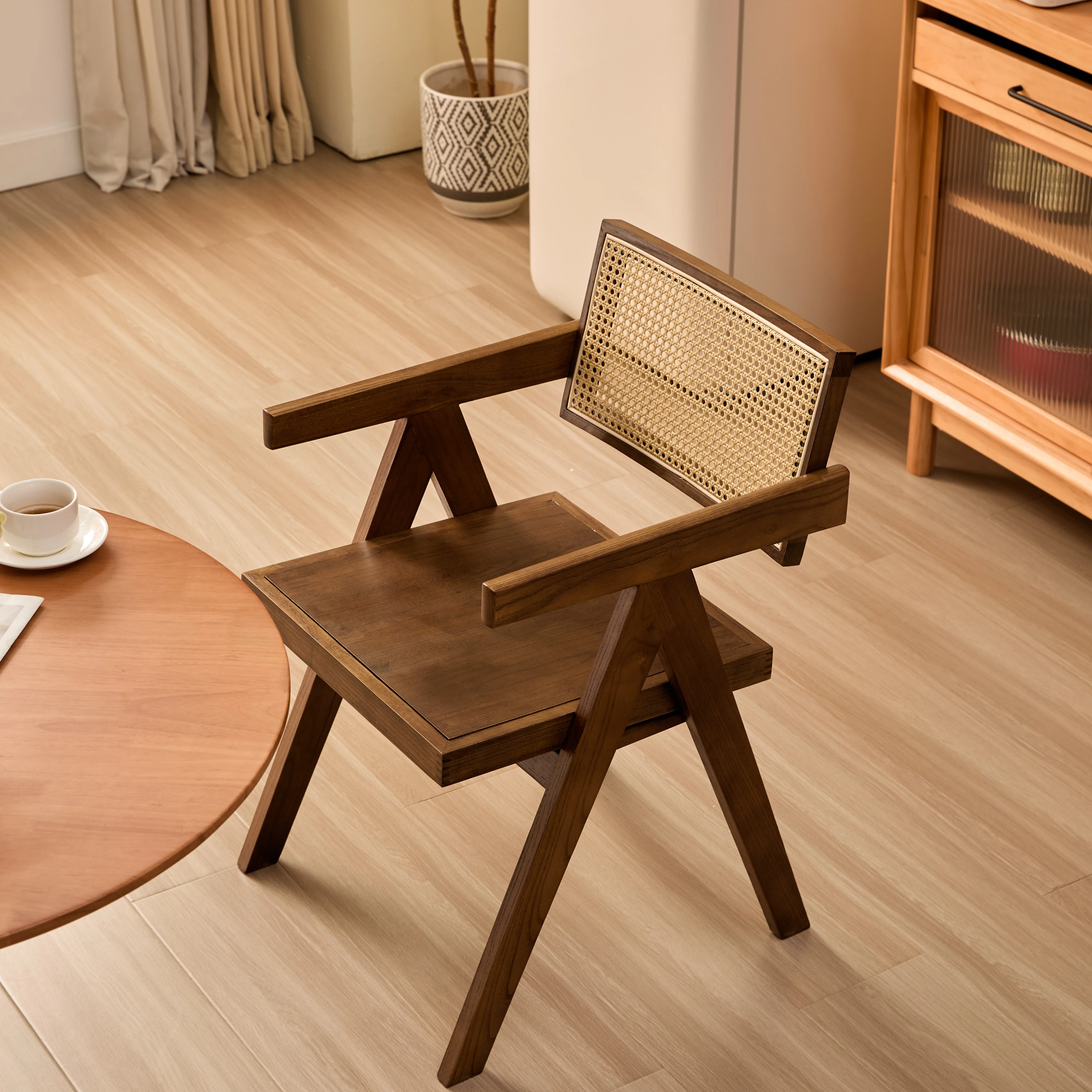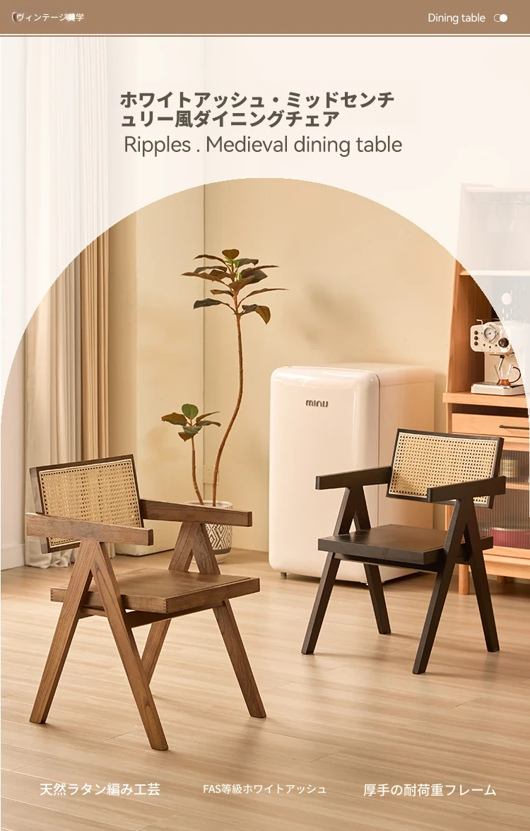 チャンディーガルのホワイトアッシュ製、北欧風アンティークフレンチデザインのリラックス民宿用人気ラタン編み椅子。家庭用ダイニングチェアとしても最適、スタイリッシュで快適な空間を演出します!