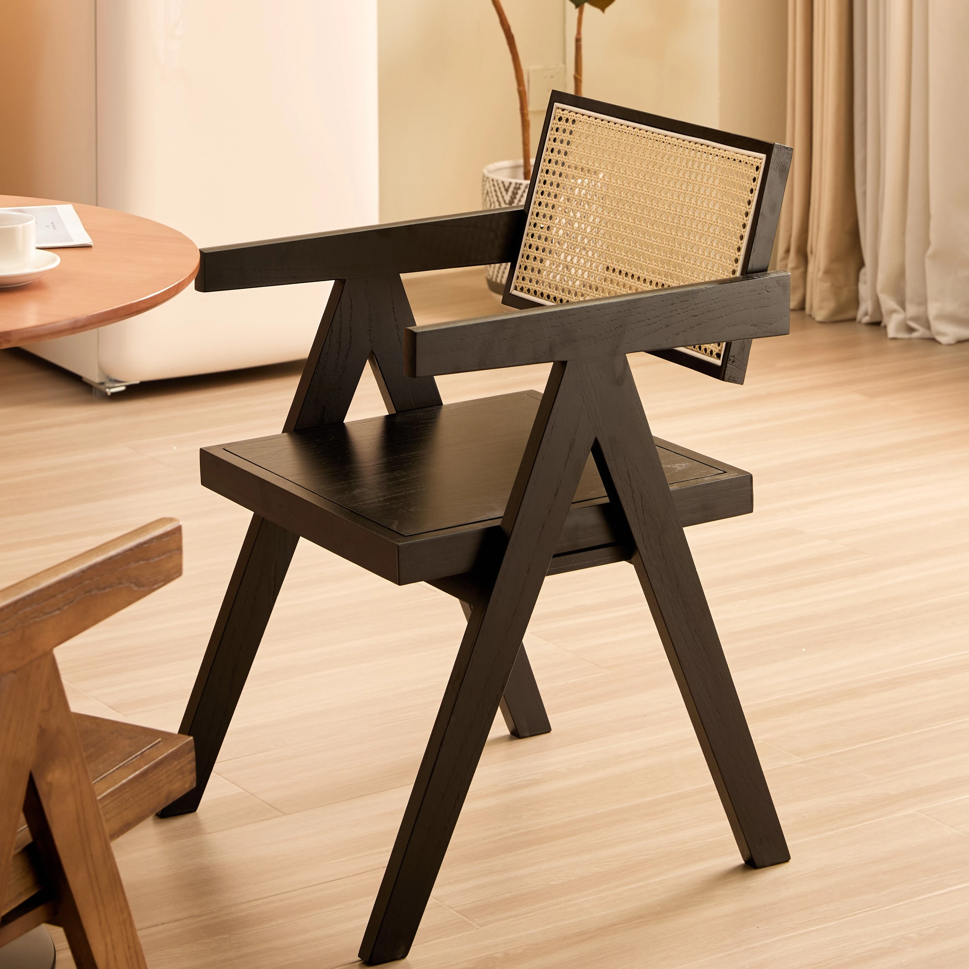 ゴムの木【黒色+ラタン+無垢材】