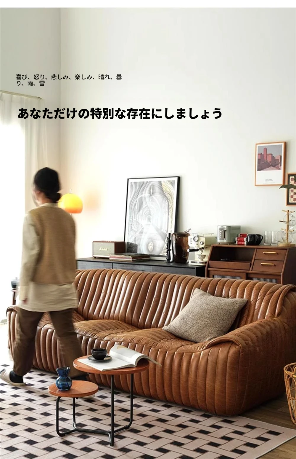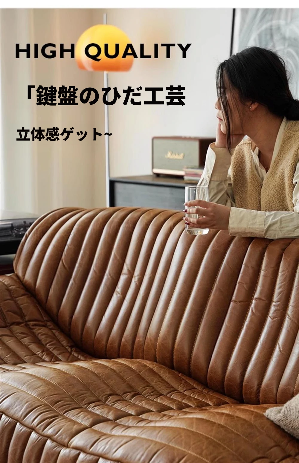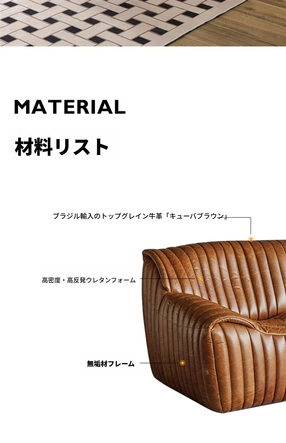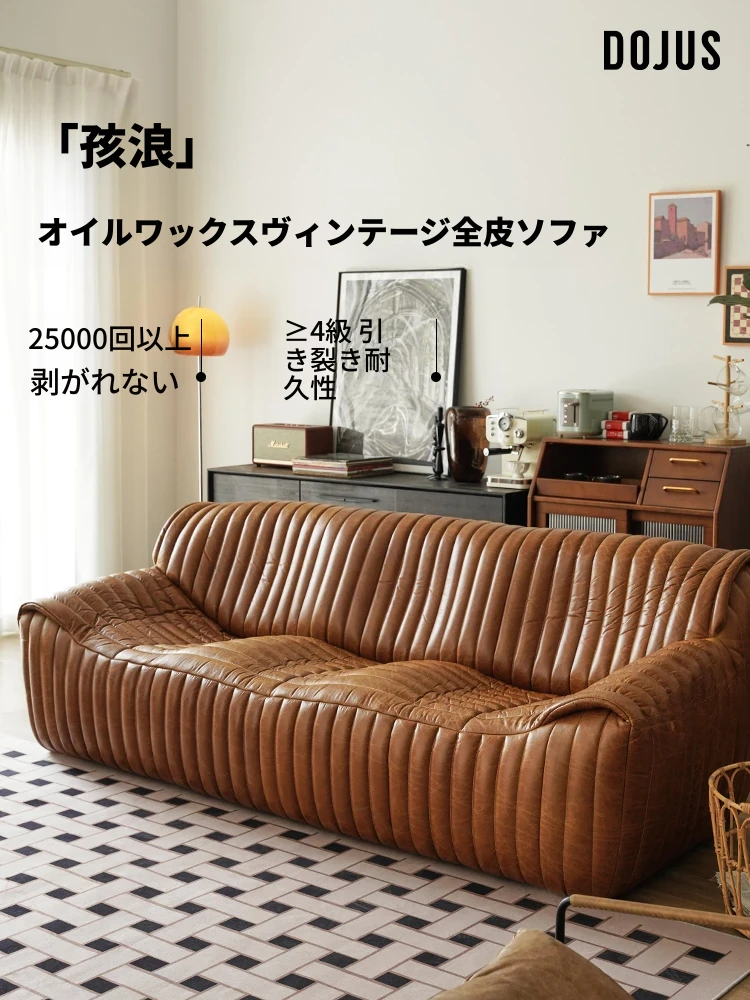 アメリカンクラシックスタイルのレザー3人掛けヴィンテージソファー - 古風なシガールームにぴったりなオイルワックスレザー使用、別荘やリビングルームに最適な高級家具です。