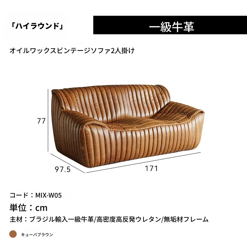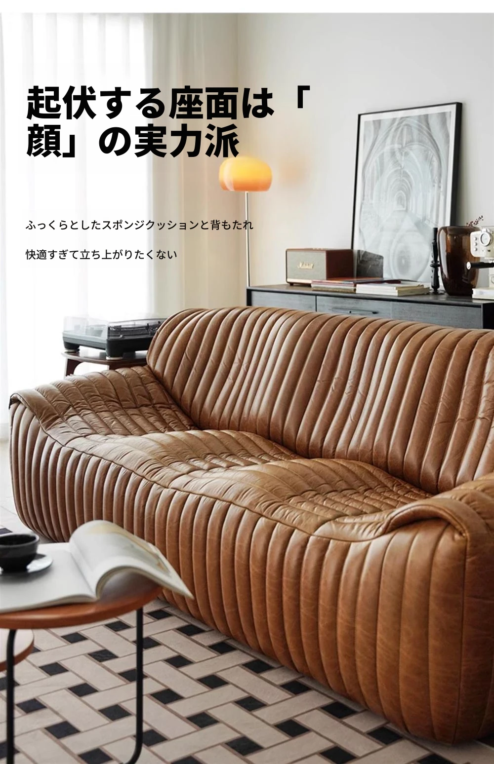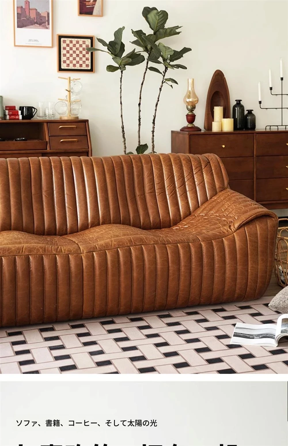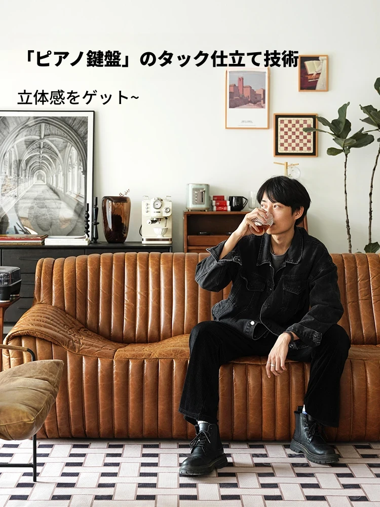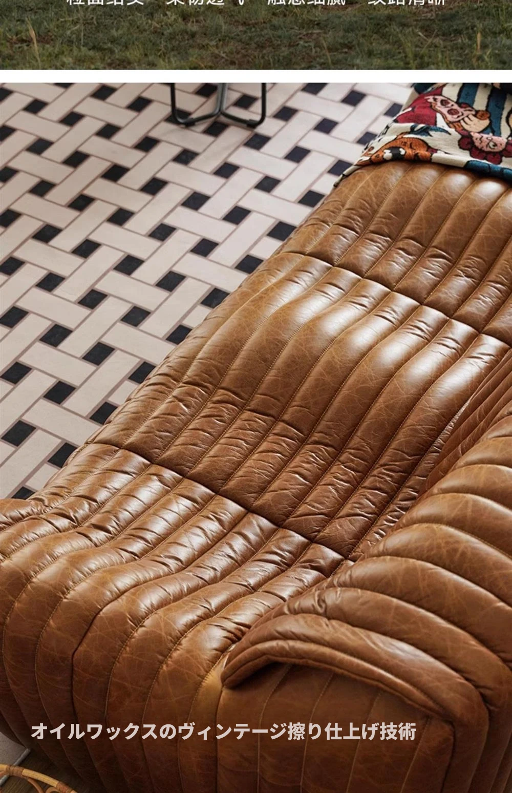 アメリカンクラシックスタイルのレザー3人掛けヴィンテージソファー - 古風なシガールームにぴったりなオイルワックスレザー使用、別荘やリビングルームに最適な高級家具です。