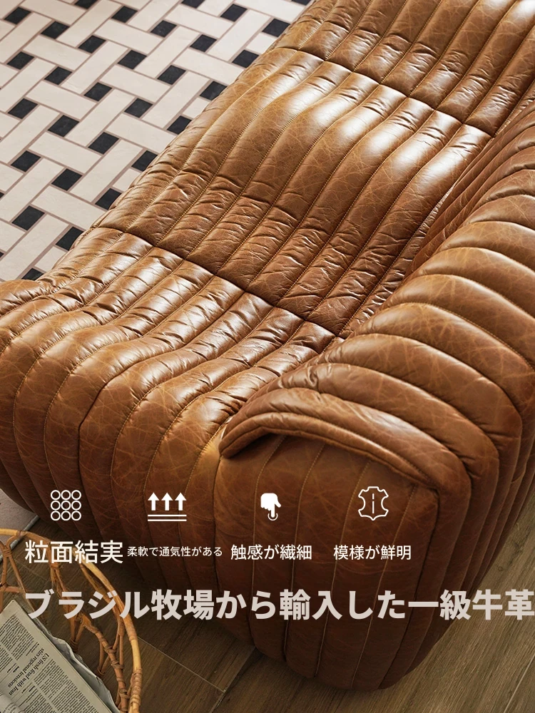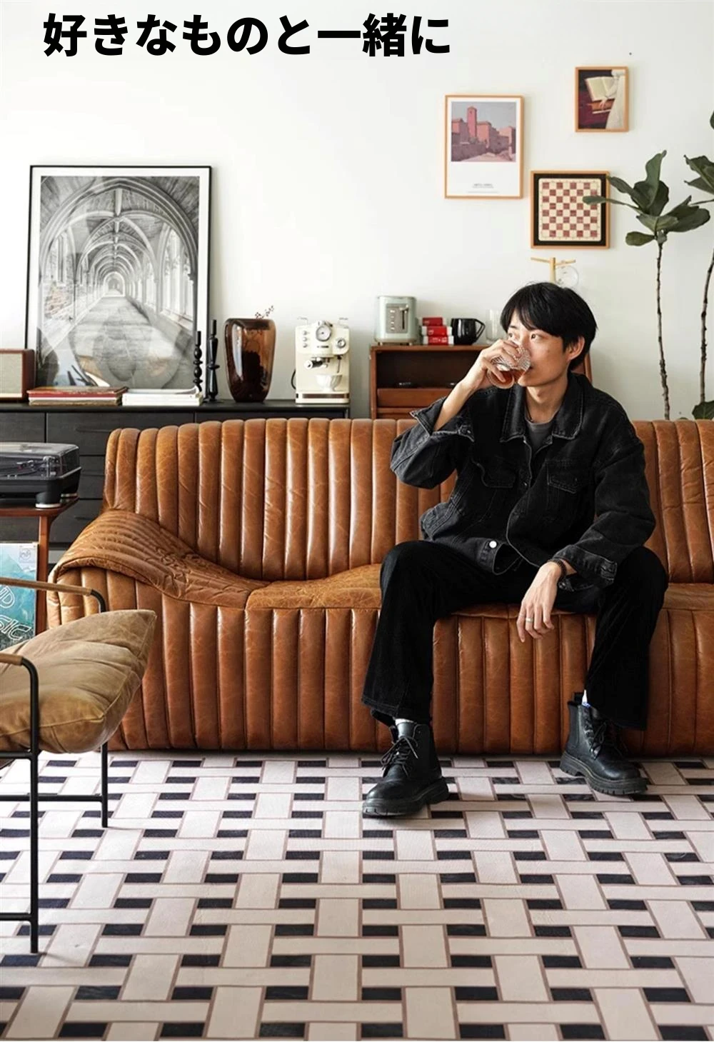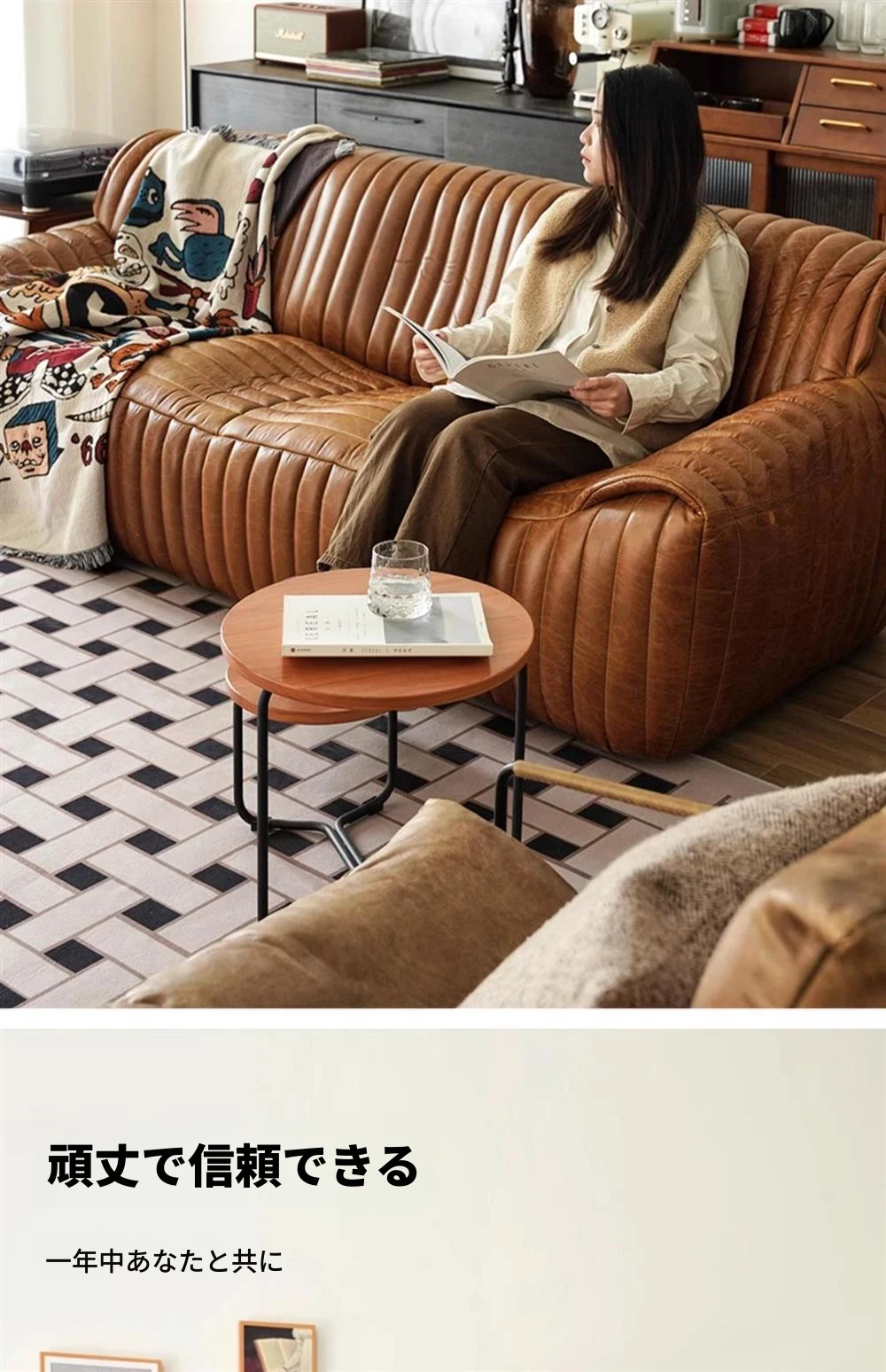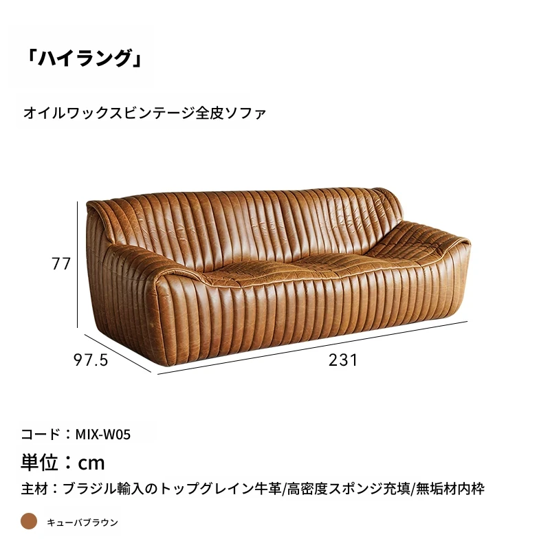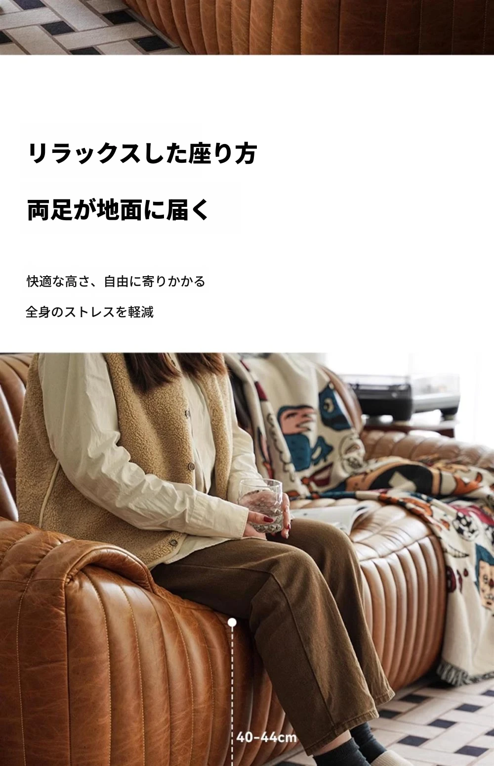 アメリカンクラシックスタイルのレザー3人掛けヴィンテージソファー - 古風なシガールームにぴったりなオイルワックスレザー使用、別荘やリビングルームに最適な高級家具です。