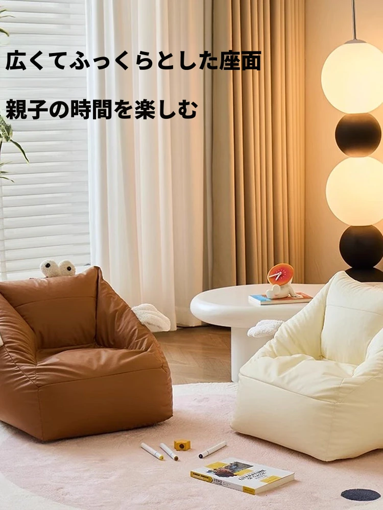 地上用の快適な小型ソファ|バルコニーやリビングに最適なリラックス豆袋ソファ。背もたれ付きで、寝転んでも楽々!一人用の休息スペースにぴったり、畳の上でも使える!