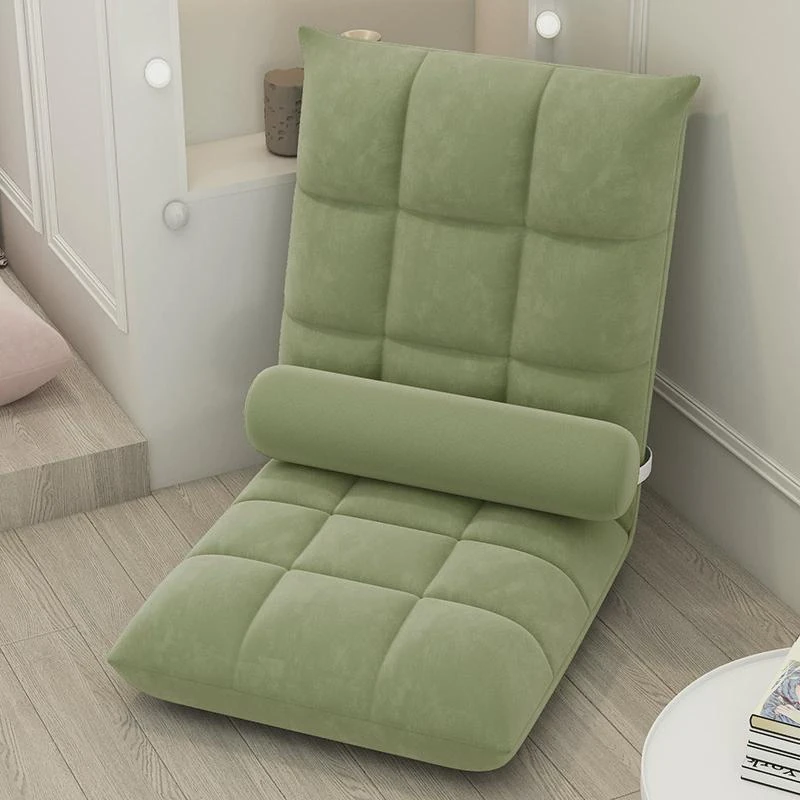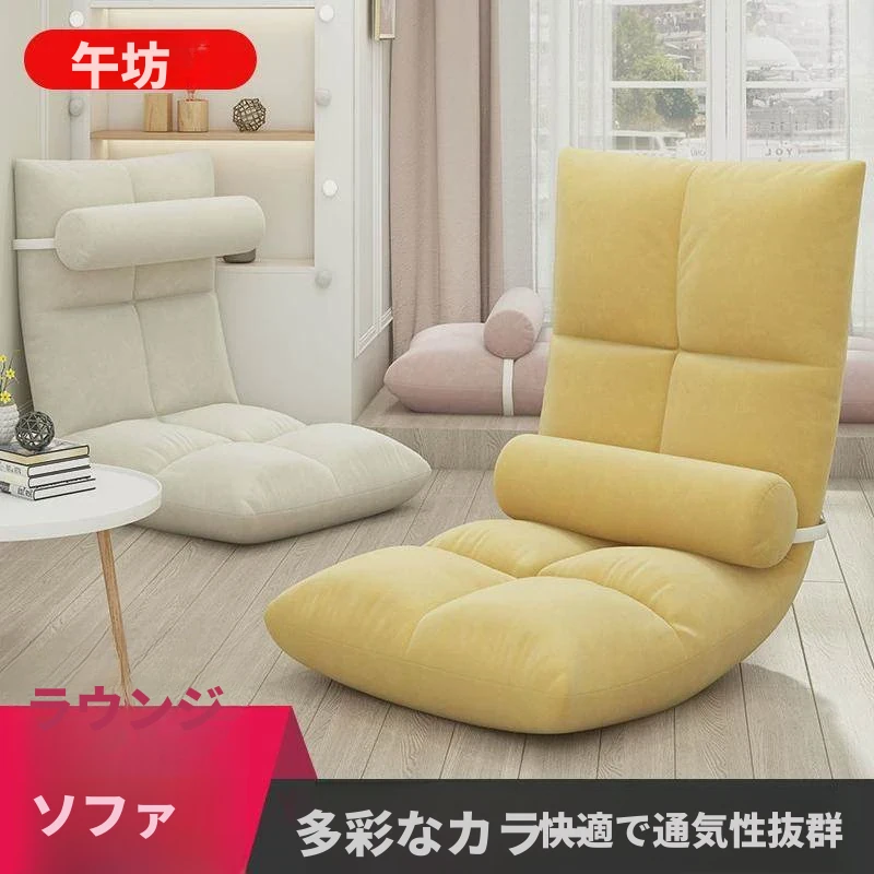 学生寮や寝室に最適!折りたたみ式のラウンジソファ、クッション付きで快適にリラックス。デスクワークにも最適な脚なしデザインで、省スペースも実現!
