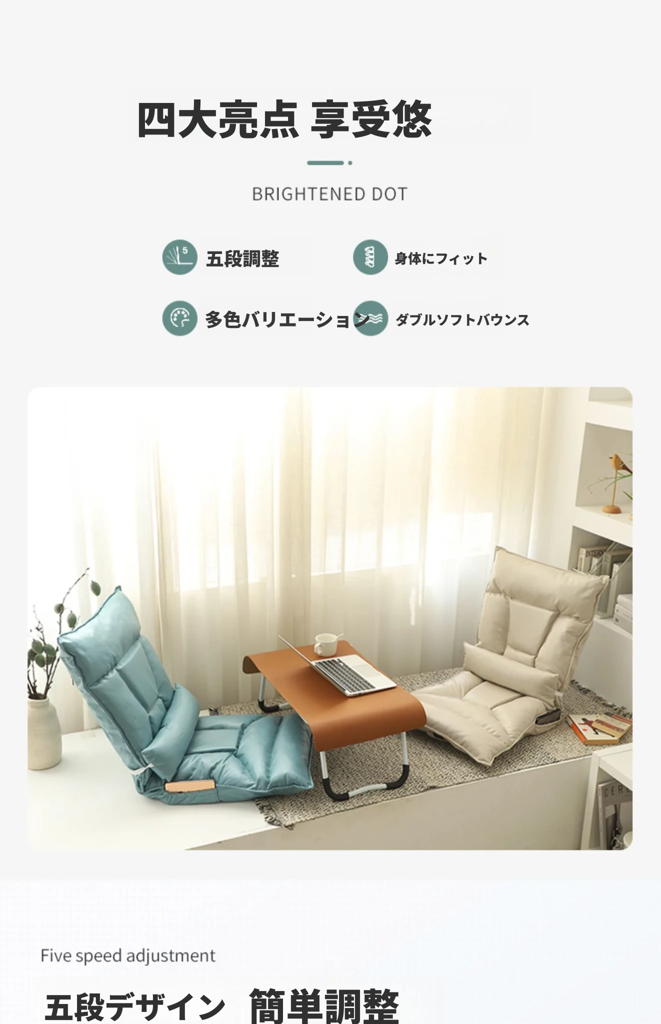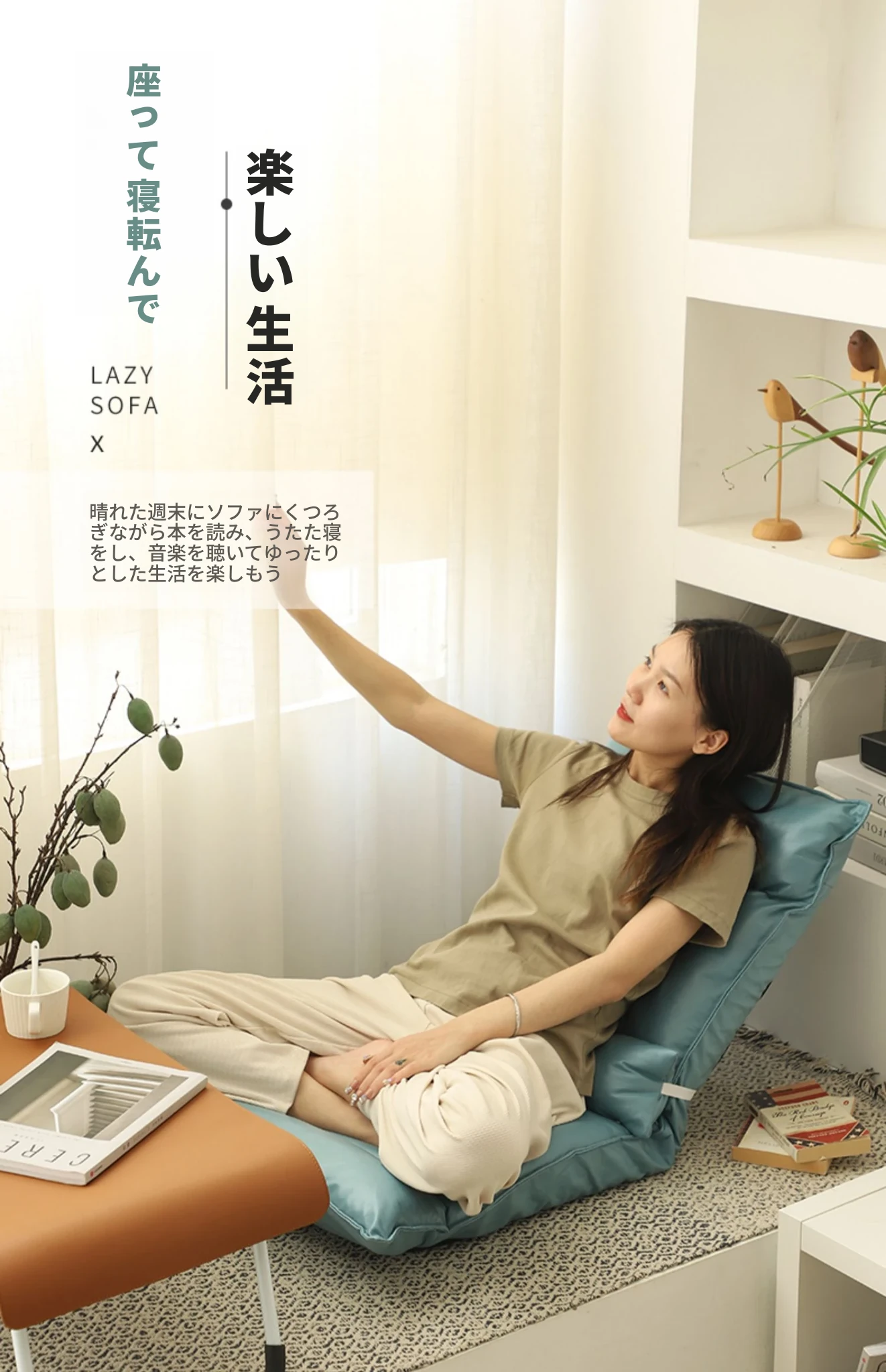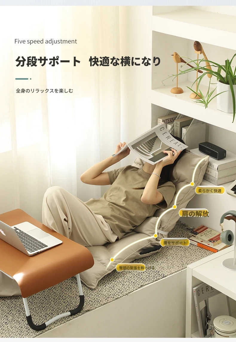 楽にくつろげる!折りたたみ式ラウンジソファ、タタミスタイルのバックレストチェア。寮や寝室、バルコニー、窓際にぴったりの地面用マット。快適さとスタイルを兼ね備えた小さなソファで、リラックスタイムを楽しもう!