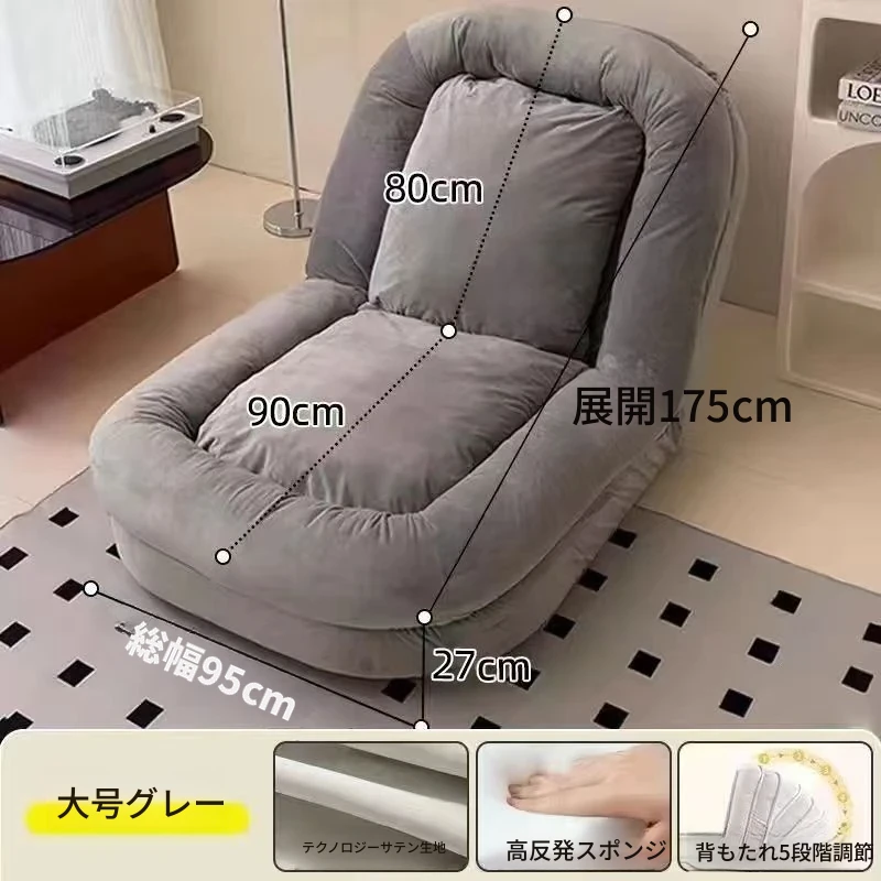 グレーのビッグサイズ179cm【アップグレード厚手クッション2個付き】【超快適テクノロジー布】防汚・取り外し可能