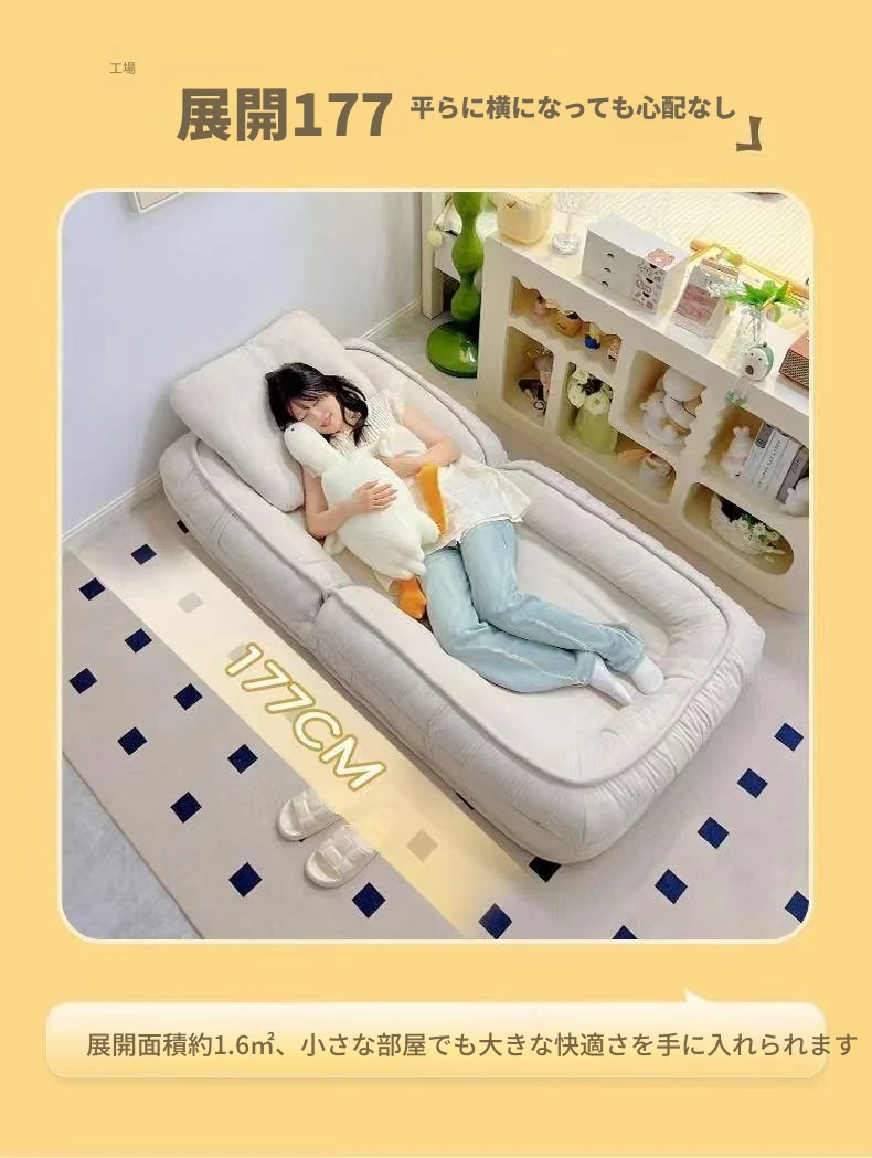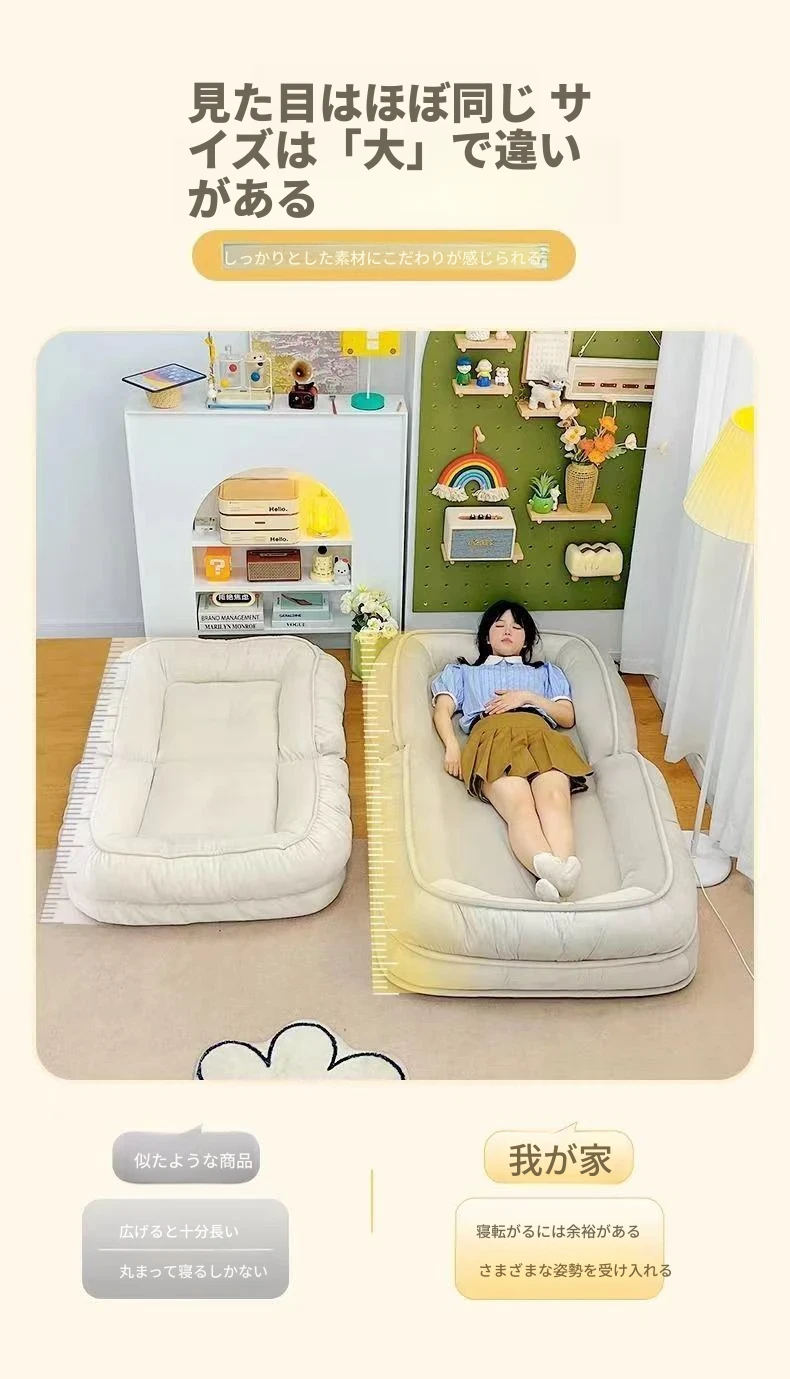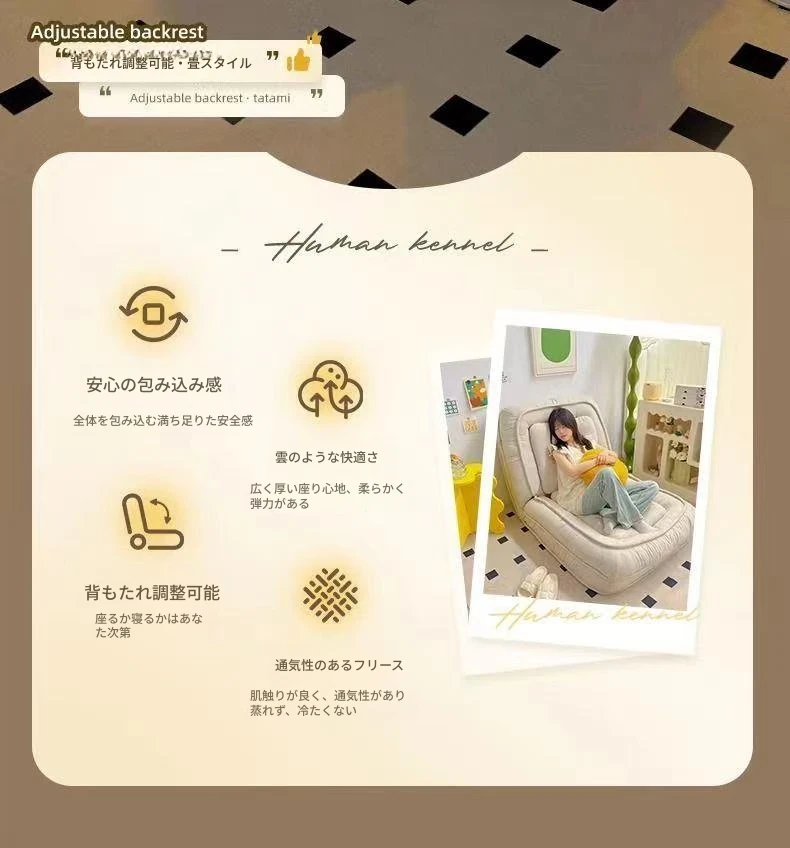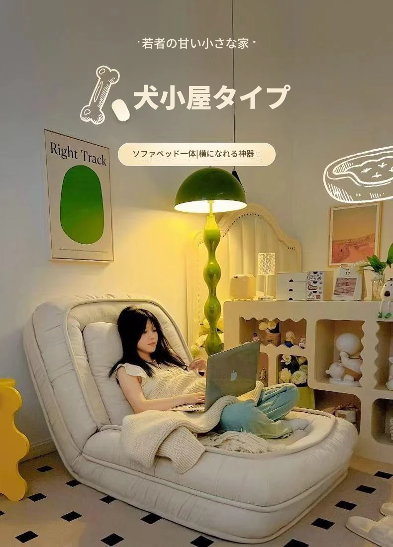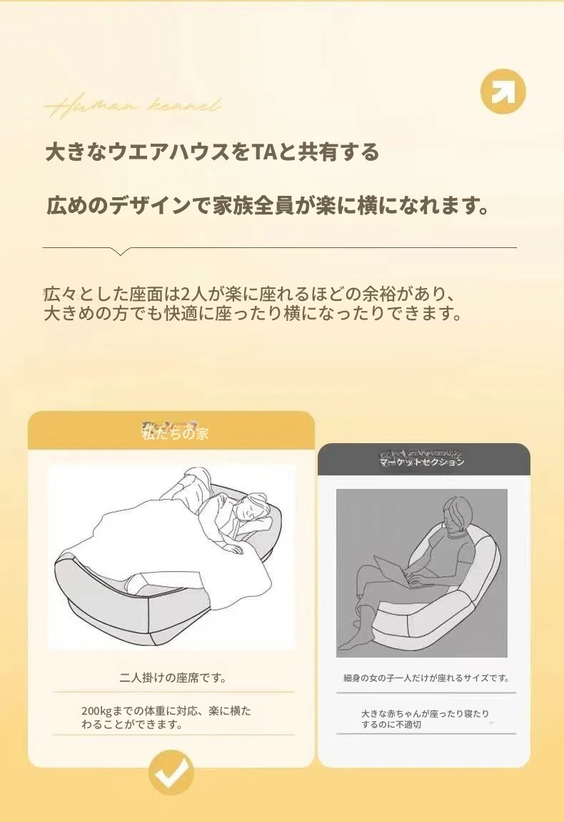 人間用の犬用ハウス、折りたたみ可能なリラックスソファ!寝ることもできる、快適な二人用・一人用ソファベッド。寝室やリビングに最適なタタミスタイルのソファ。あなたのリラックスタイムを贅沢に!