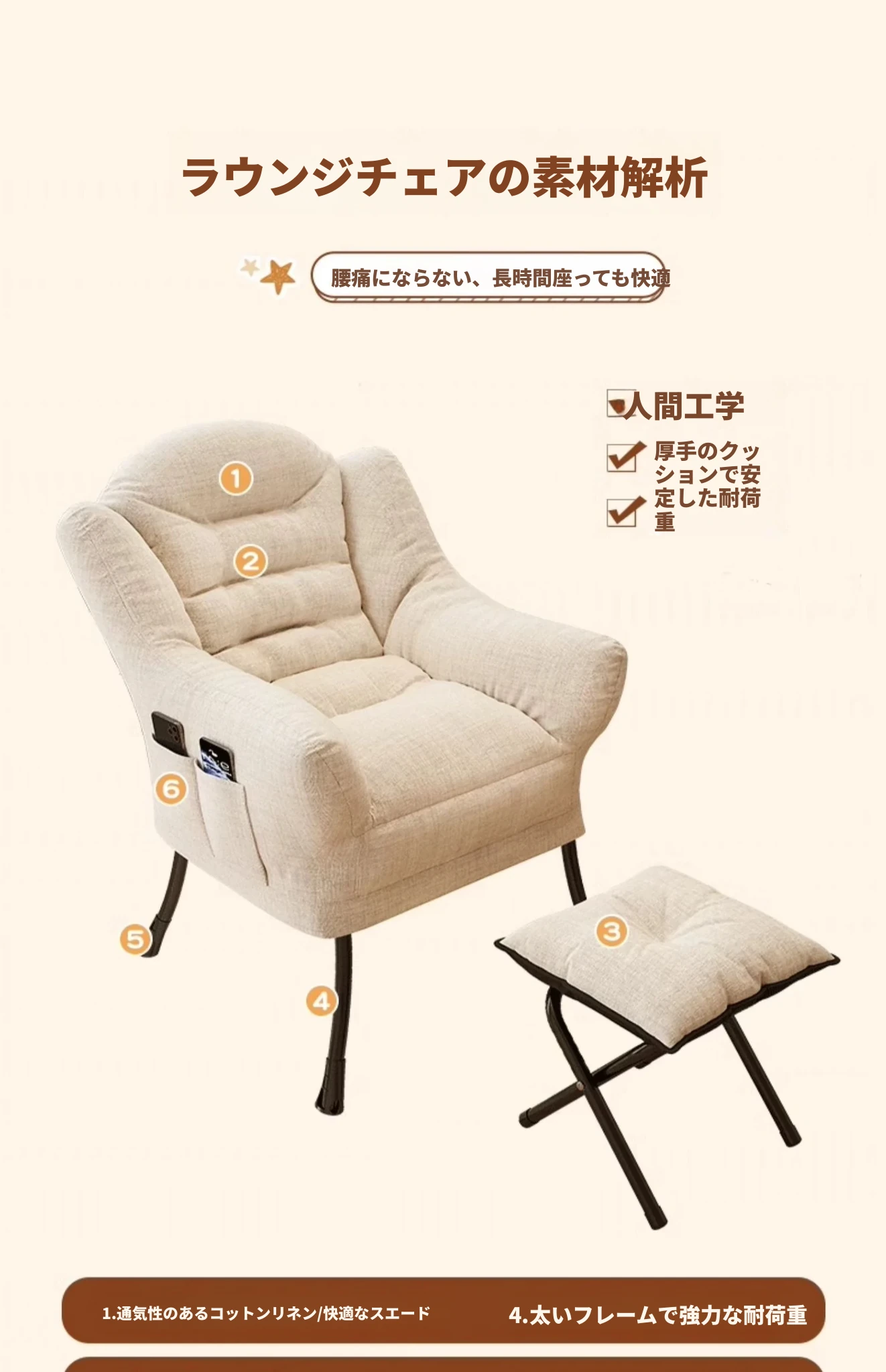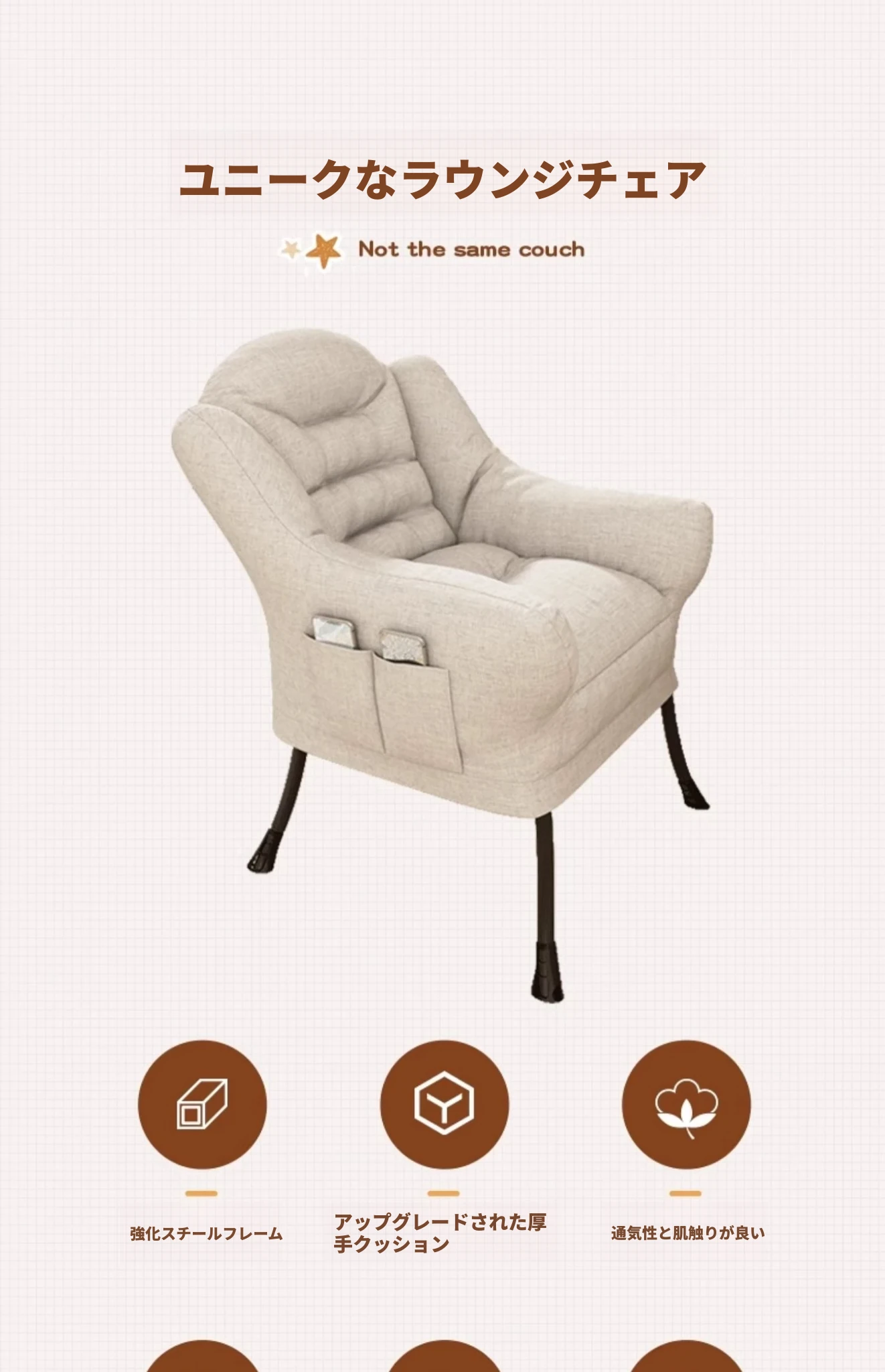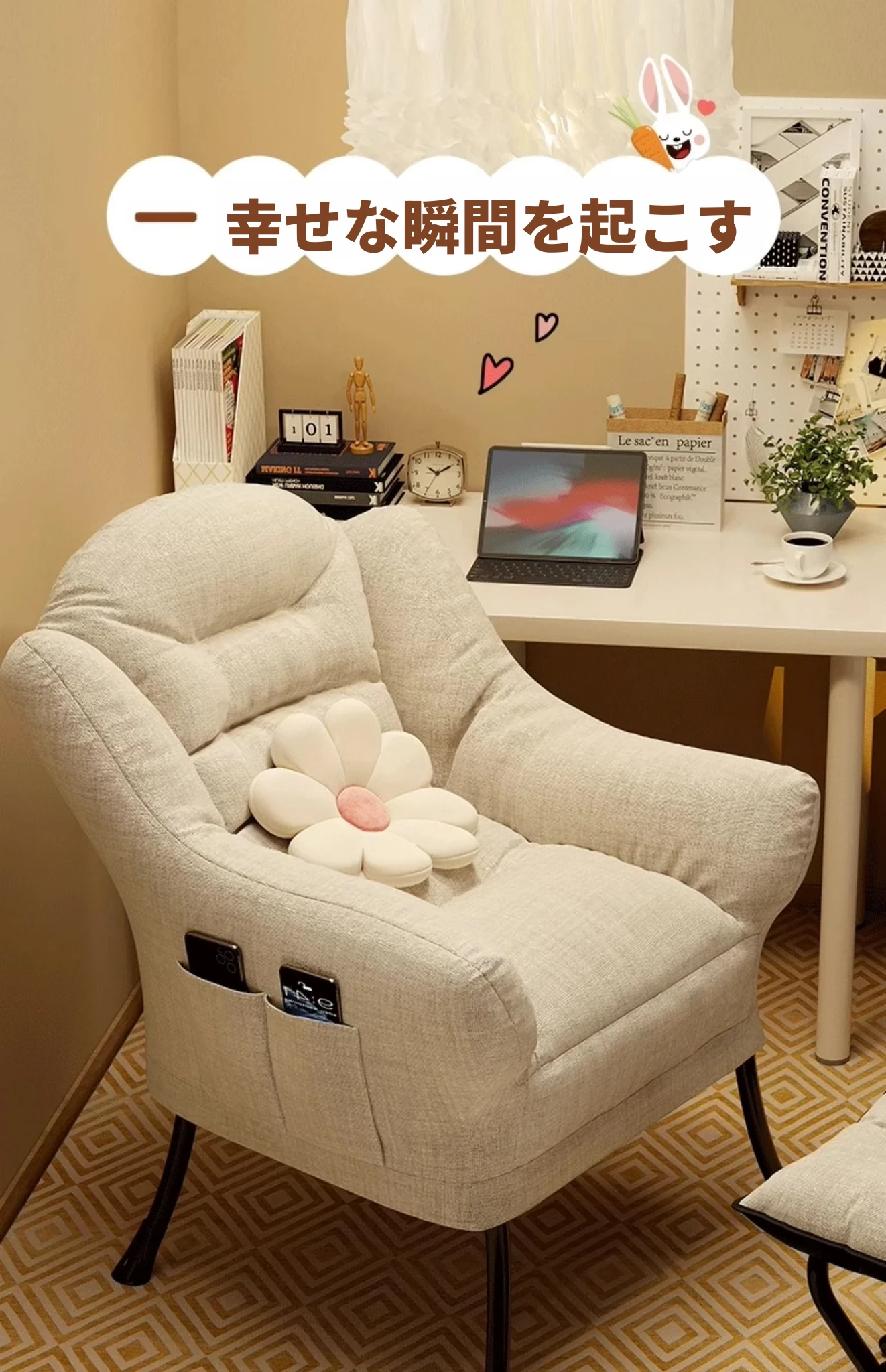 リラックス一人掛けソファ|大学生向け快適デザイン|コンピューターチェアとしても最適|バルコニーや寝室でくつろげる柔らかい背もたれ|まったりとした時間をお楽しみください!