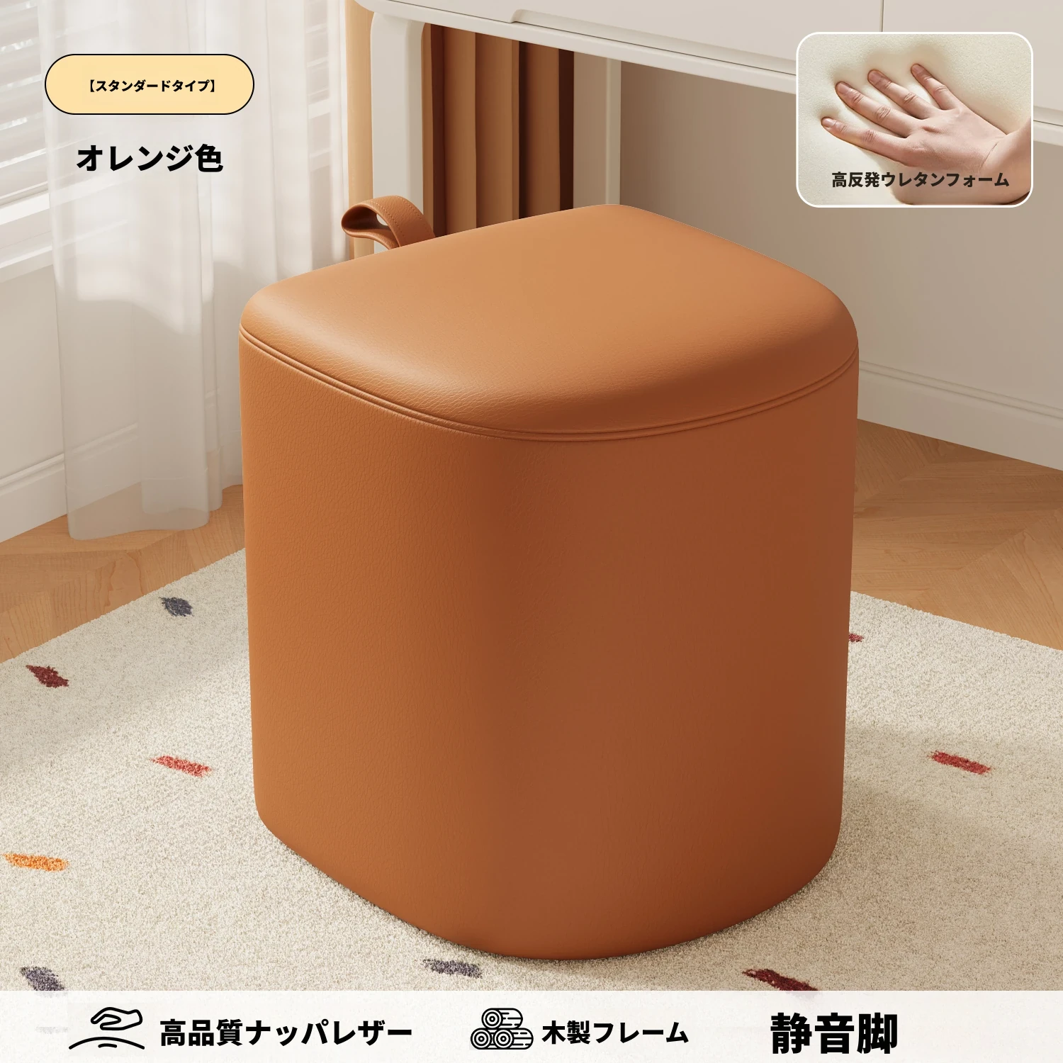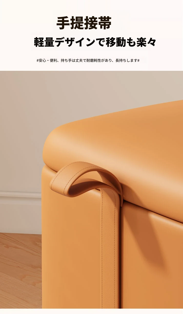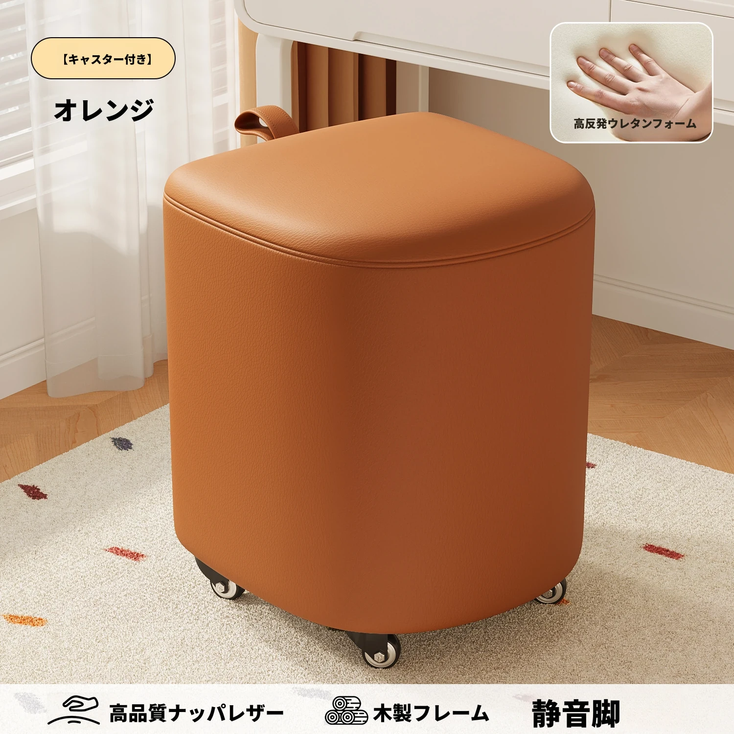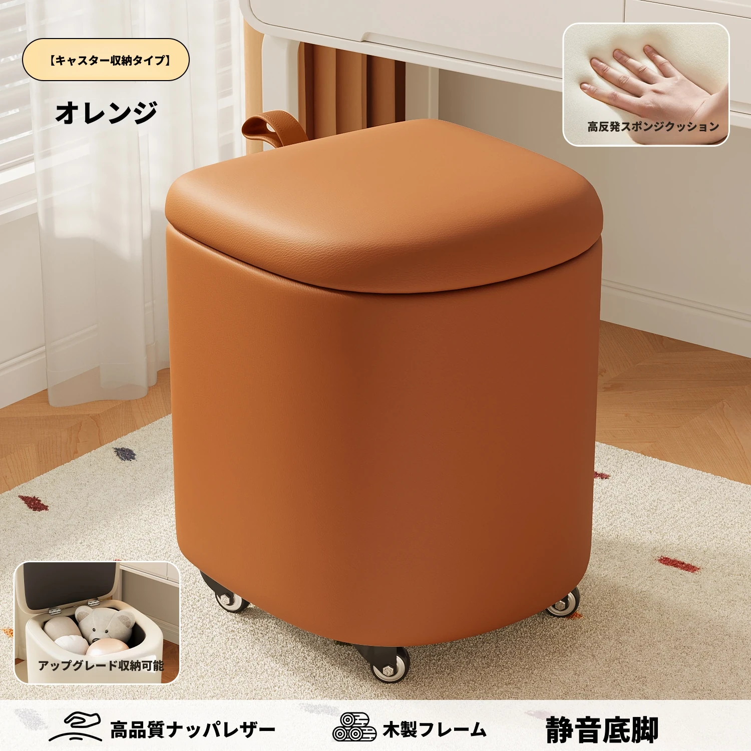 キャスター収納タイプ⭐オレンジレッド【高弾力スポンジマット】高品質ナッパレザー-360°回転