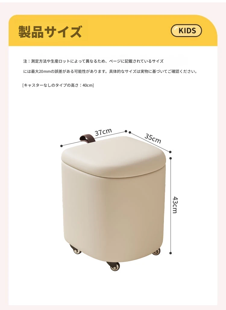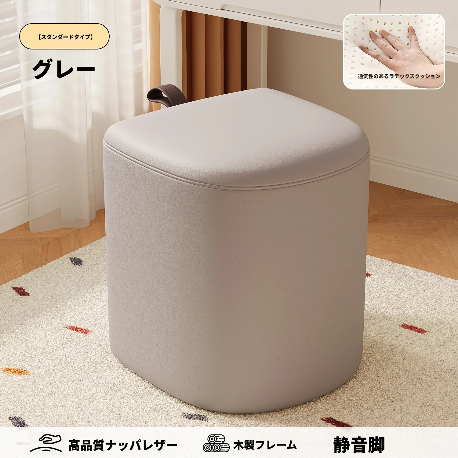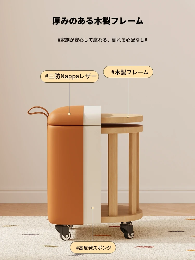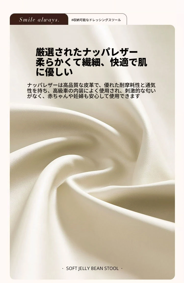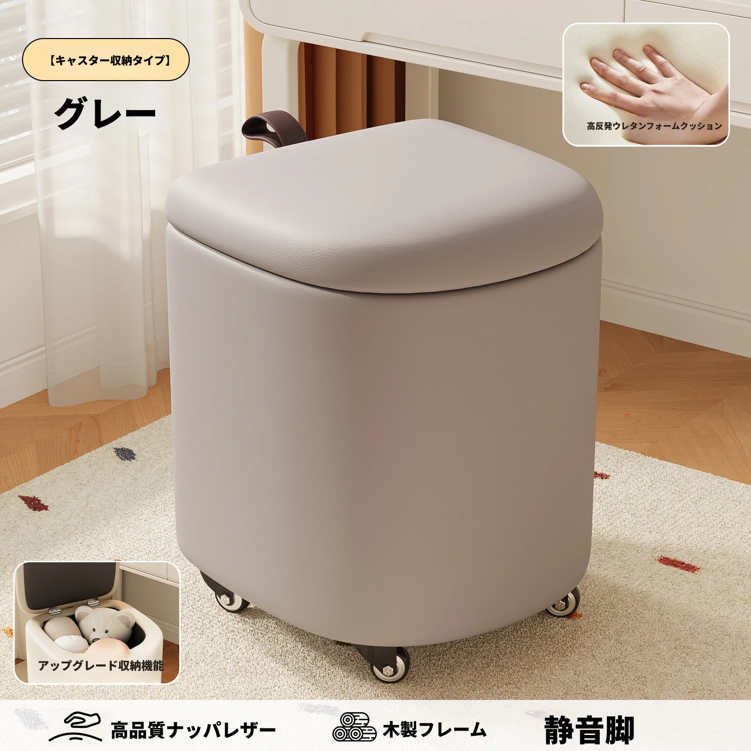 キャスター収納タイプ⭐アイボリー【高弾力スポンジマット】高品質ナッパレザー-360°回転