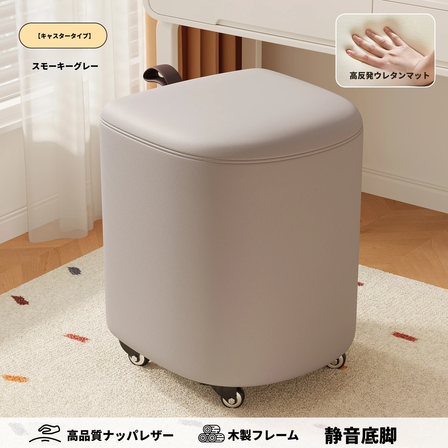 キャスター収納タイプ⭐スモーキーグレー【高弾力スポンジマット】高品質ナッパレザー-360°回転