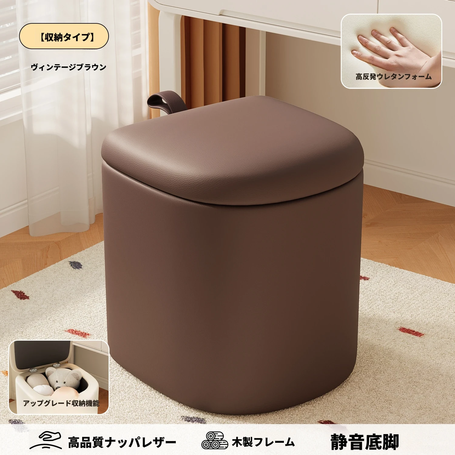 アップグレード収納タイプ⭐レトロブラウン【高弾力スポンジマット】高品質ナッパレザー