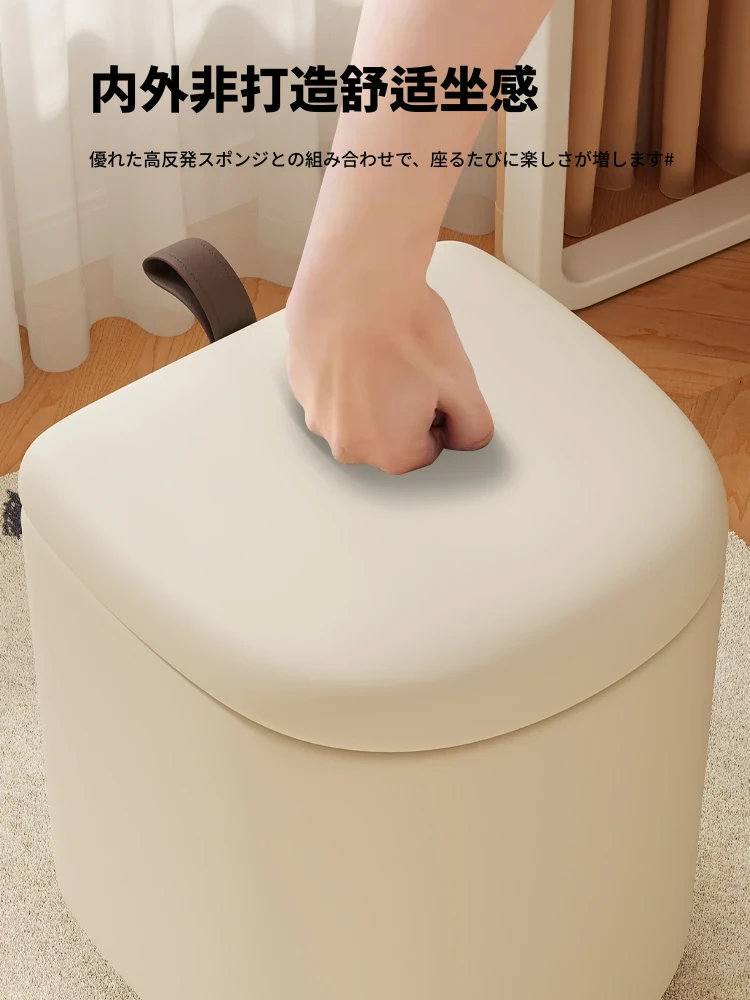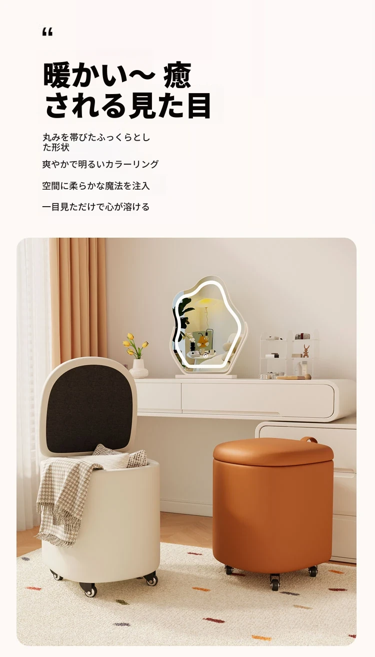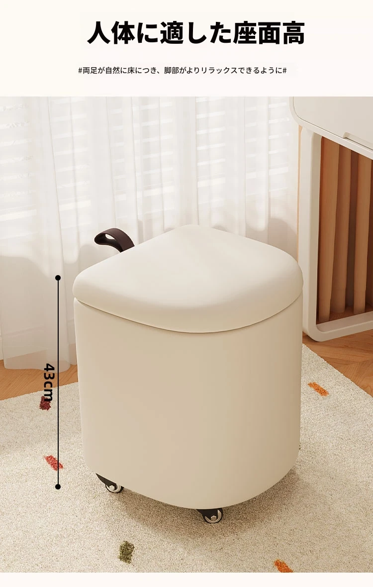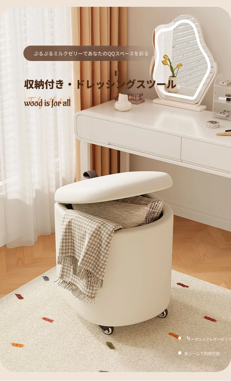クリーム風化粧台椅子 - 女子向けの寝室にぴったり!収納機能付きで、軽やかで高級感溢れるデザイン。ネイルアートにも最適なスタイリッシュなスクエアスツール。あなたの特別な空間を演出します!