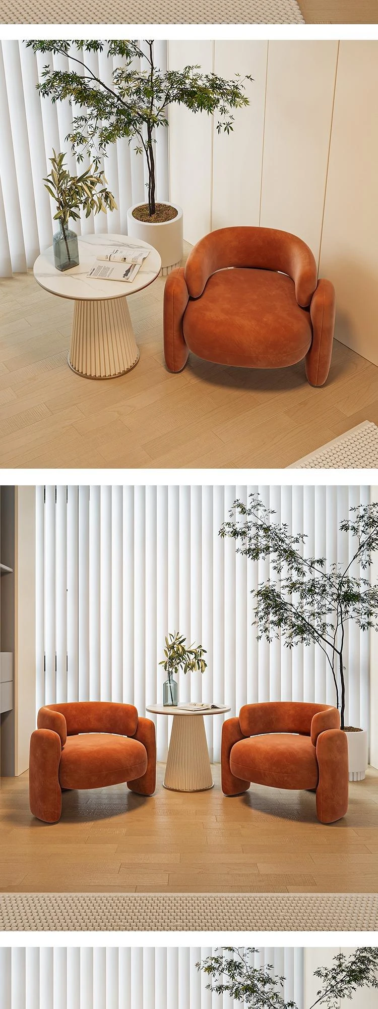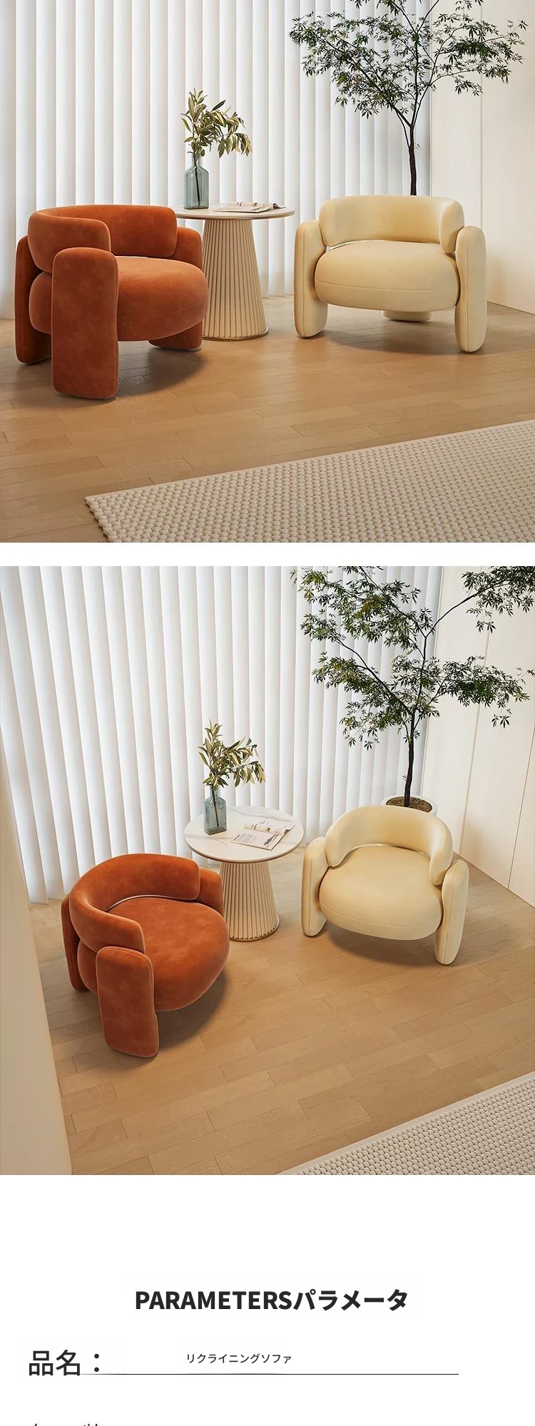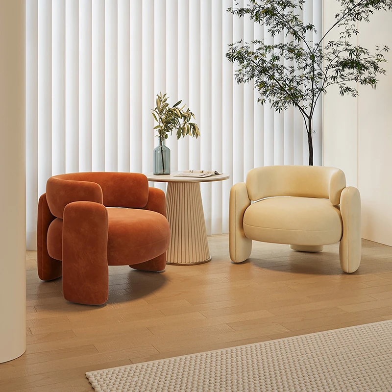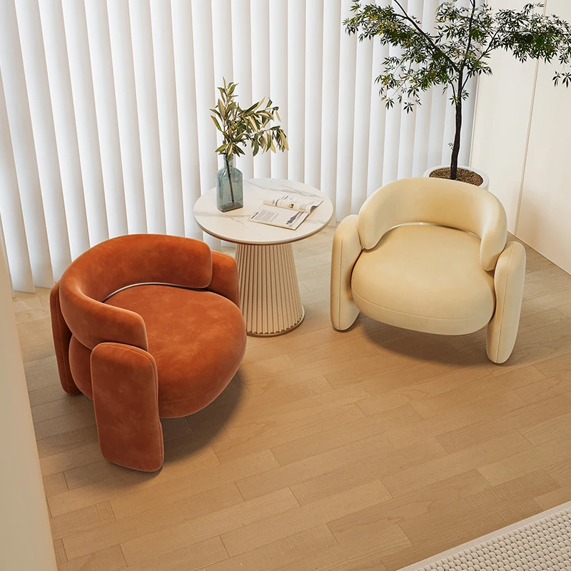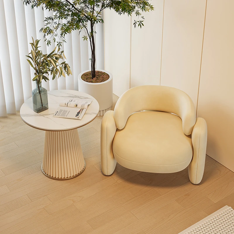 クリーム風の一人用ソファチェア - バルコニーや接待スペースに最適!リラックスできる美容院向けのテーブルと椅子のセット。会話を楽しむのにぴったりなスタイリッシュなデザインです。