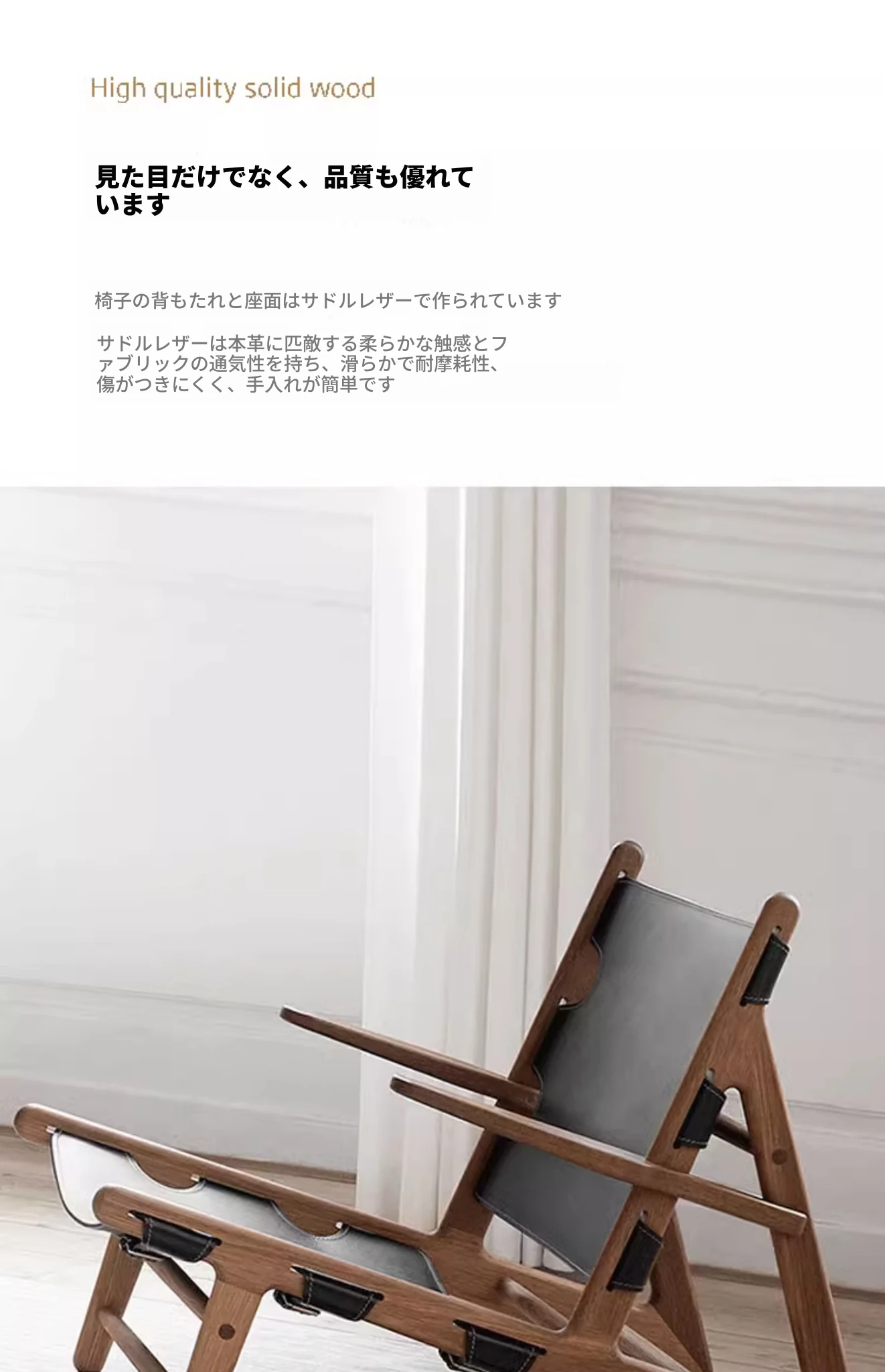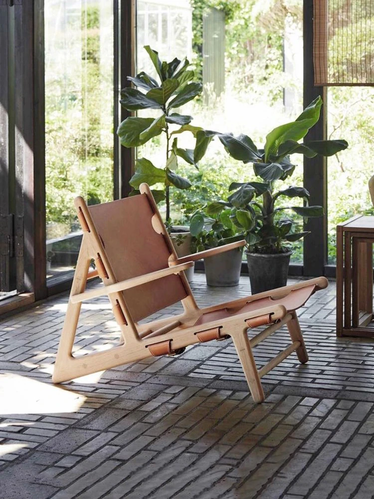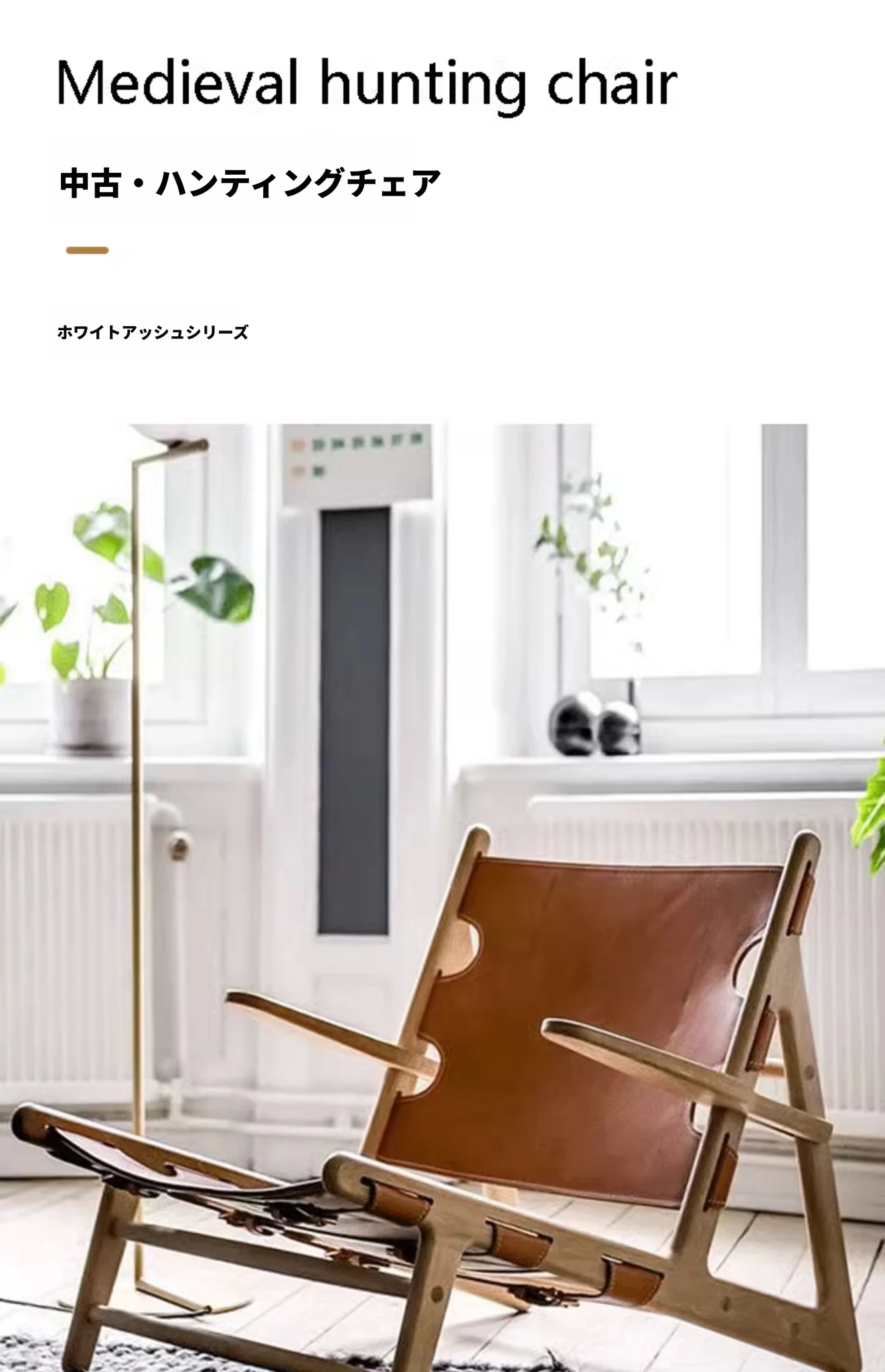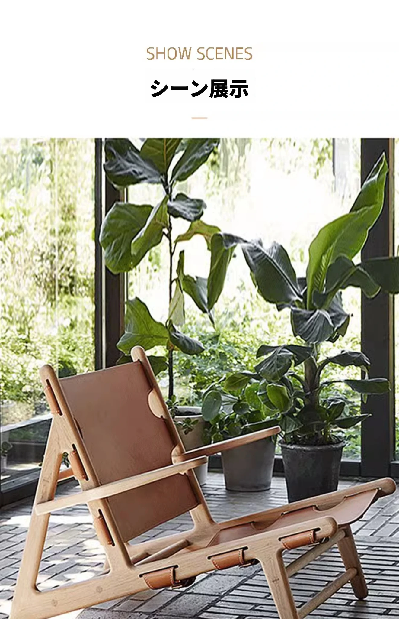 ハンティングチェア デザイナーのクリエイティブソファチェア 北欧ヴィンテージ 無垢材と牛革のラグジュアリーリクライニングチェア 民宿やバルコニーにぴったりなリラックスチェア!