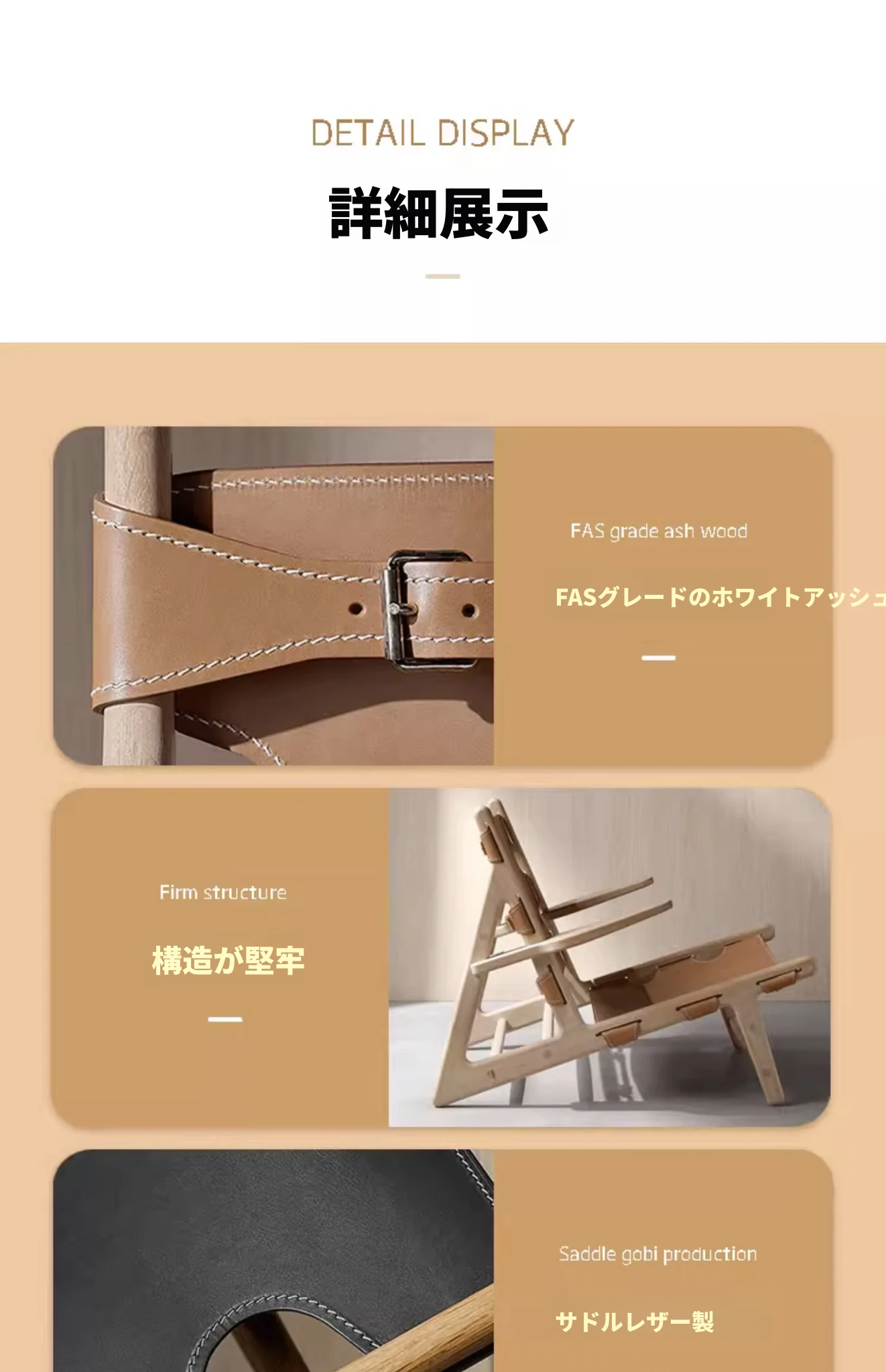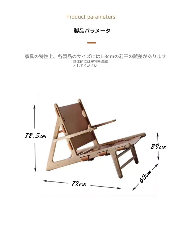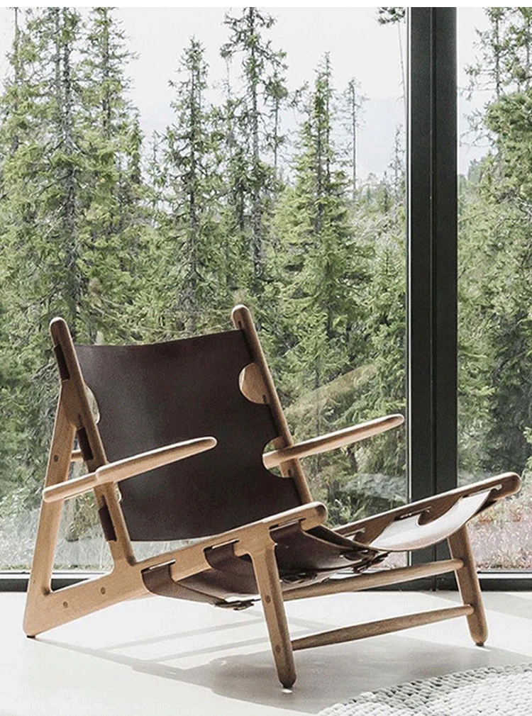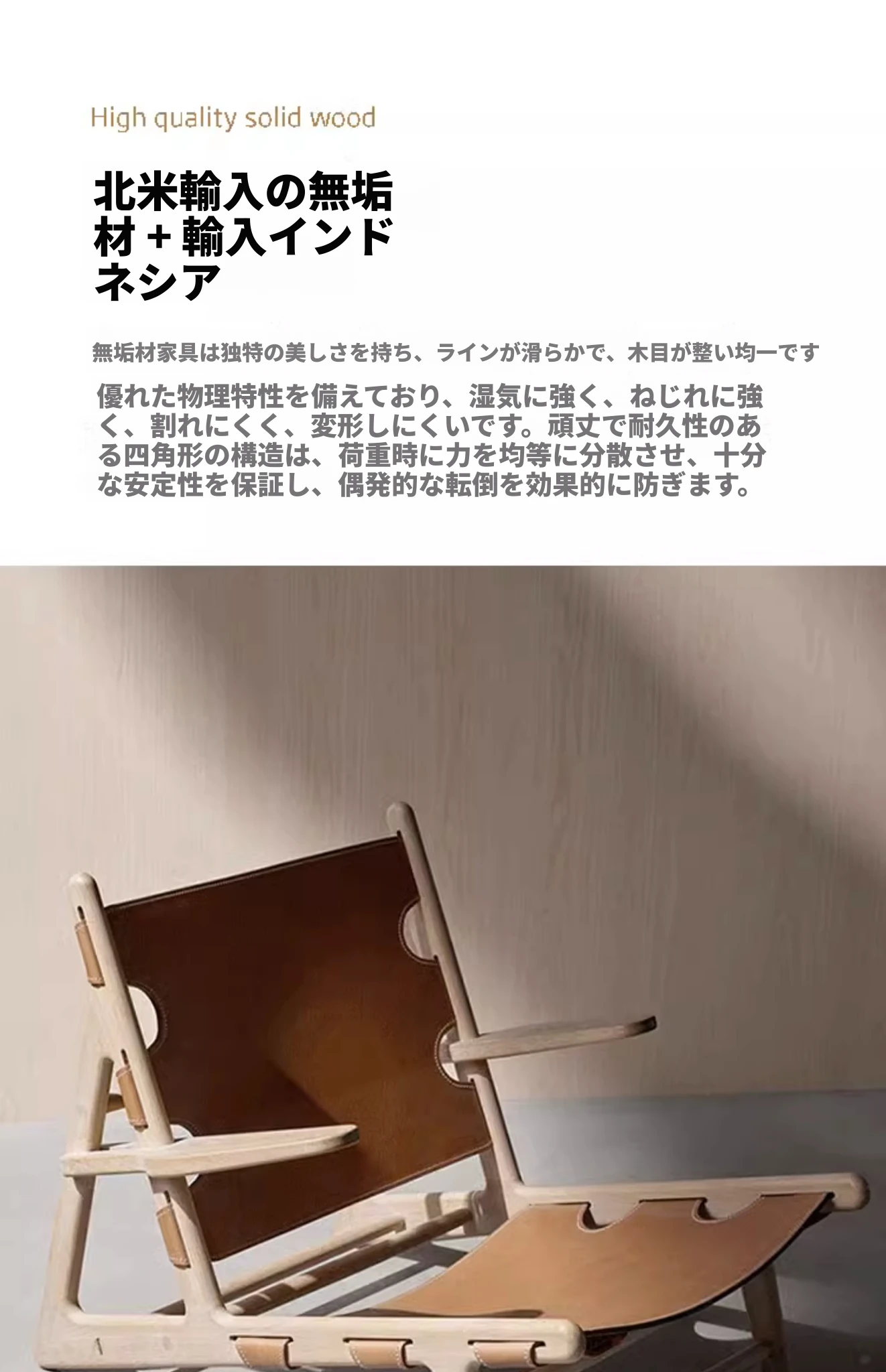 ハンティングチェア デザイナーのクリエイティブソファチェア 北欧ヴィンテージ 無垢材と牛革のラグジュアリーリクライニングチェア 民宿やバルコニーにぴったりなリラックスチェア!