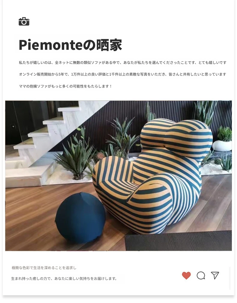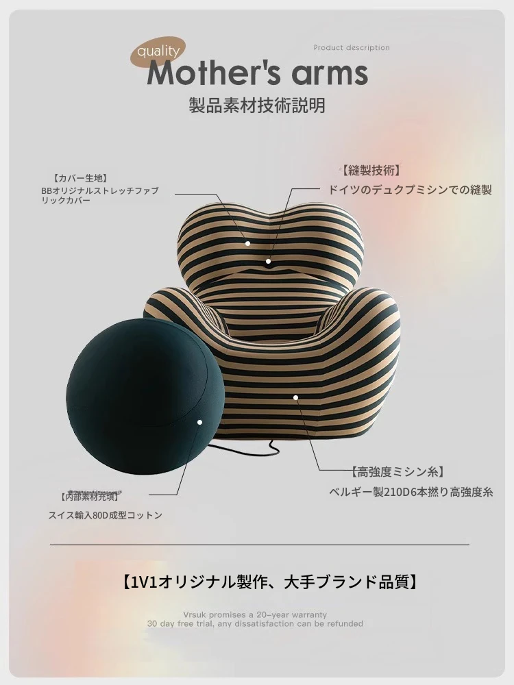 ママの抱擁ソファ!おしゃれなデザイナーが手掛けた、リラックスできる一人用ソファ。インスタ映え間違いなしのママ抱き心地で、リビングを優雅に演出します。