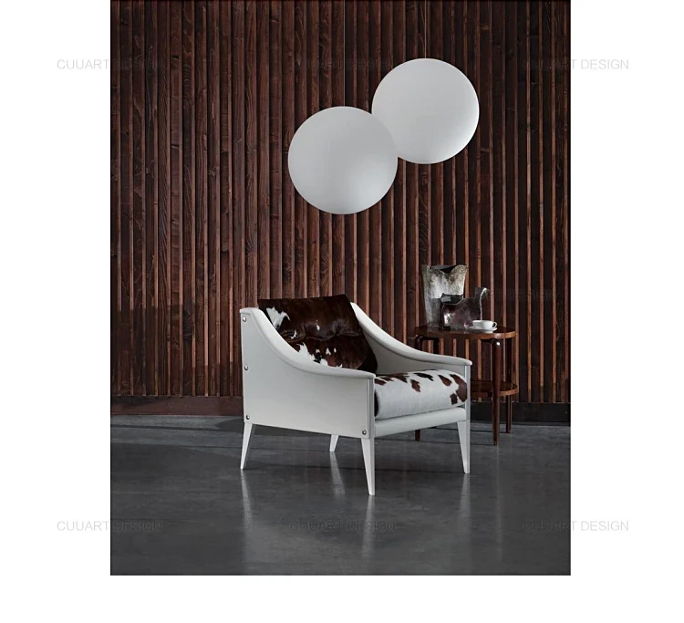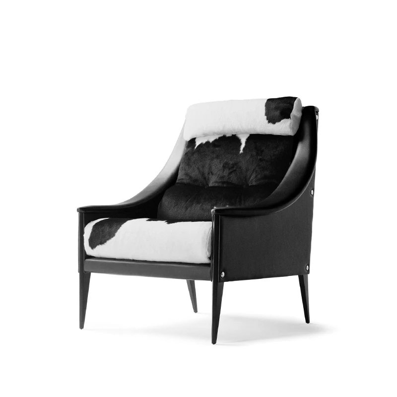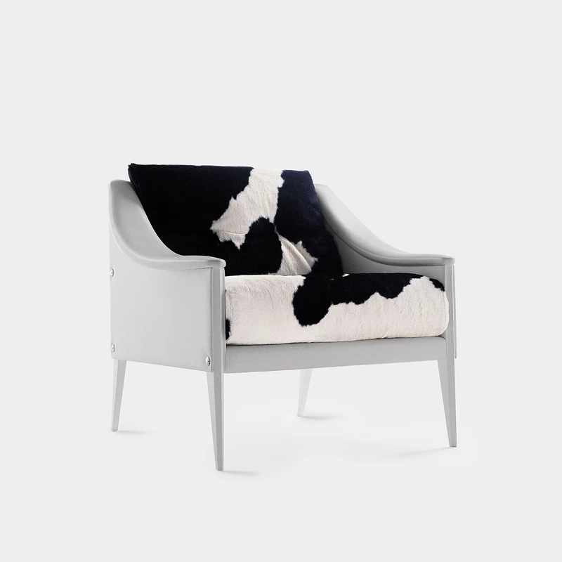 低型【白色+黒白の輸入ミルク牛真皮】-Dezzaアームチェア